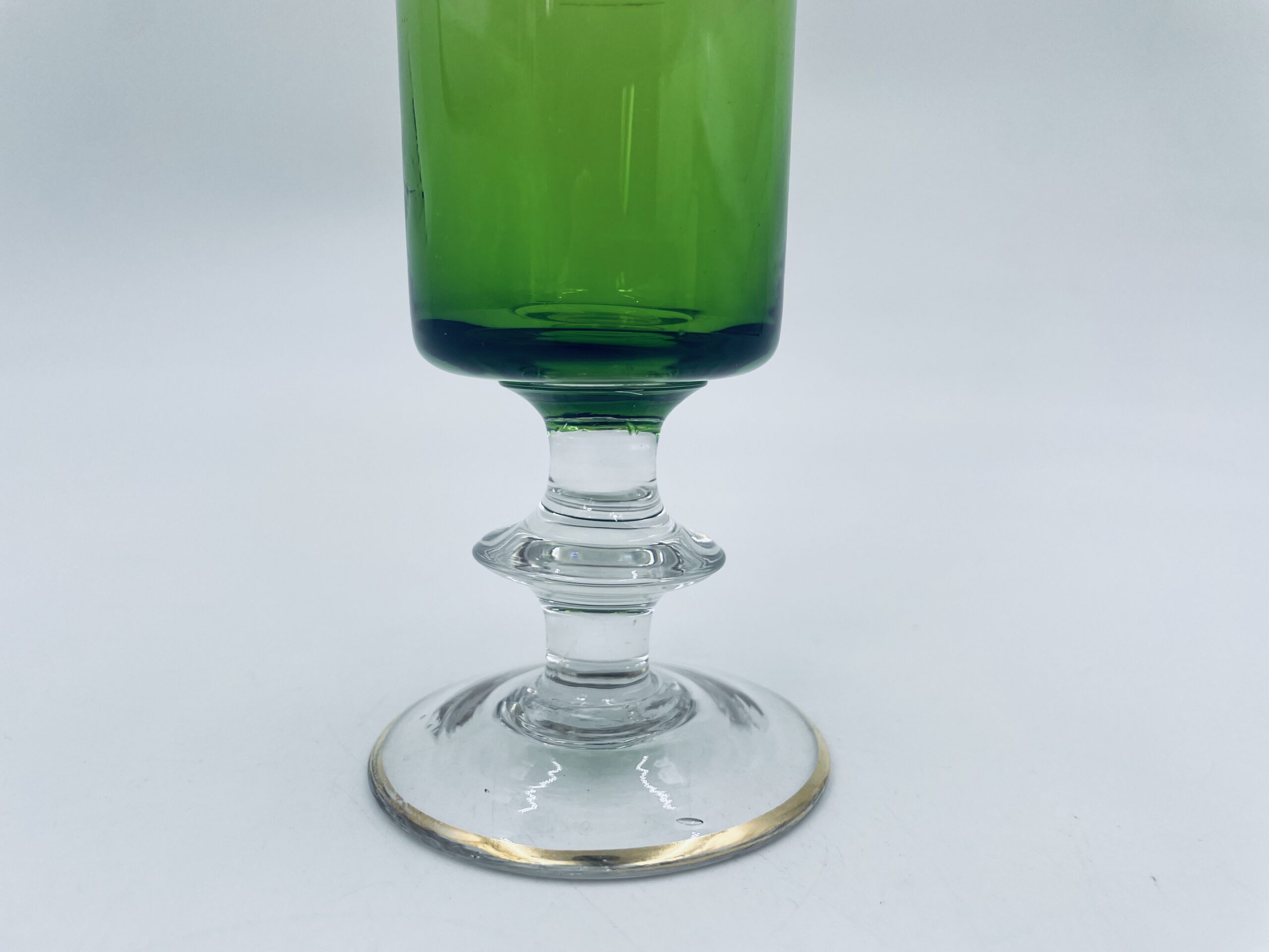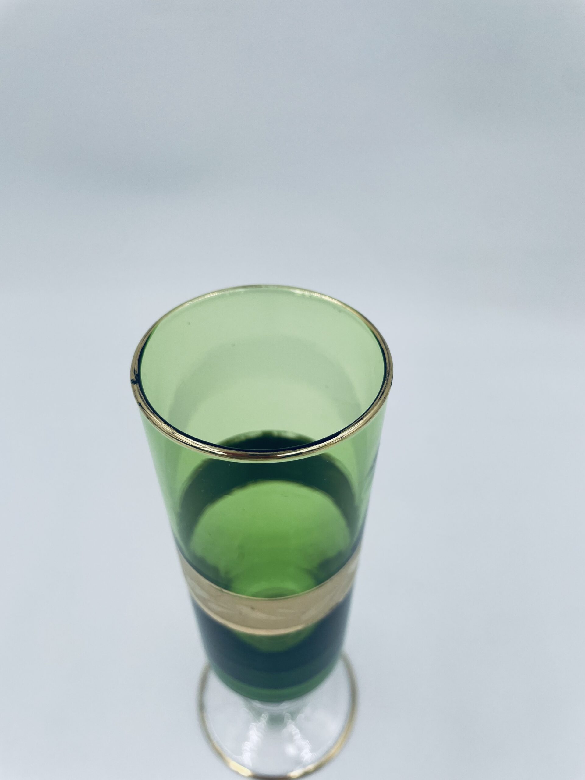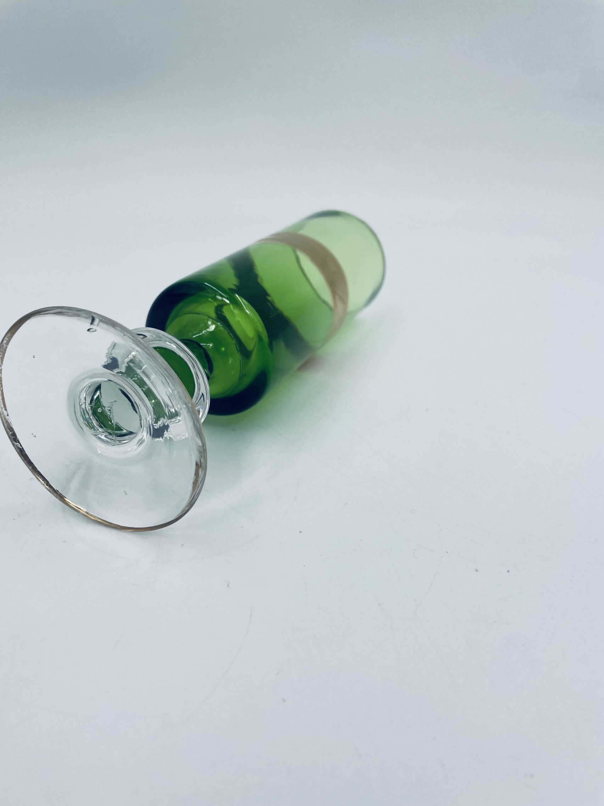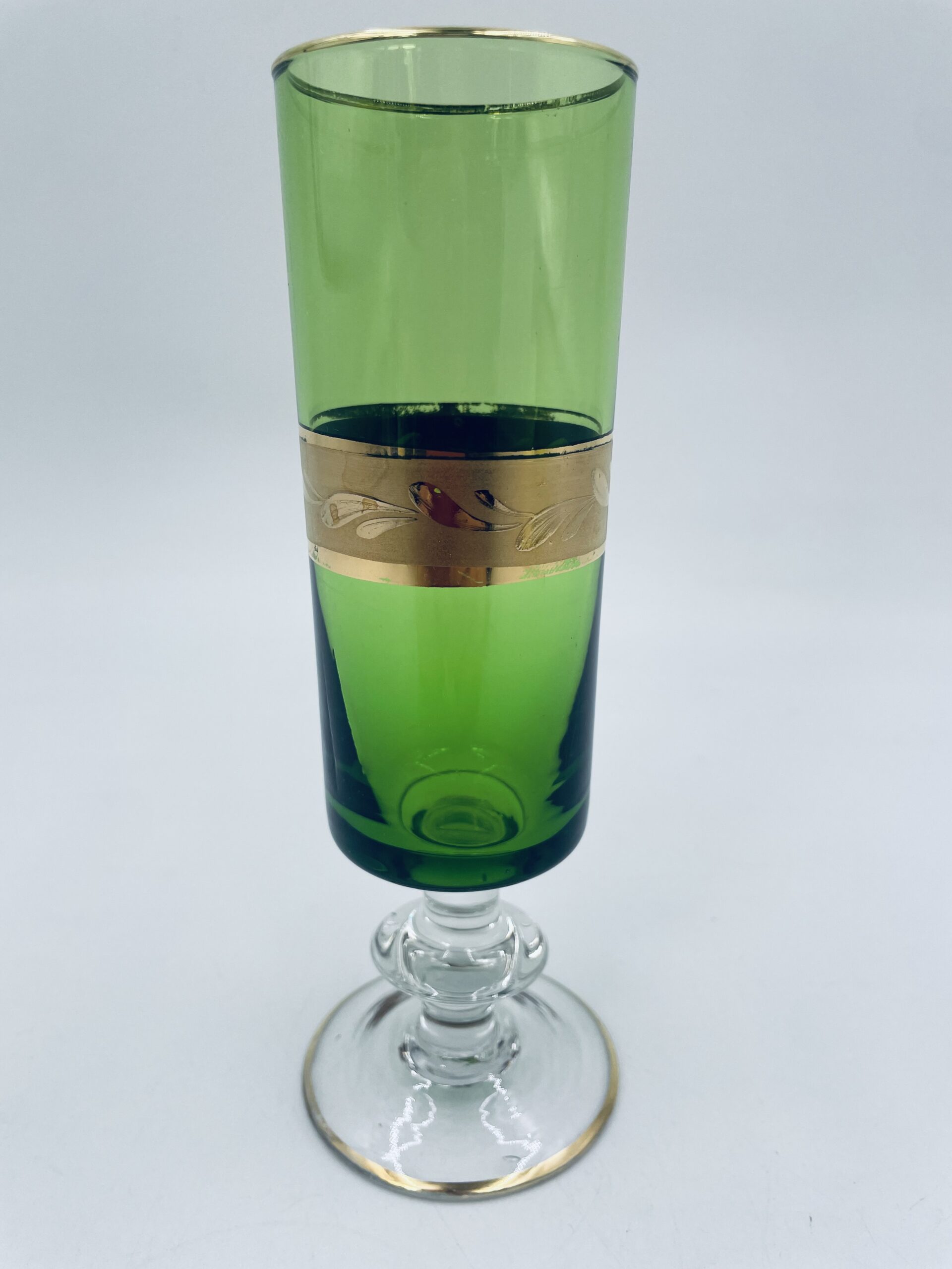 Green champagne glass made of glass in Italy.