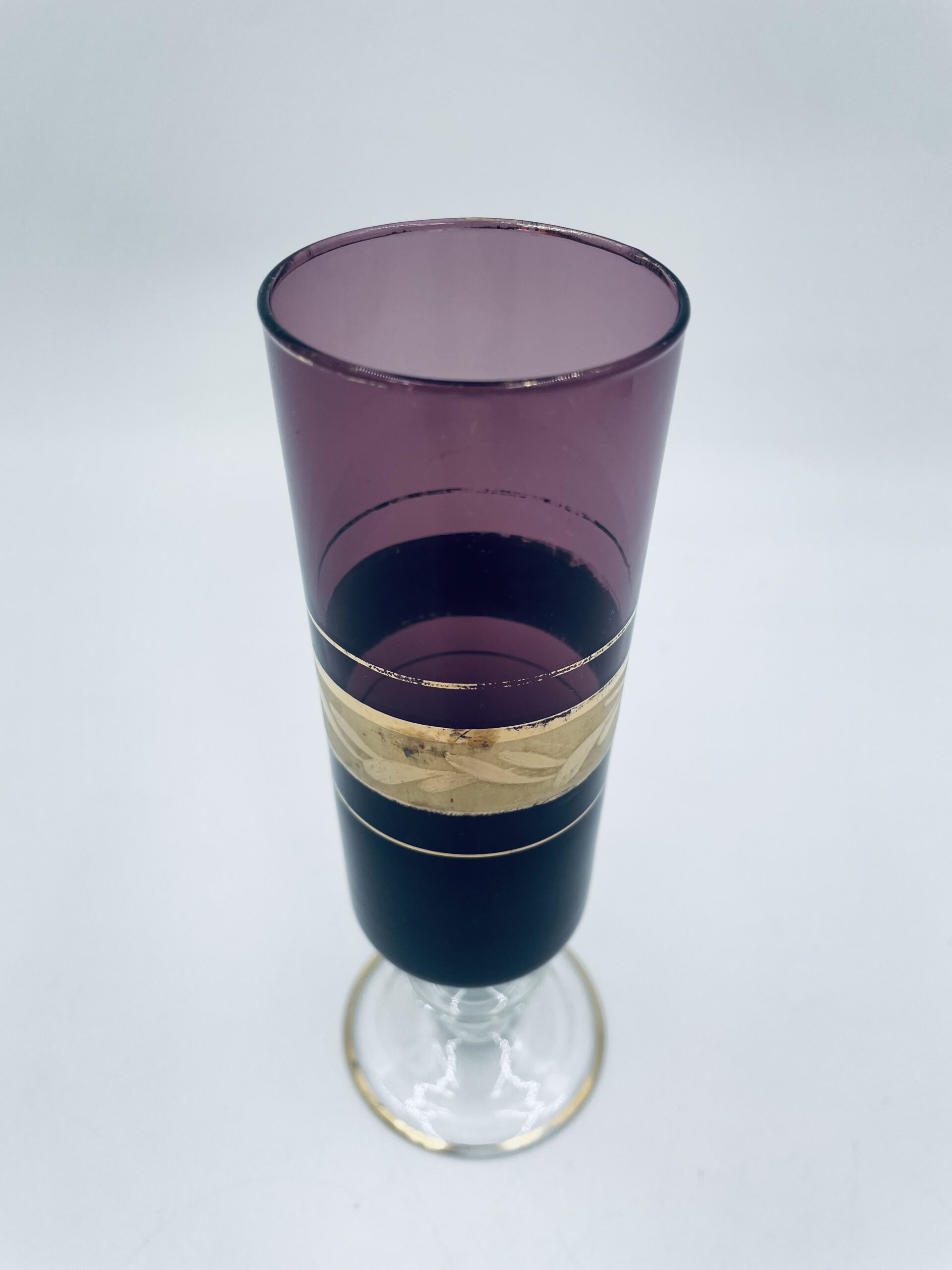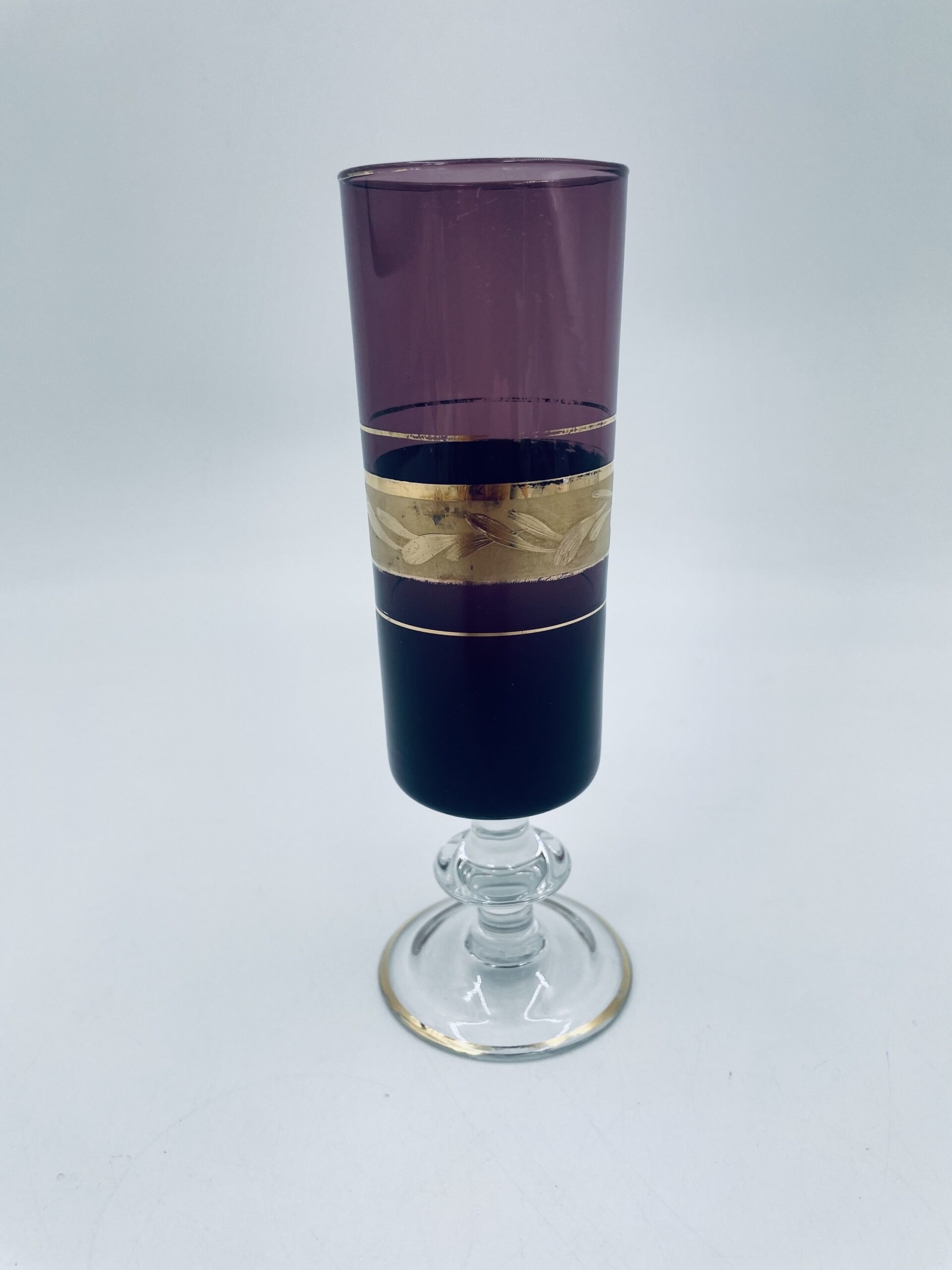 Purple champagne glass made of glass in Italy.