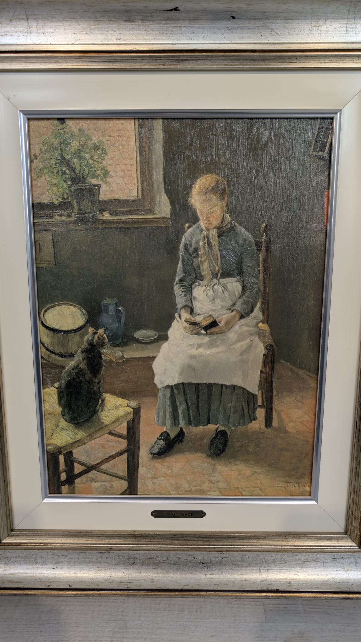 Oil painting ”Reader with Cat” by Fritz von Uhde