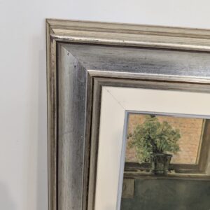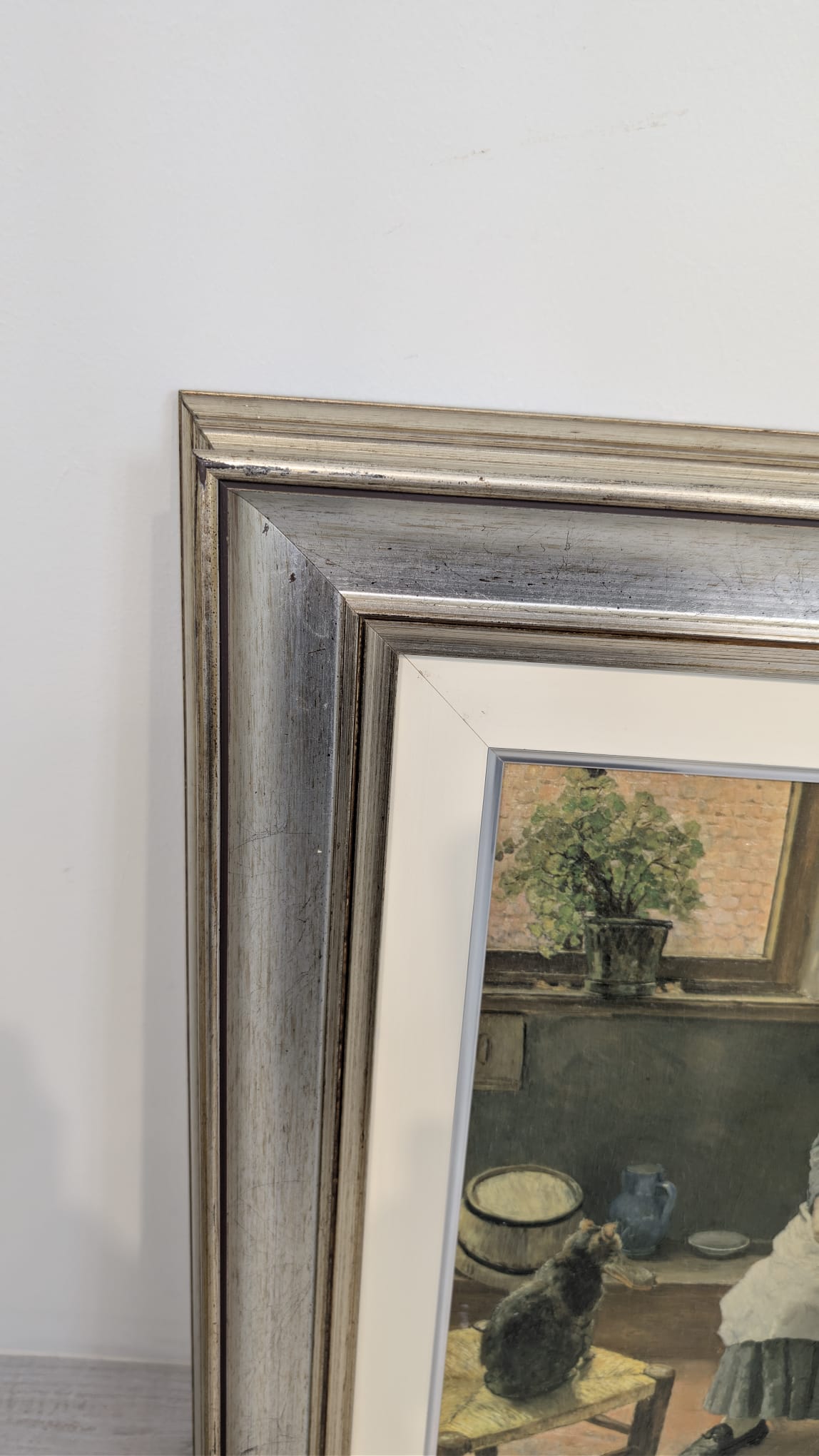 The painting is framed in a decorative, thick silver frame.