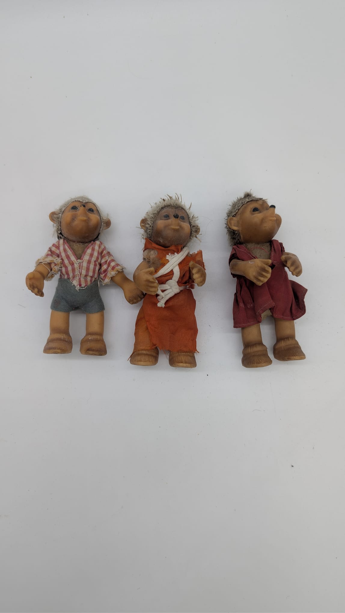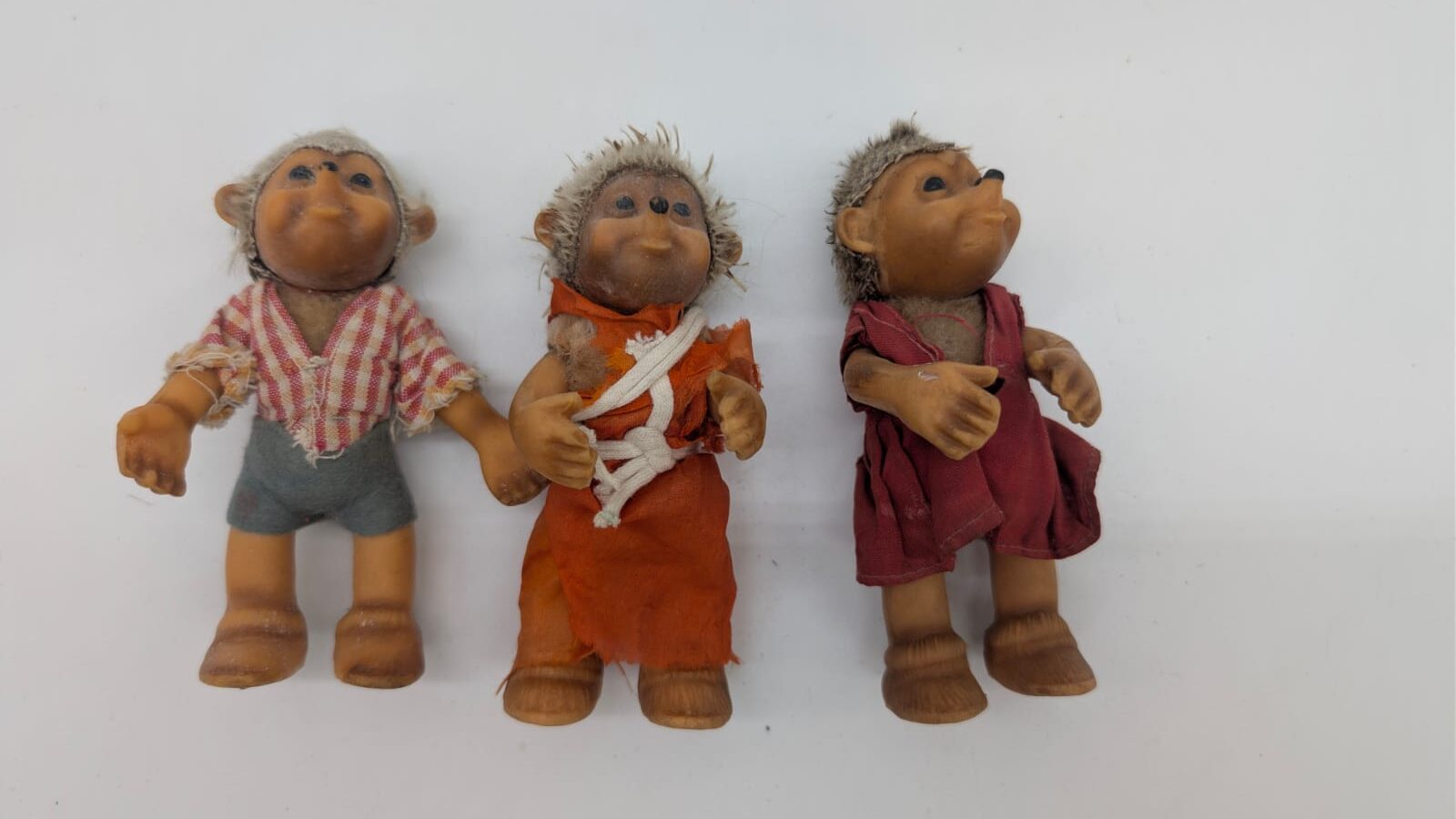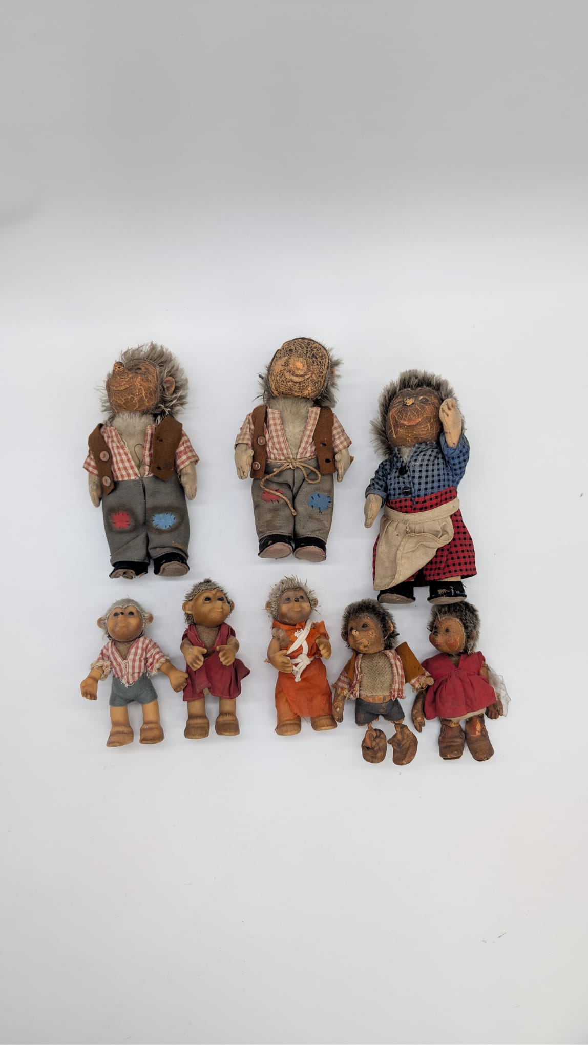 Set of 8 antique retro rubber Hedgehog Steift Mucki figures from the 1950s. Former DDR production.
