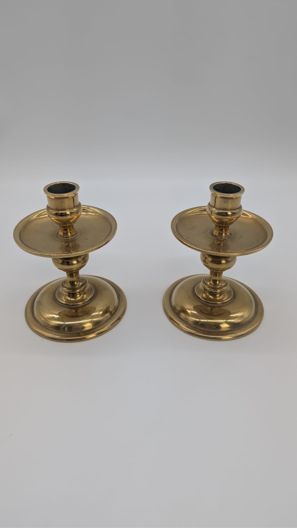 Pair of antique style brass candle holders
