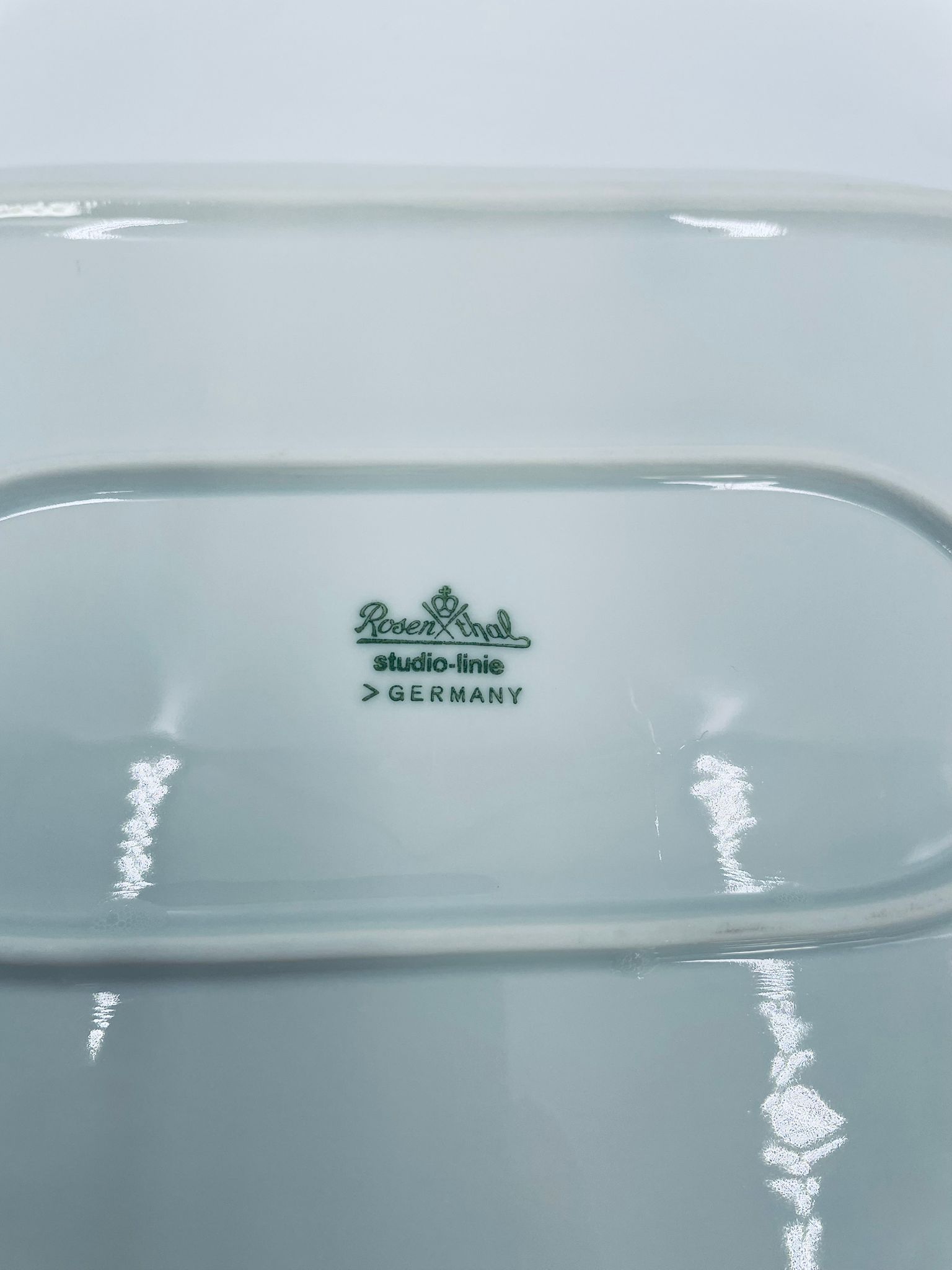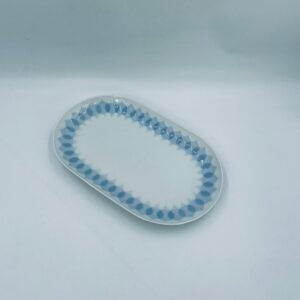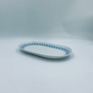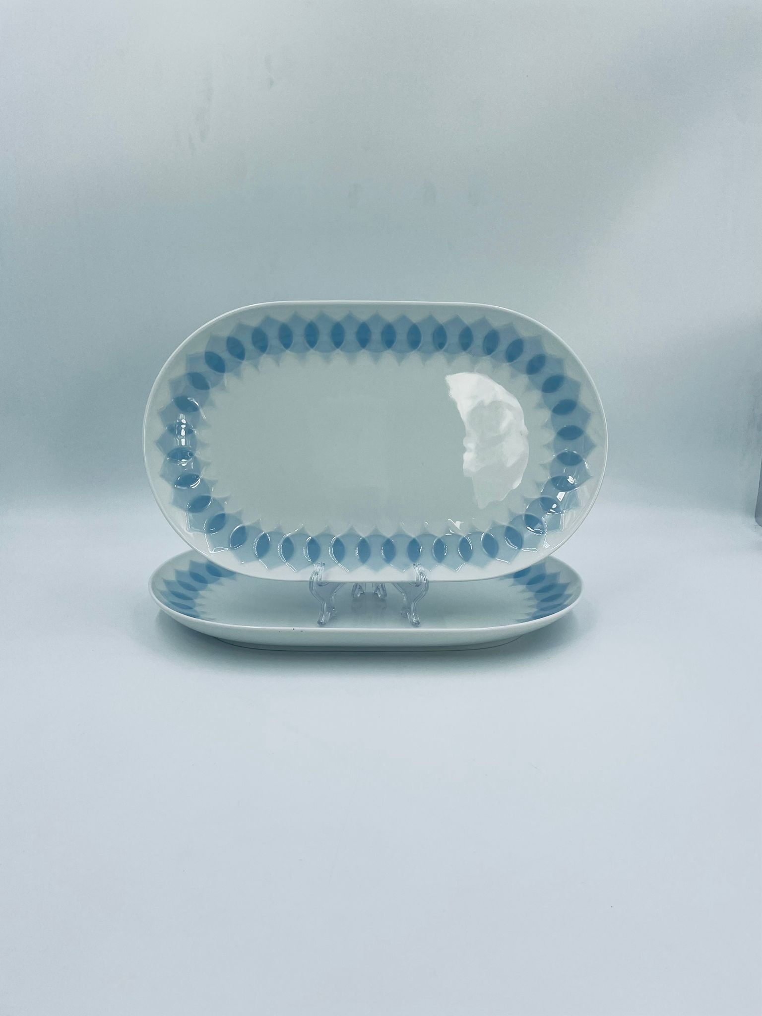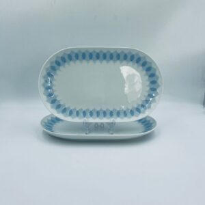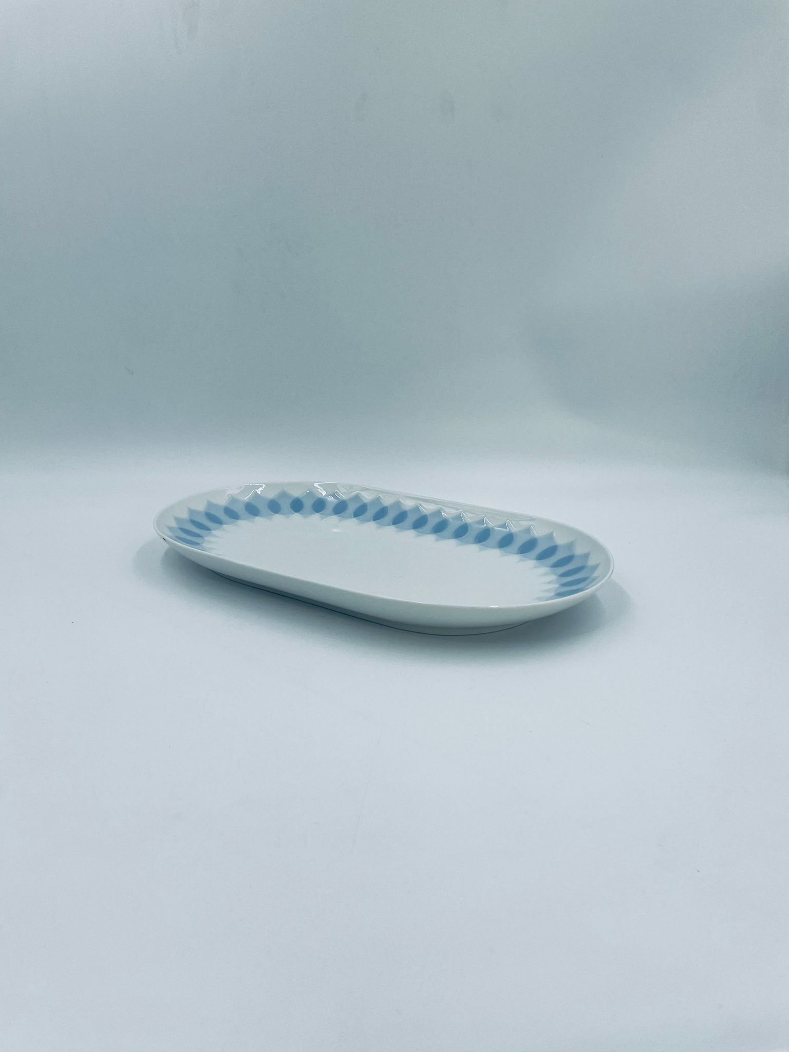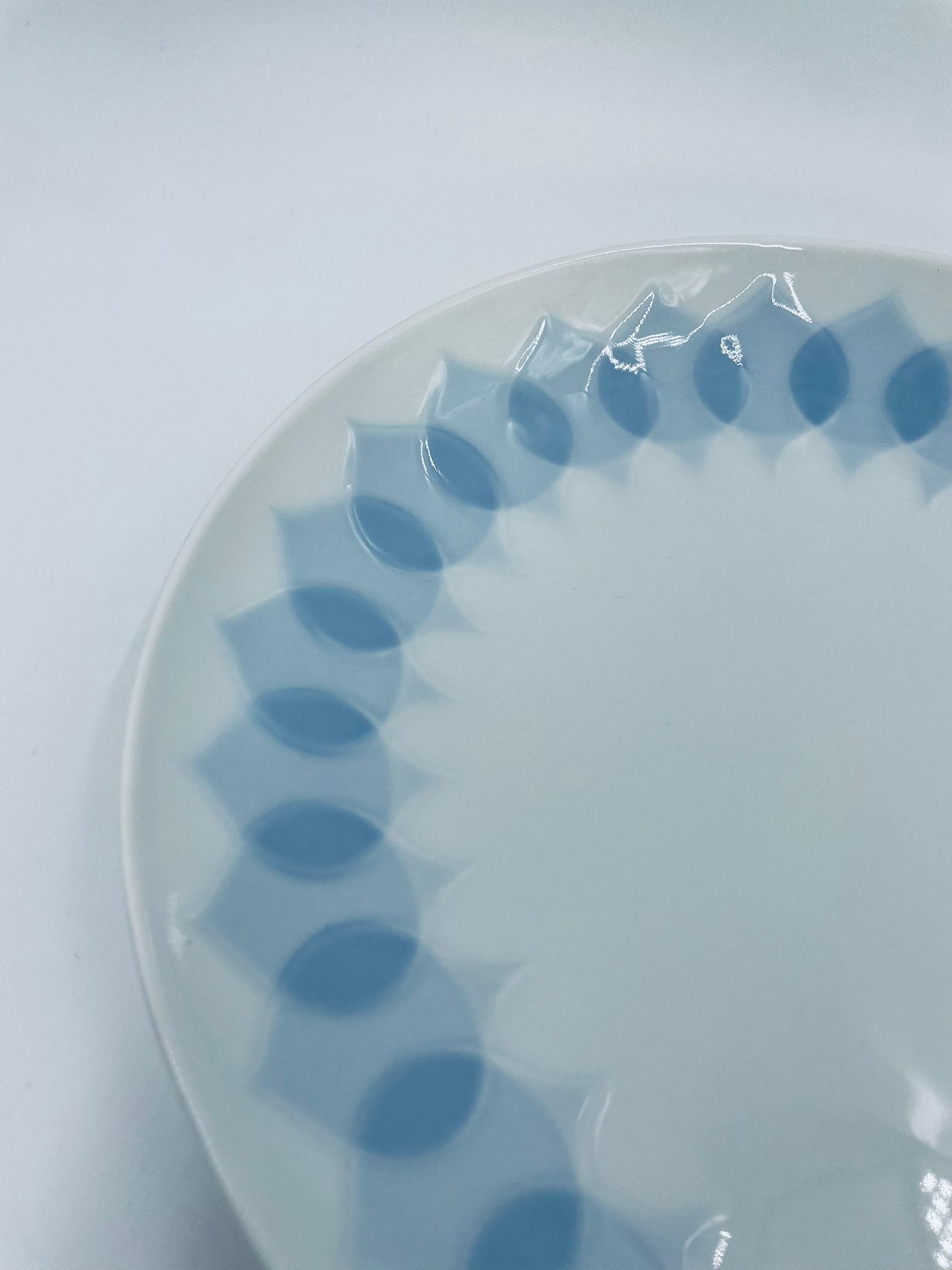 Patera dekoracyjna renomowanej wytwórni Rosenthal Studio Line z serii Lotus Blau , zaprojektowana przez duńskiego artystę Bjorna Wiinblada w 1964r, wykonana z najwyższej jakości białej porcelany. Patera ozdobione wzorem „Blau”, charakteryzuje się delikatnym, geometrycznym motywem przypominający liście lotosu w niebieskim odcieniu.