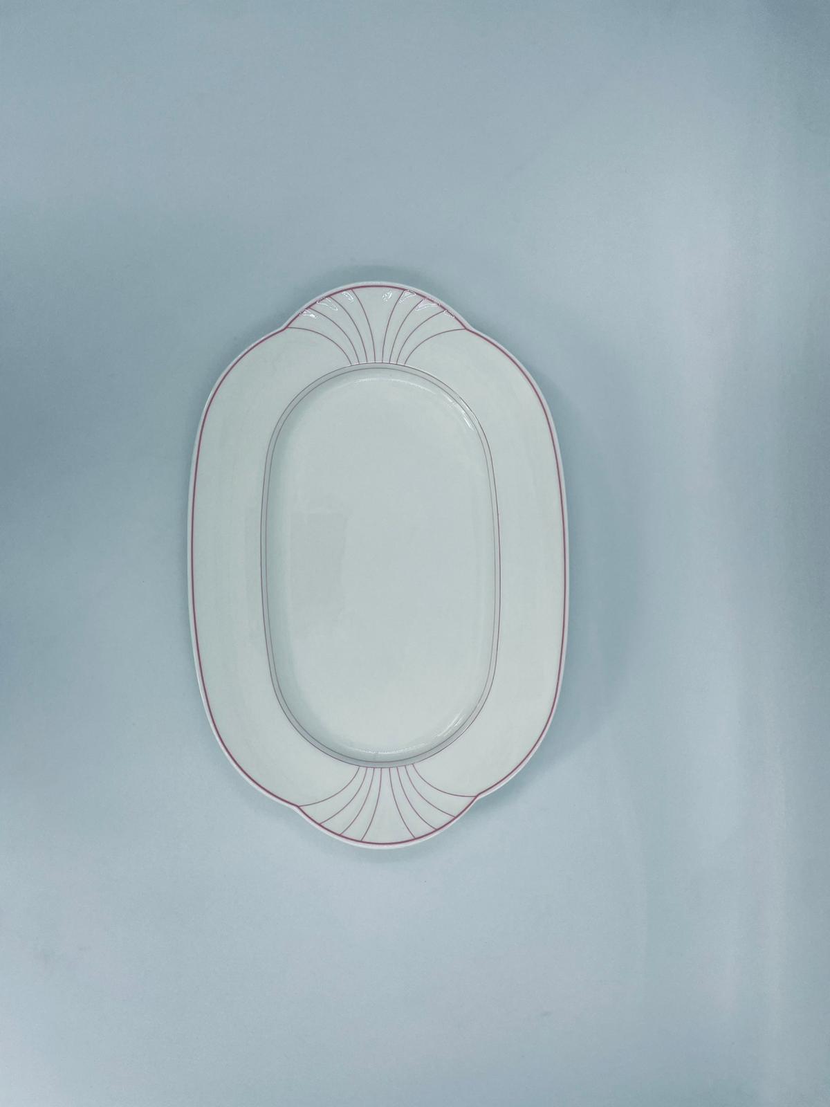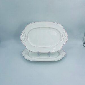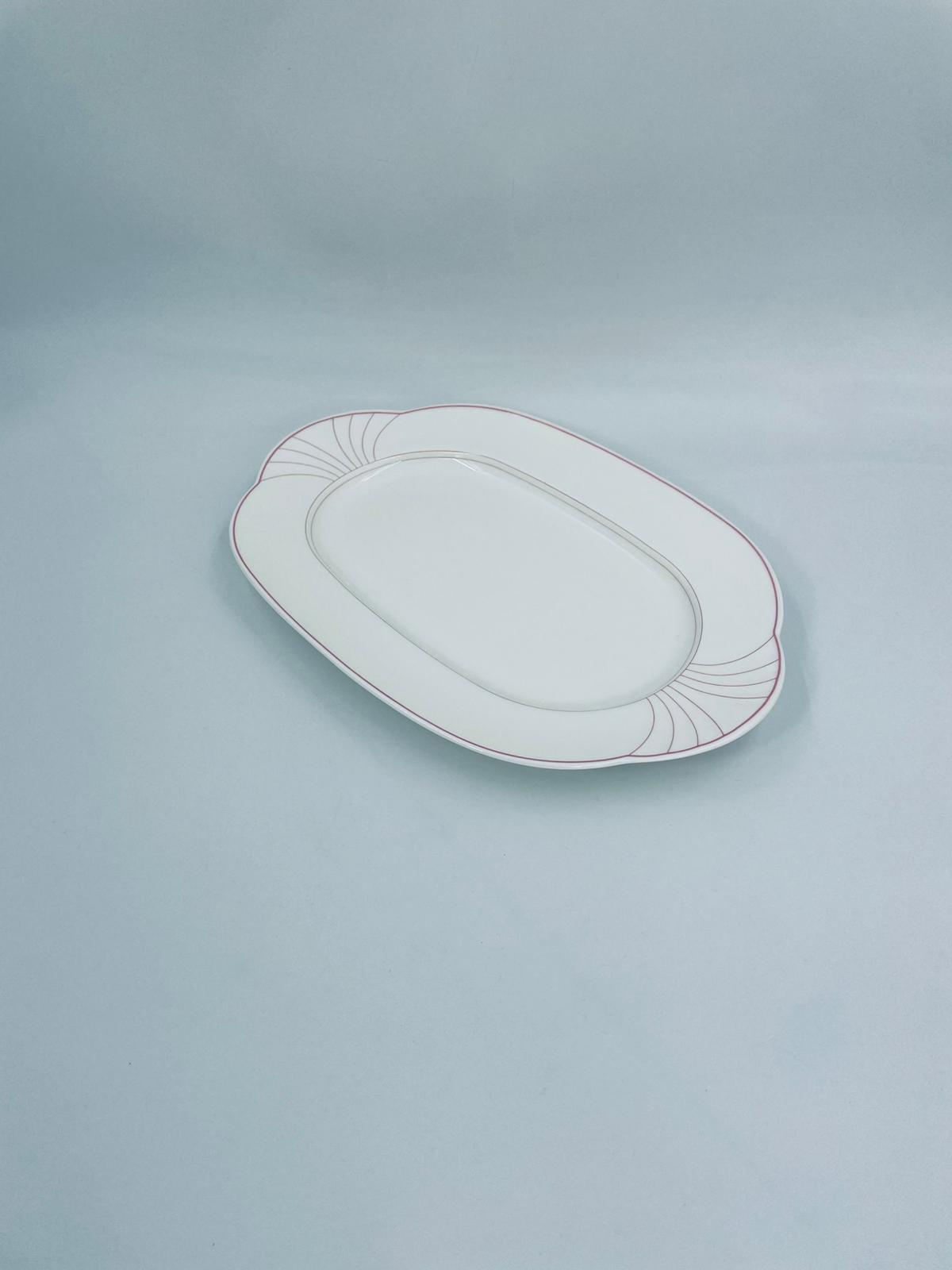 Patera znanej i cenionej wytwórni Villeroy & Boch Bone China Mettlach, kolekcji Palatino, wykonana z wysokiej jakości białej porcelany. Patera posiada delikatną dekoracje w rozowym kolorze.