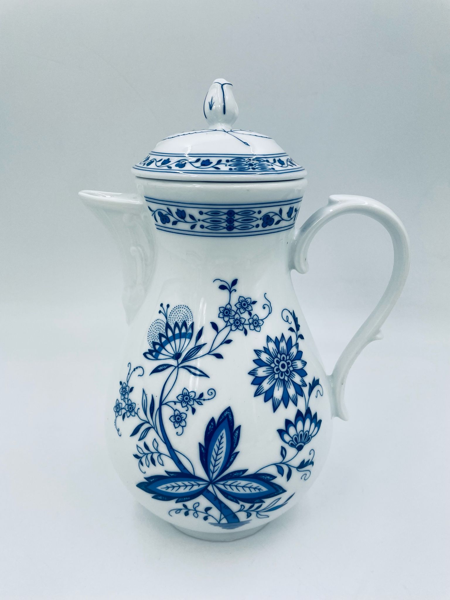 Porcelain jug in cobalt Ingres Weiss Marienbard onion pattern.