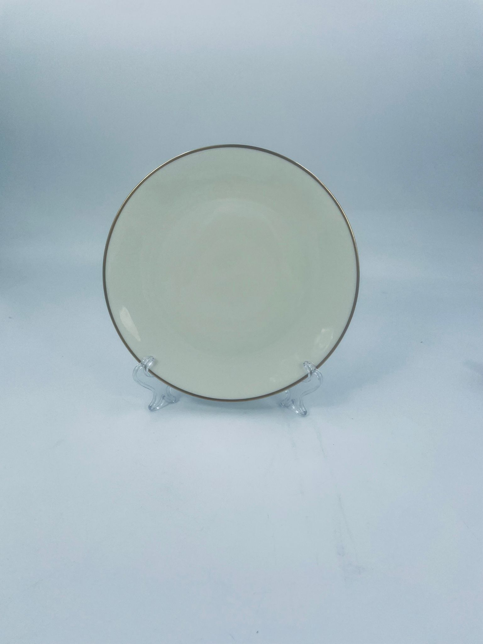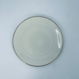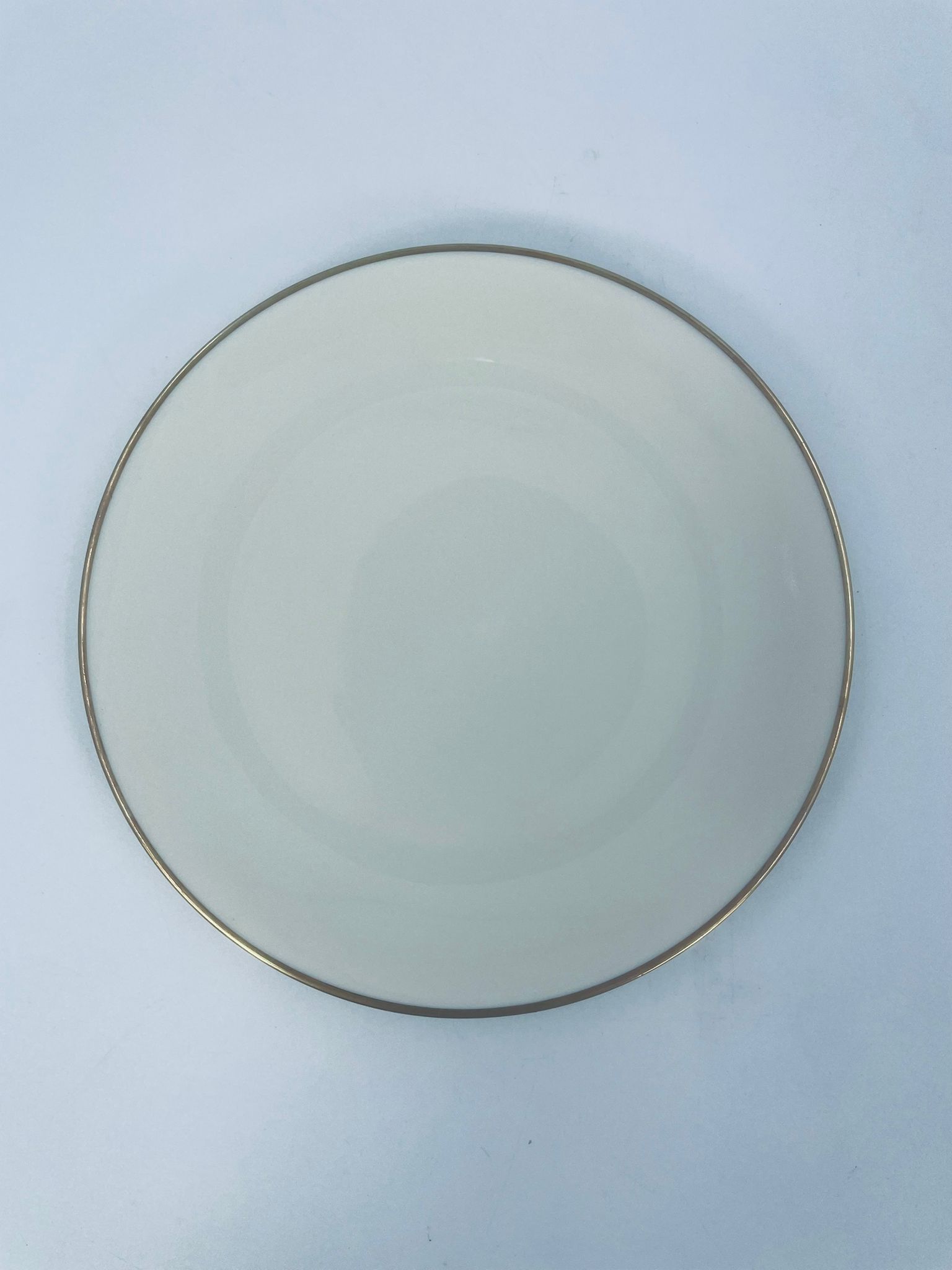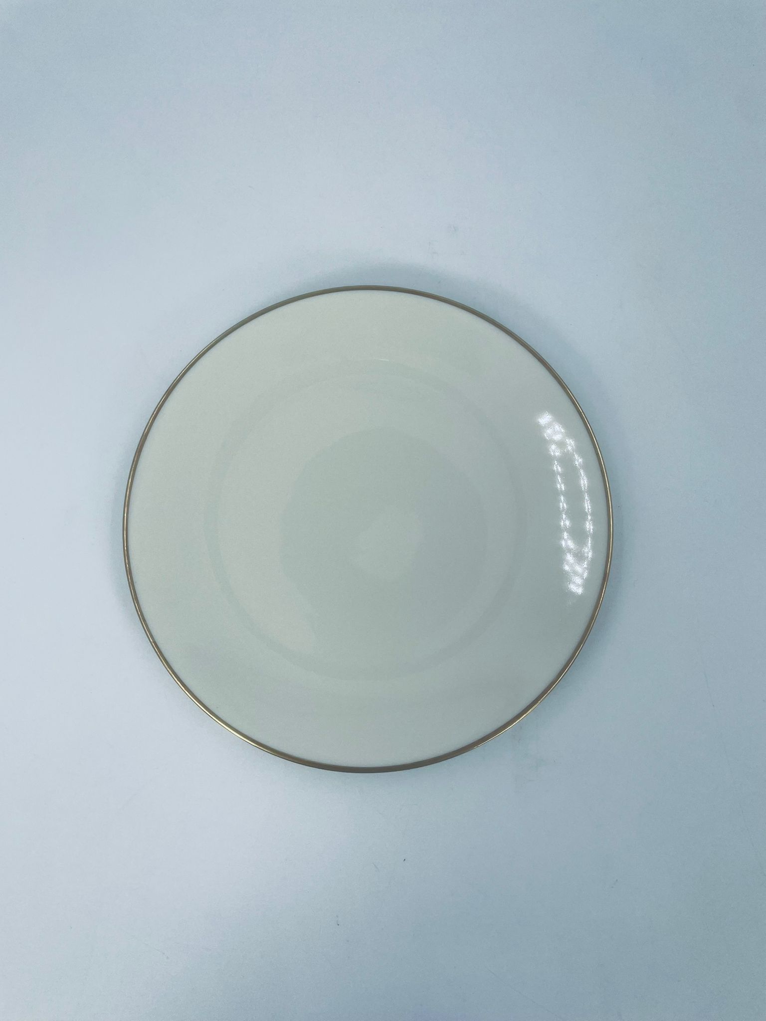 A plate of high-quality porcelain in ecru with a gold finish on the rims.