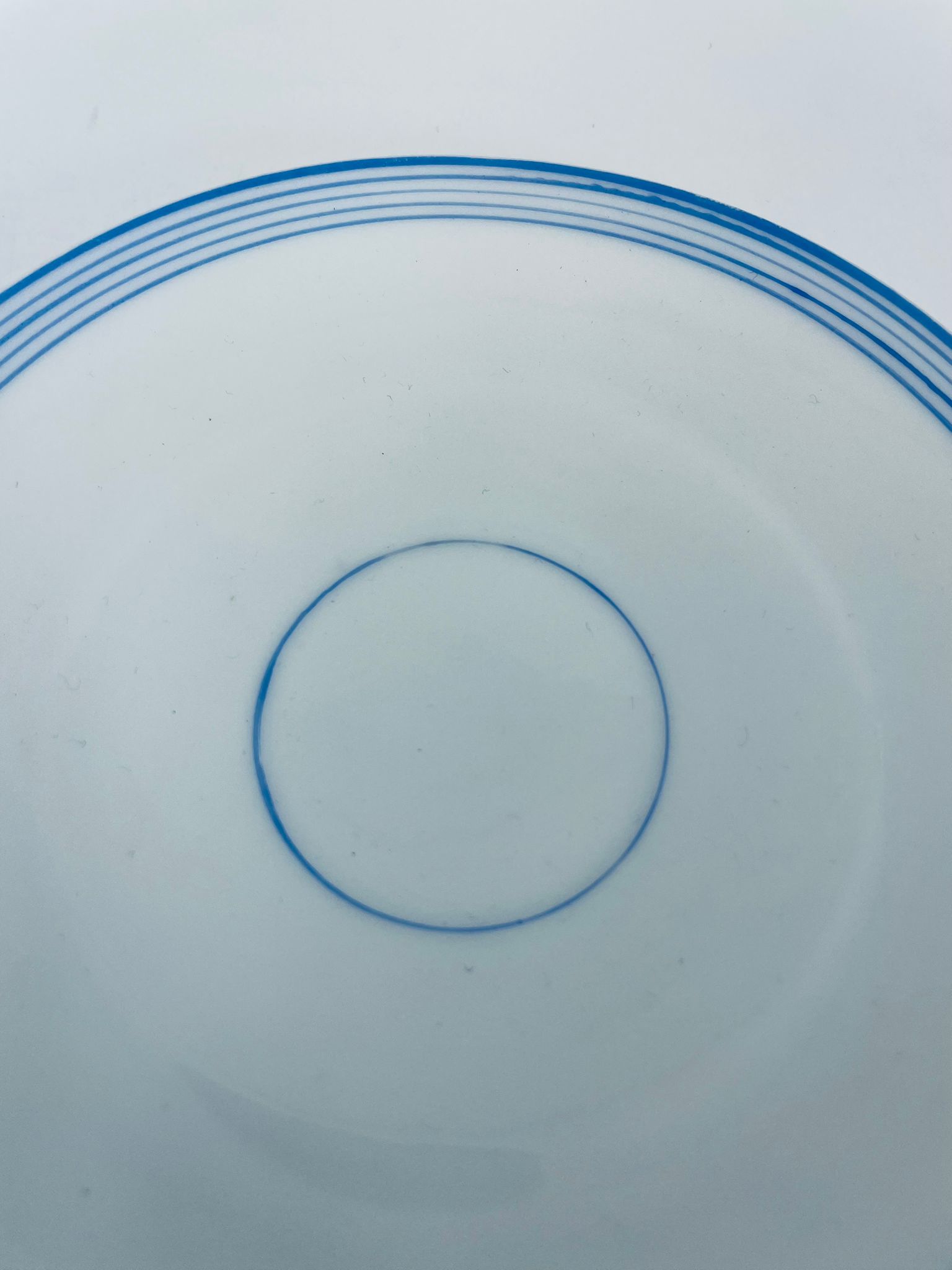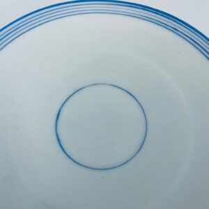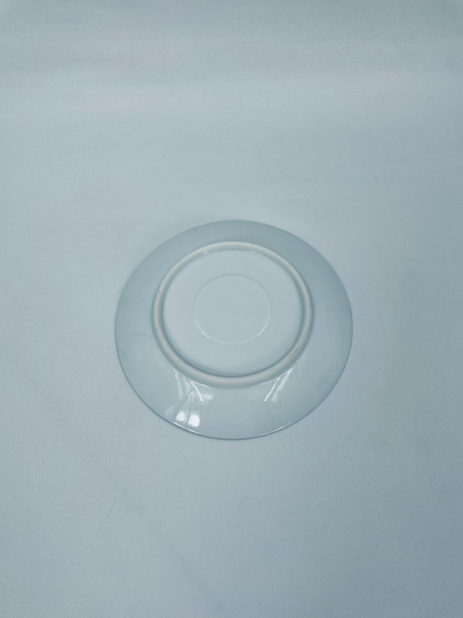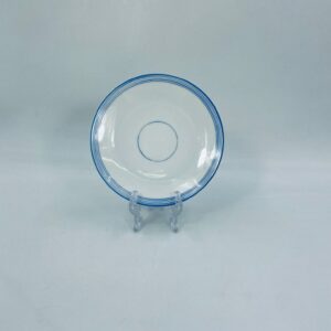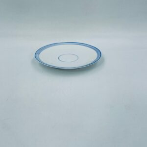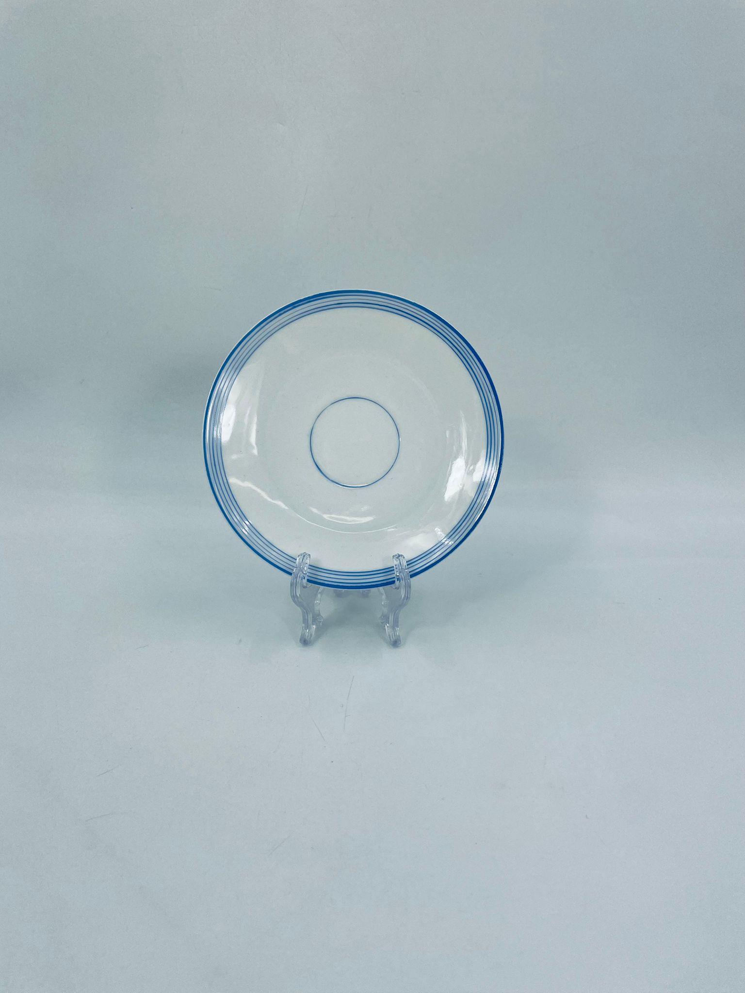Vintage style teacup saucer, made of high quality white porcelain. Classic plate, decorated with blue stripes.