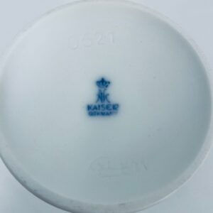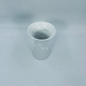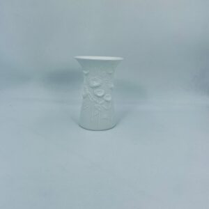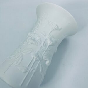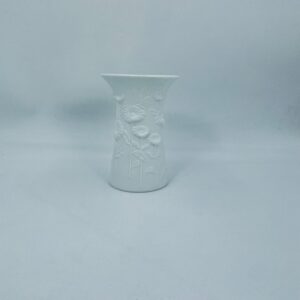 Decorative vase by Kaiser M.Frey made of high-quality white bisque porcelain, unglazed on the outside and glazed on the inside. The vase has floral decoration with butterflies on it.