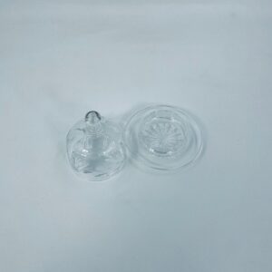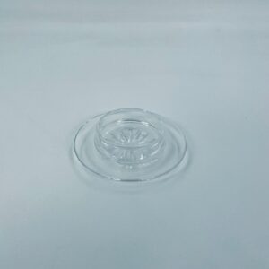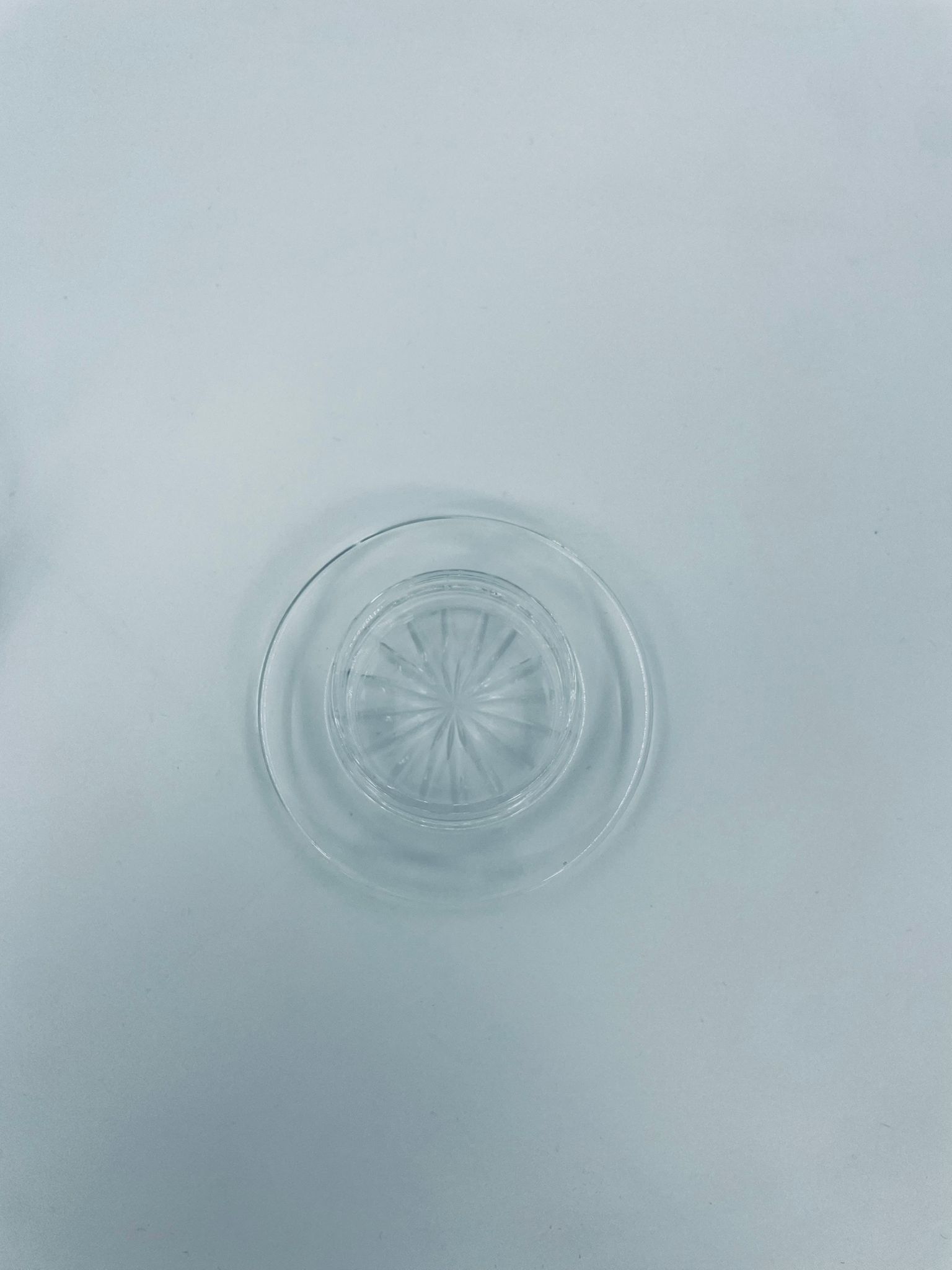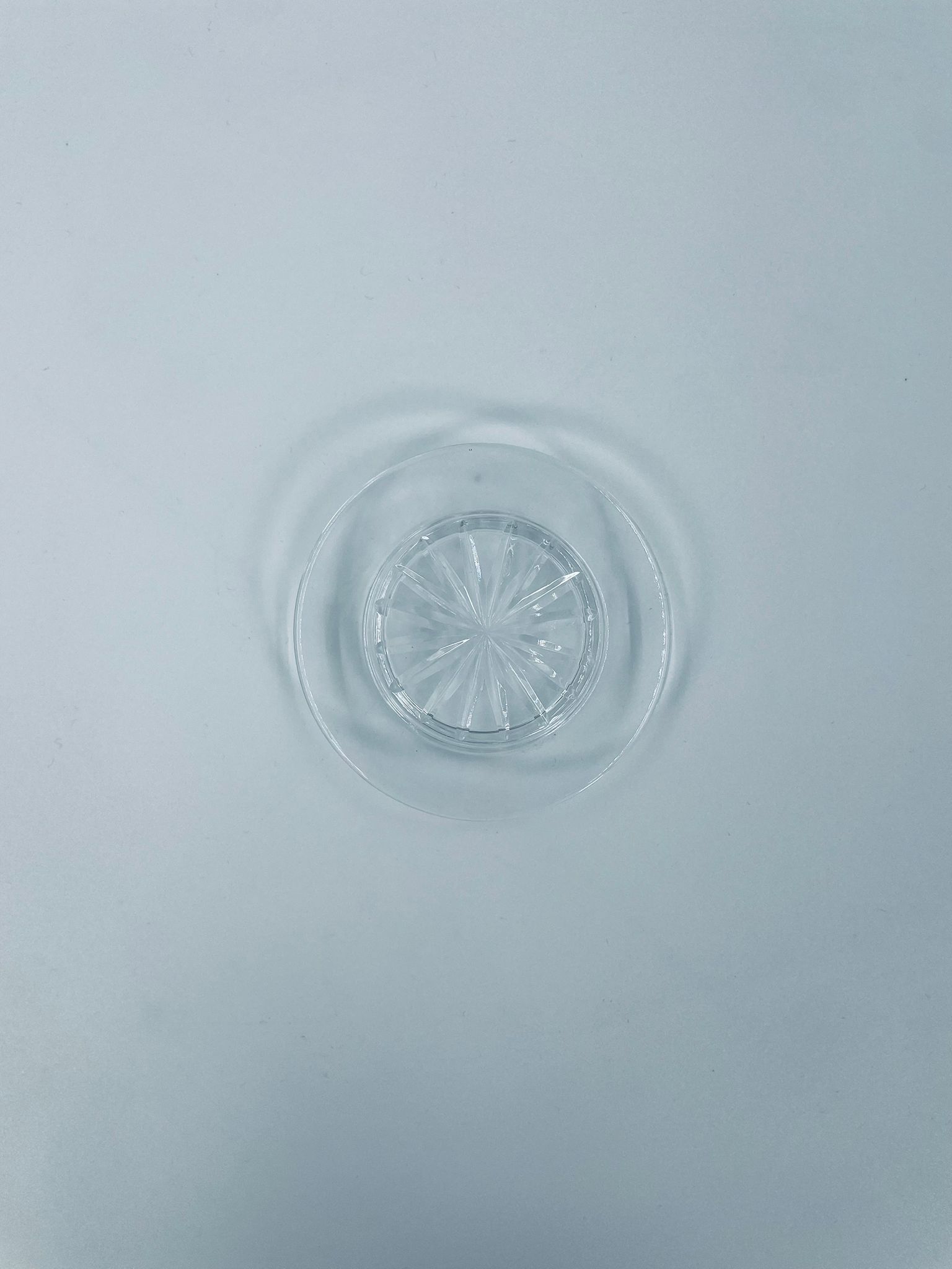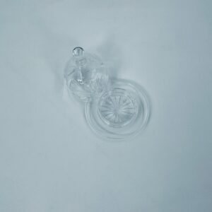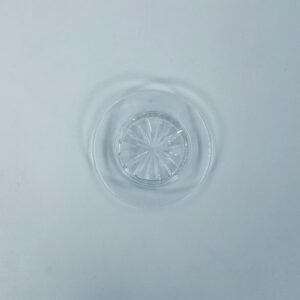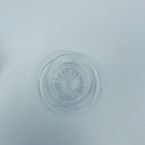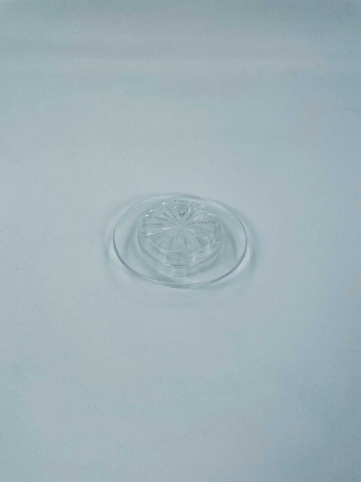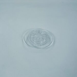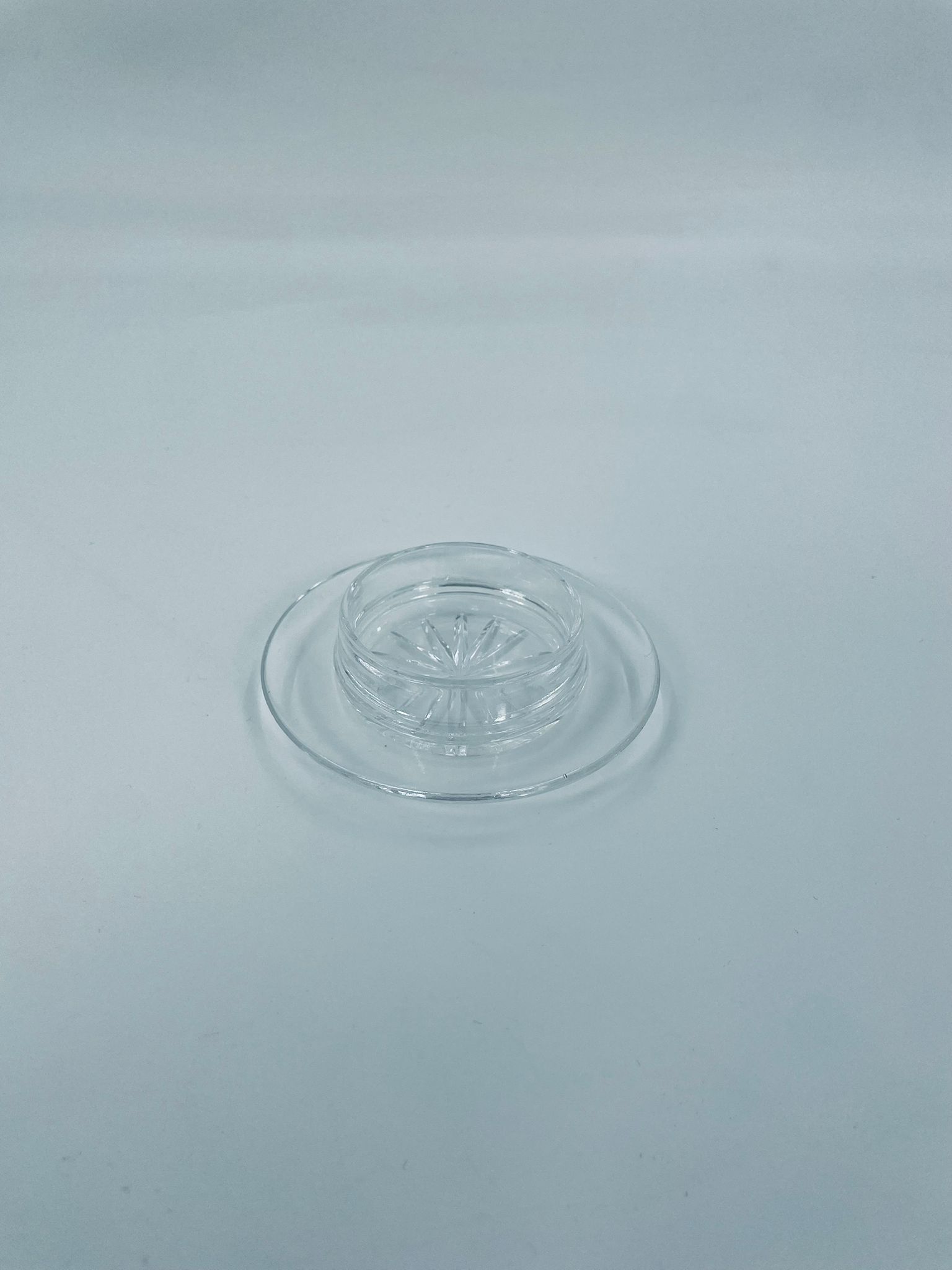 Princess House buttercreamer with lid, made of clear crystal glass, decorated with an engraved floral design and a decorative domed lid. It can be used as a Butter Box, to hold a heart and a lemon.