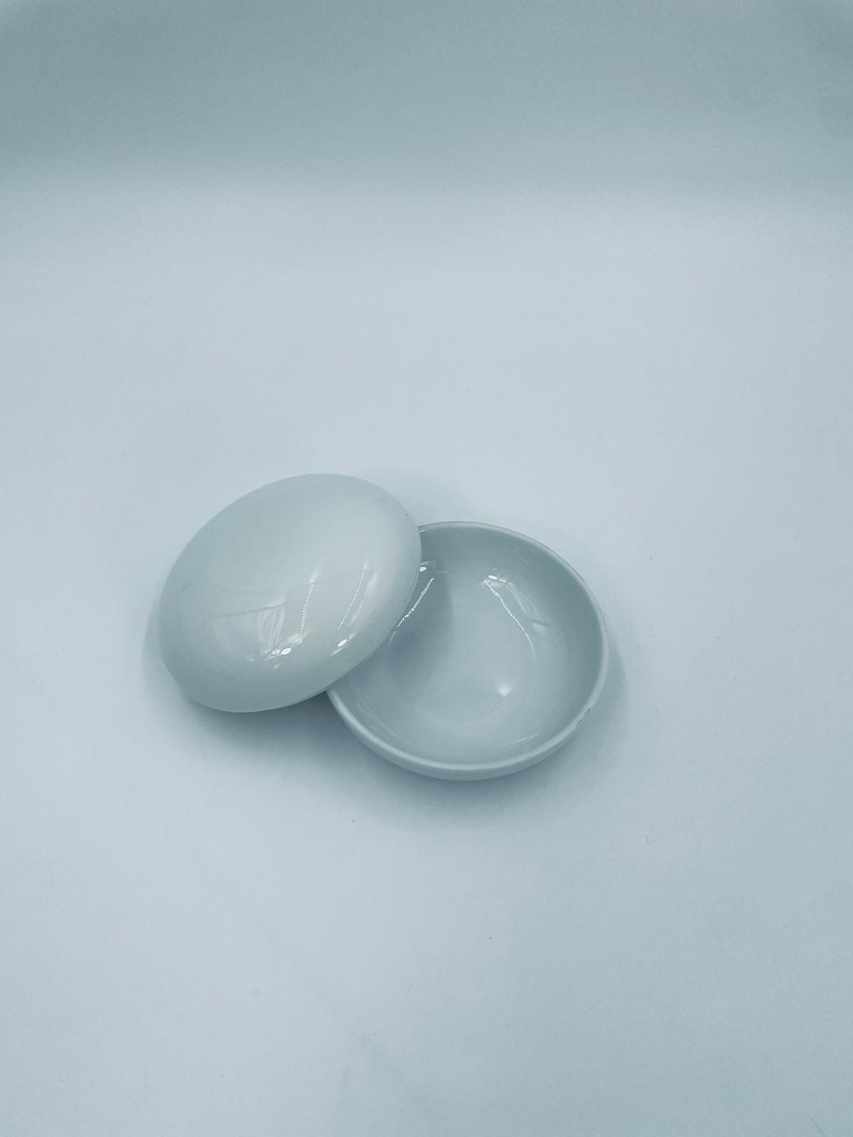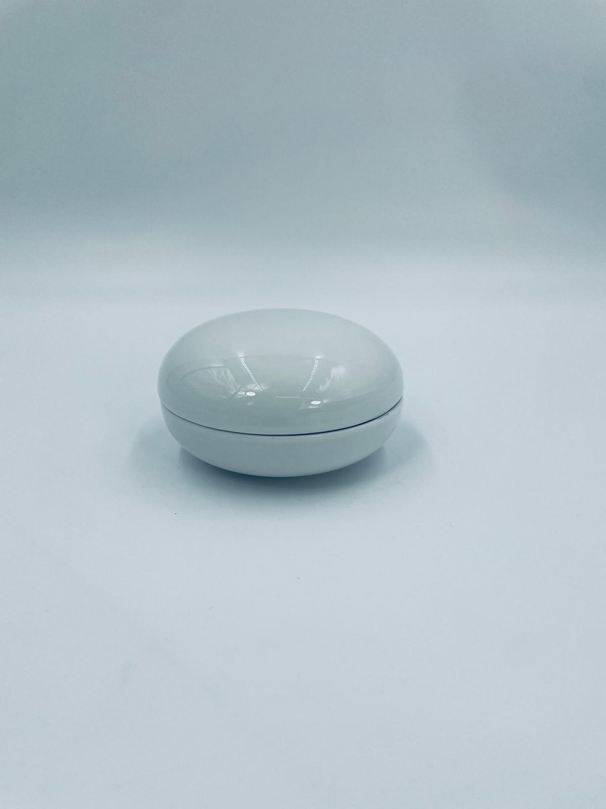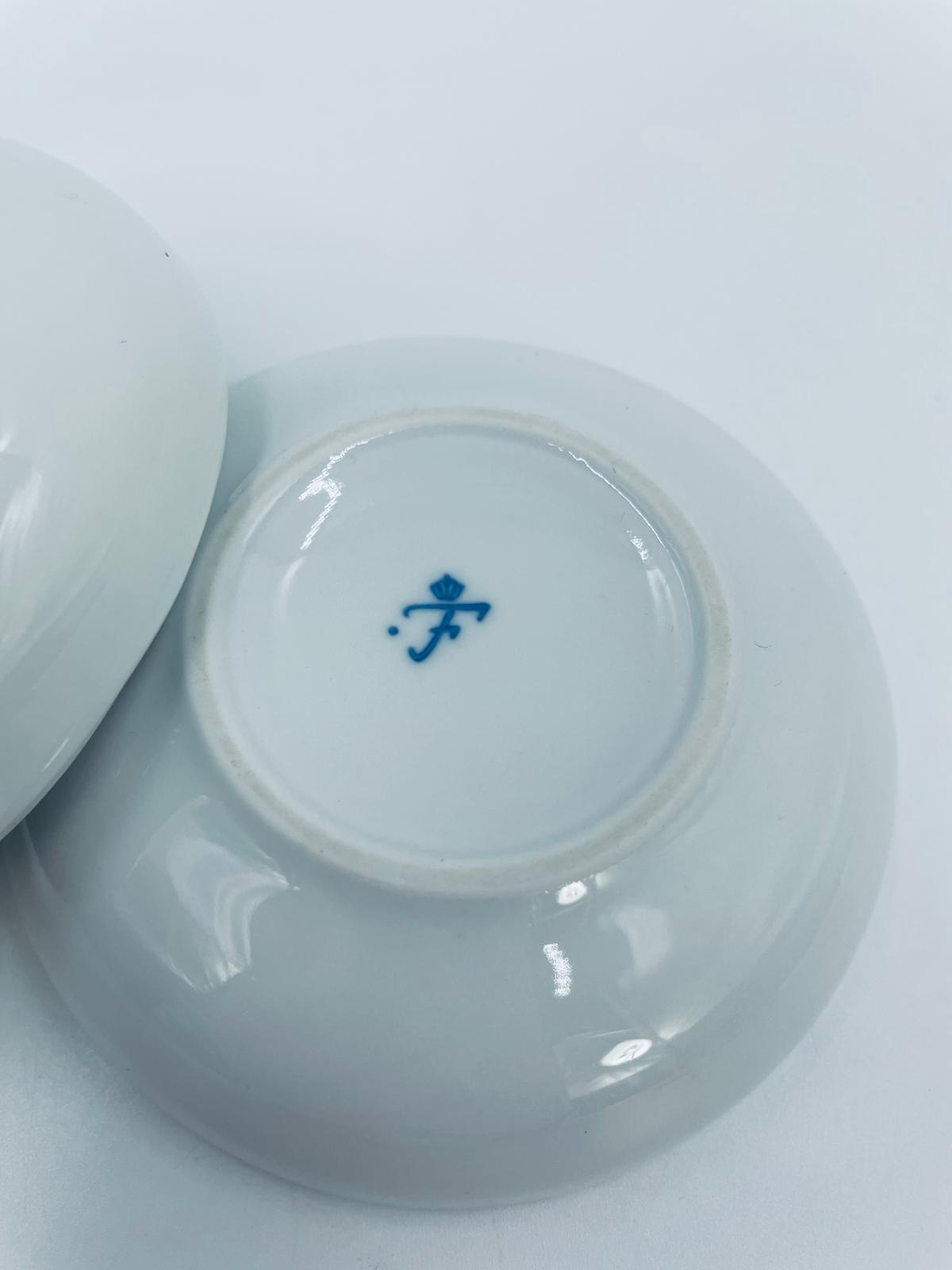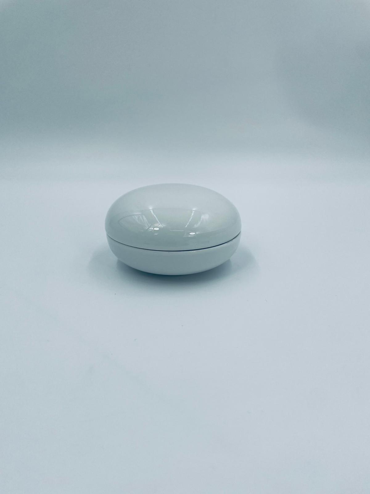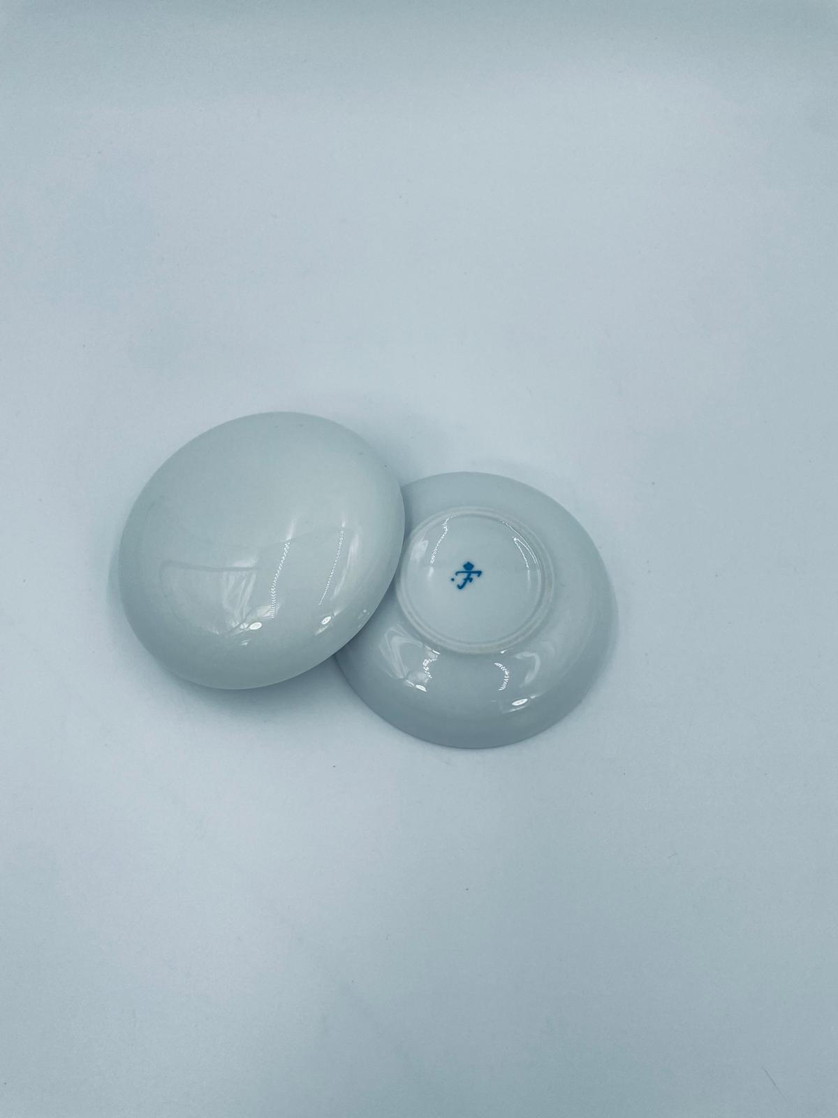 Puzderko na drobiazgi wytwórni Furstenberg, wykonane z wysokiej jakości białej porcelany. Puzderko z pokrywą, klasyczne, eleganckie, o okrągłym kształcie.