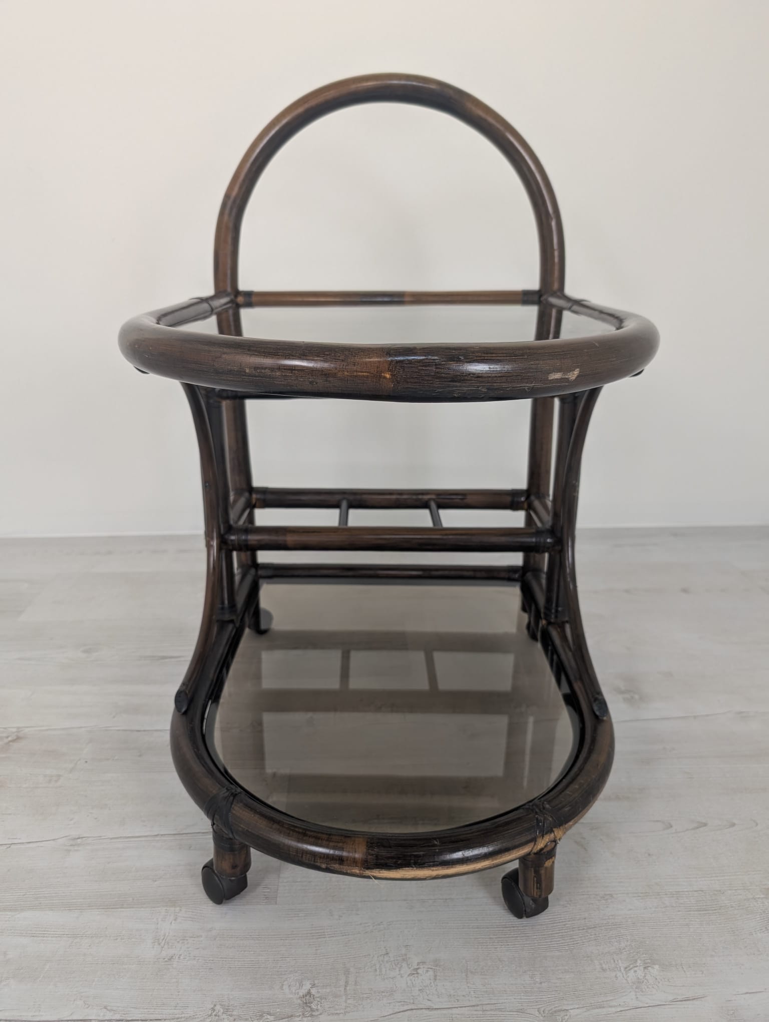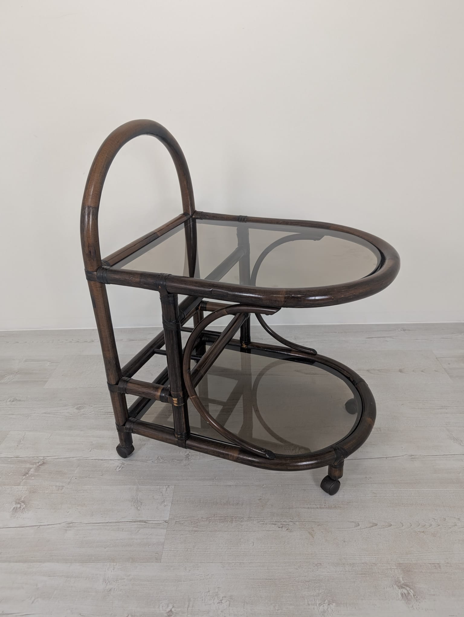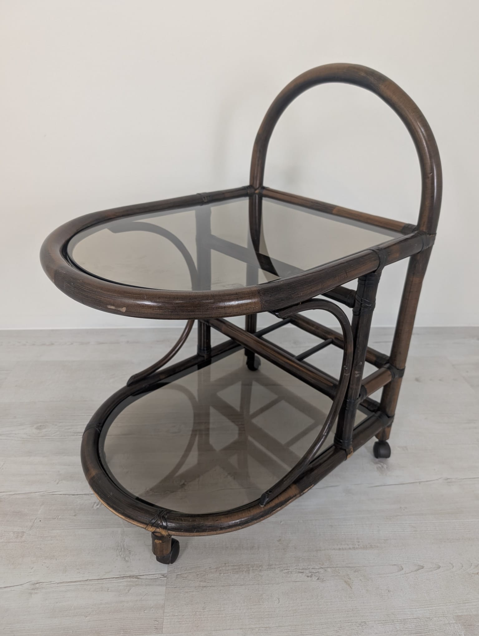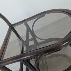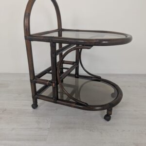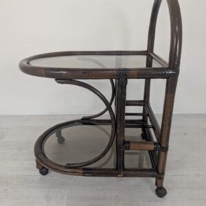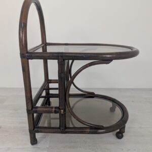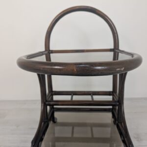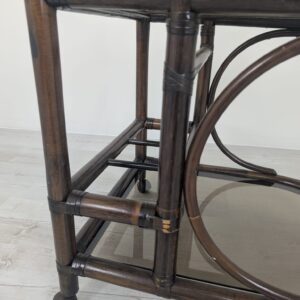 Cabinet, rattan mobile bar with smoked glass panels