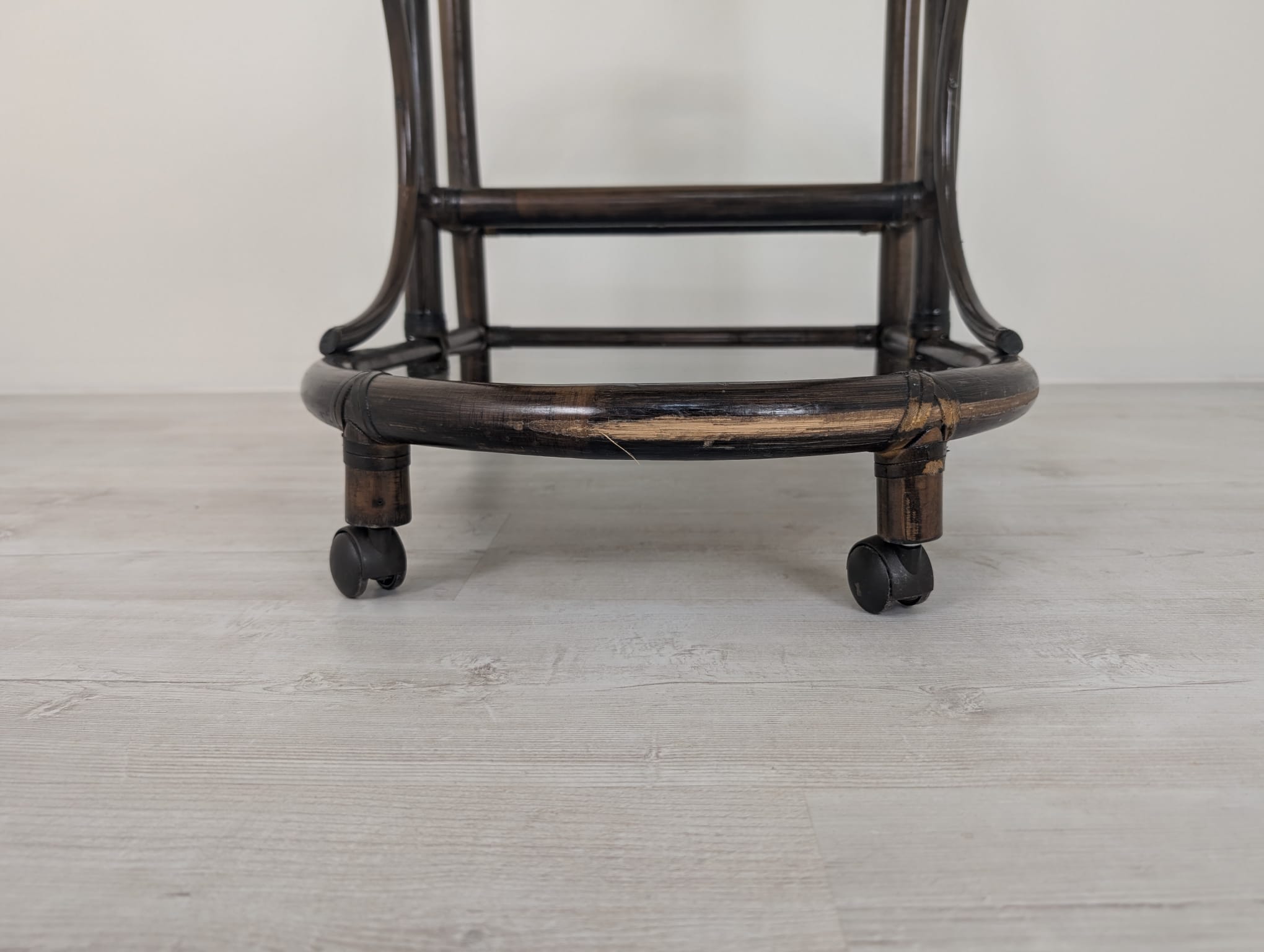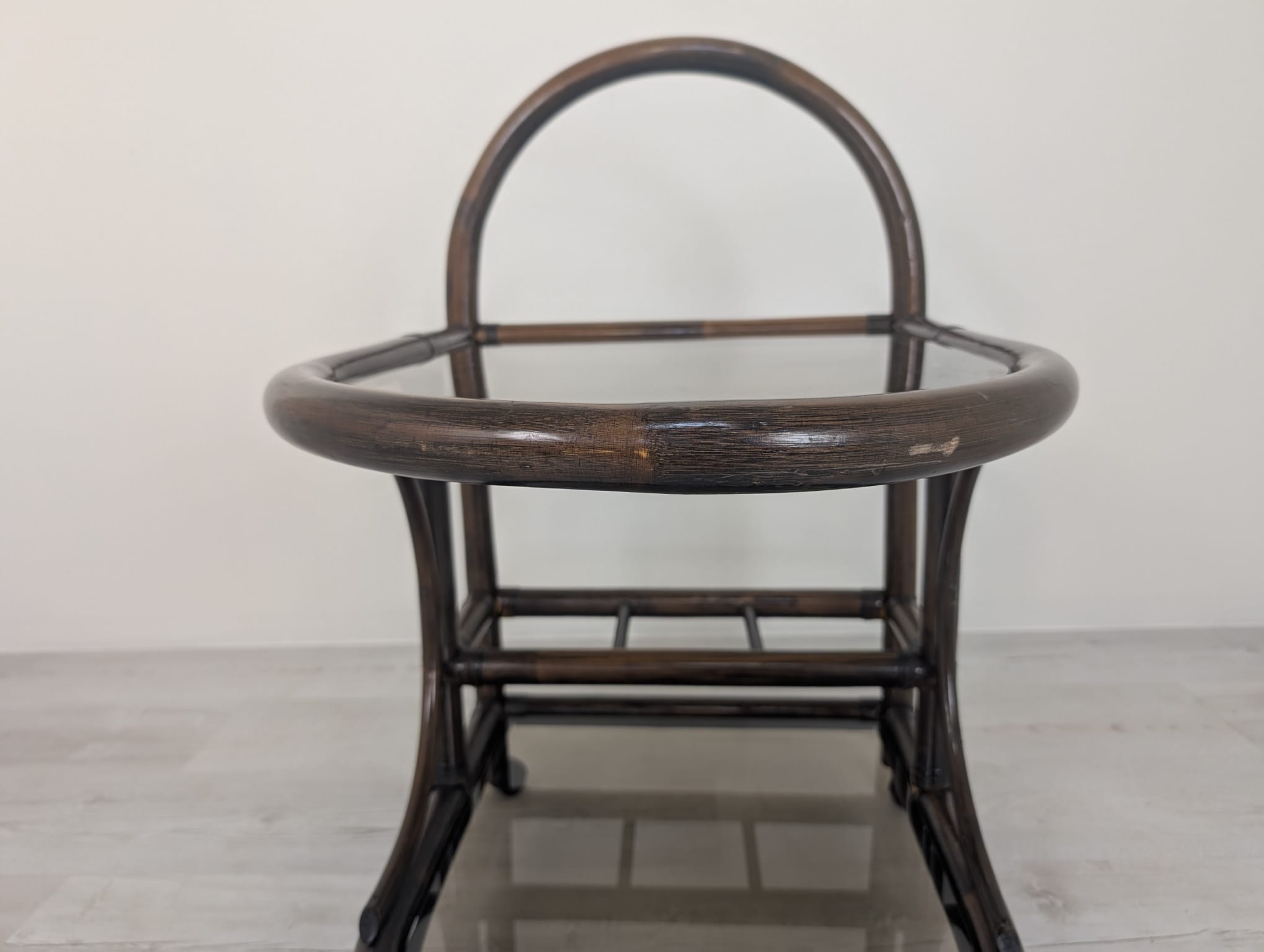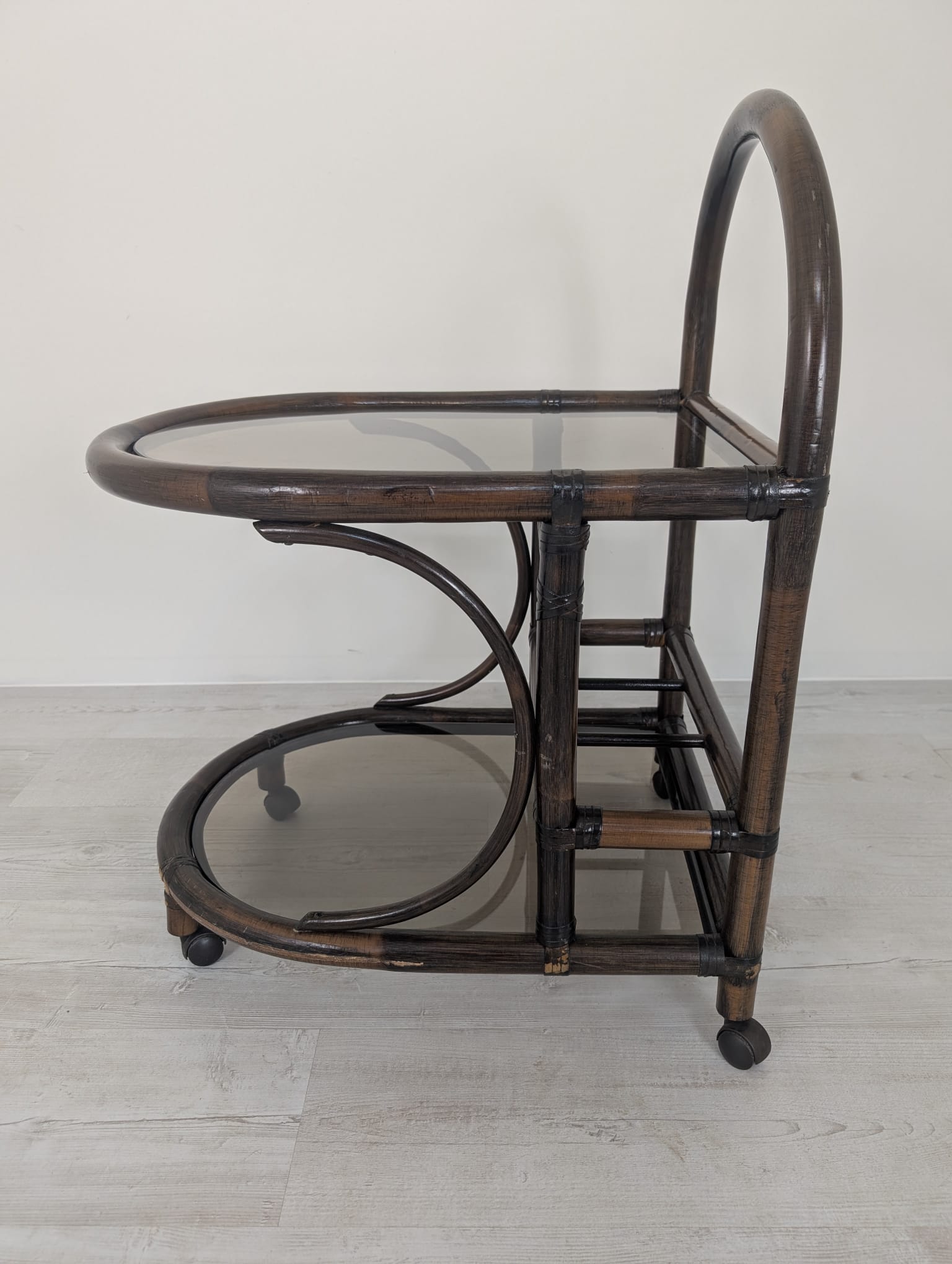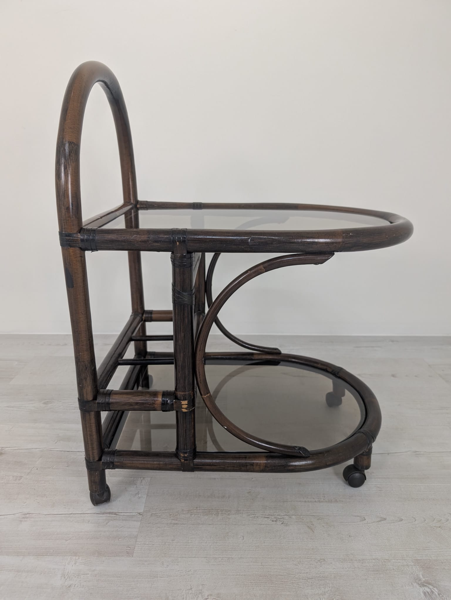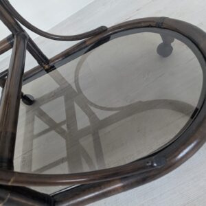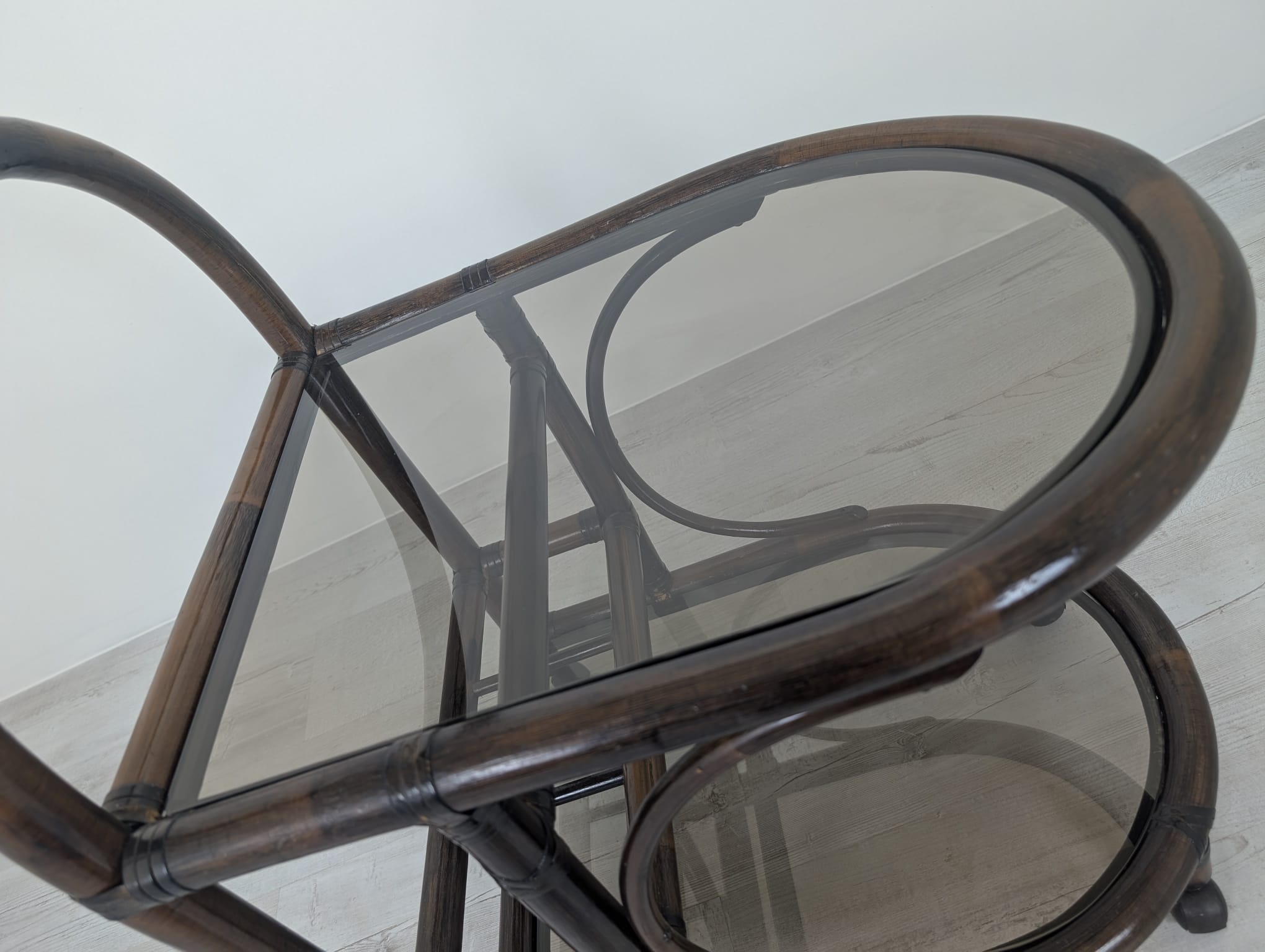 Bar made of dark rattan covered with two smoked rails.
