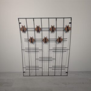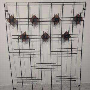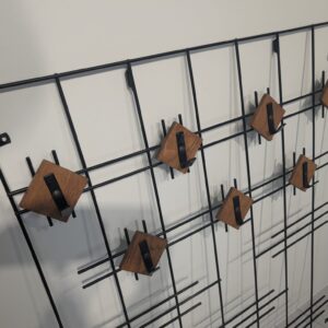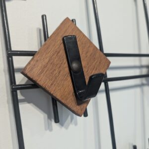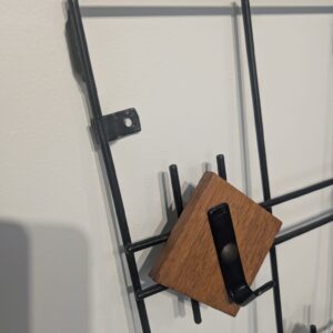 Metal hanging rack with teak hangers.