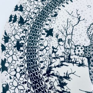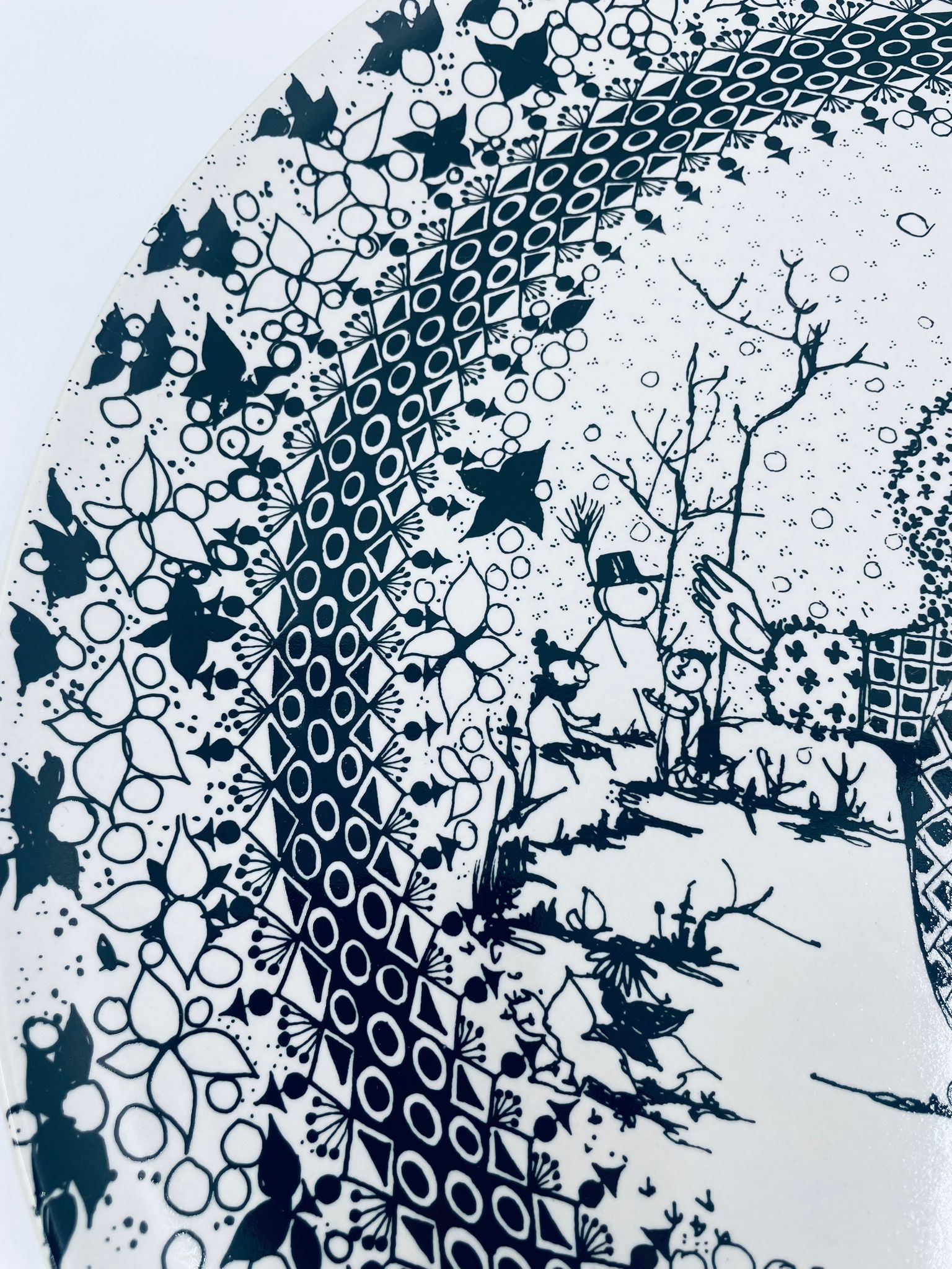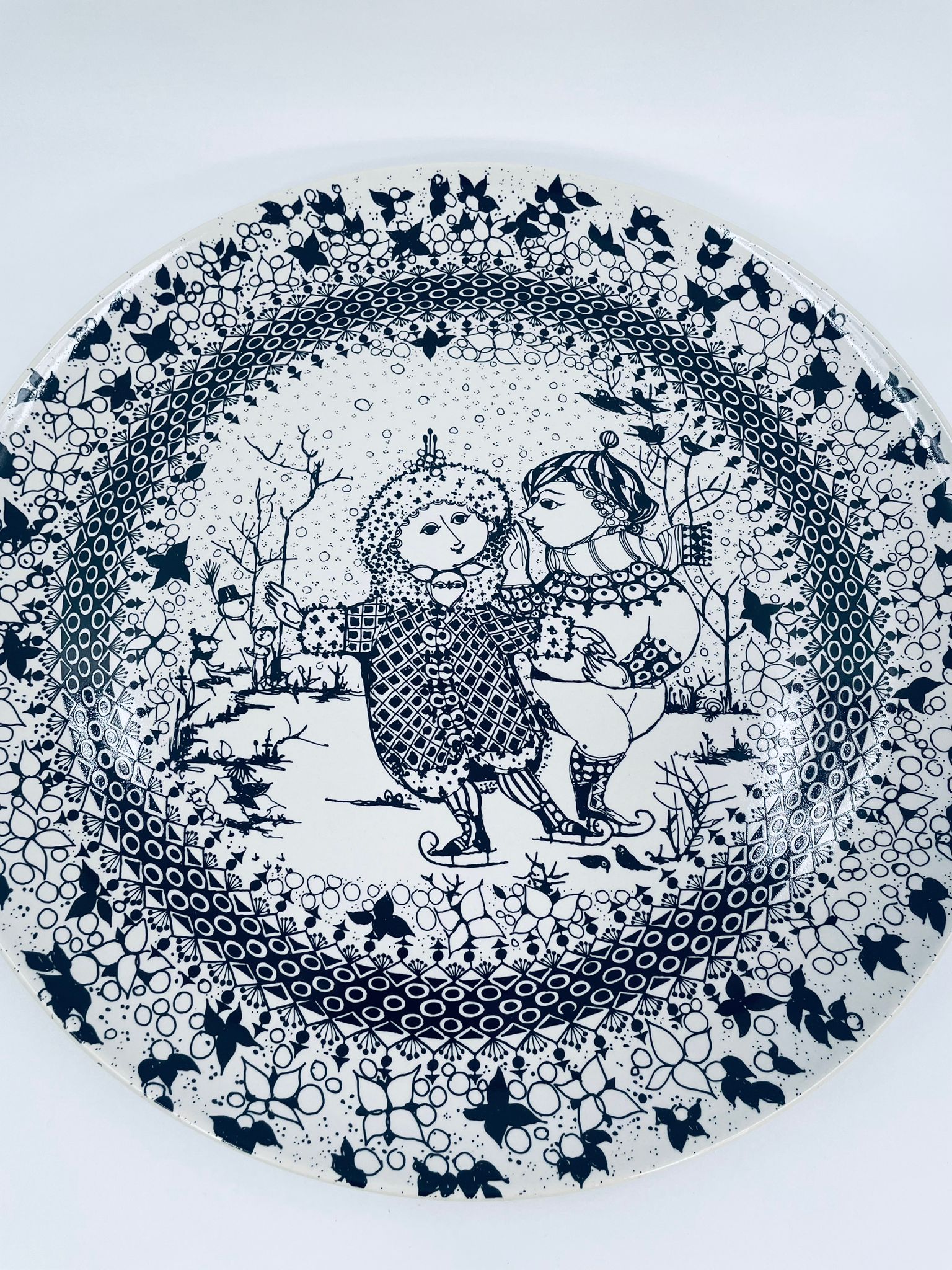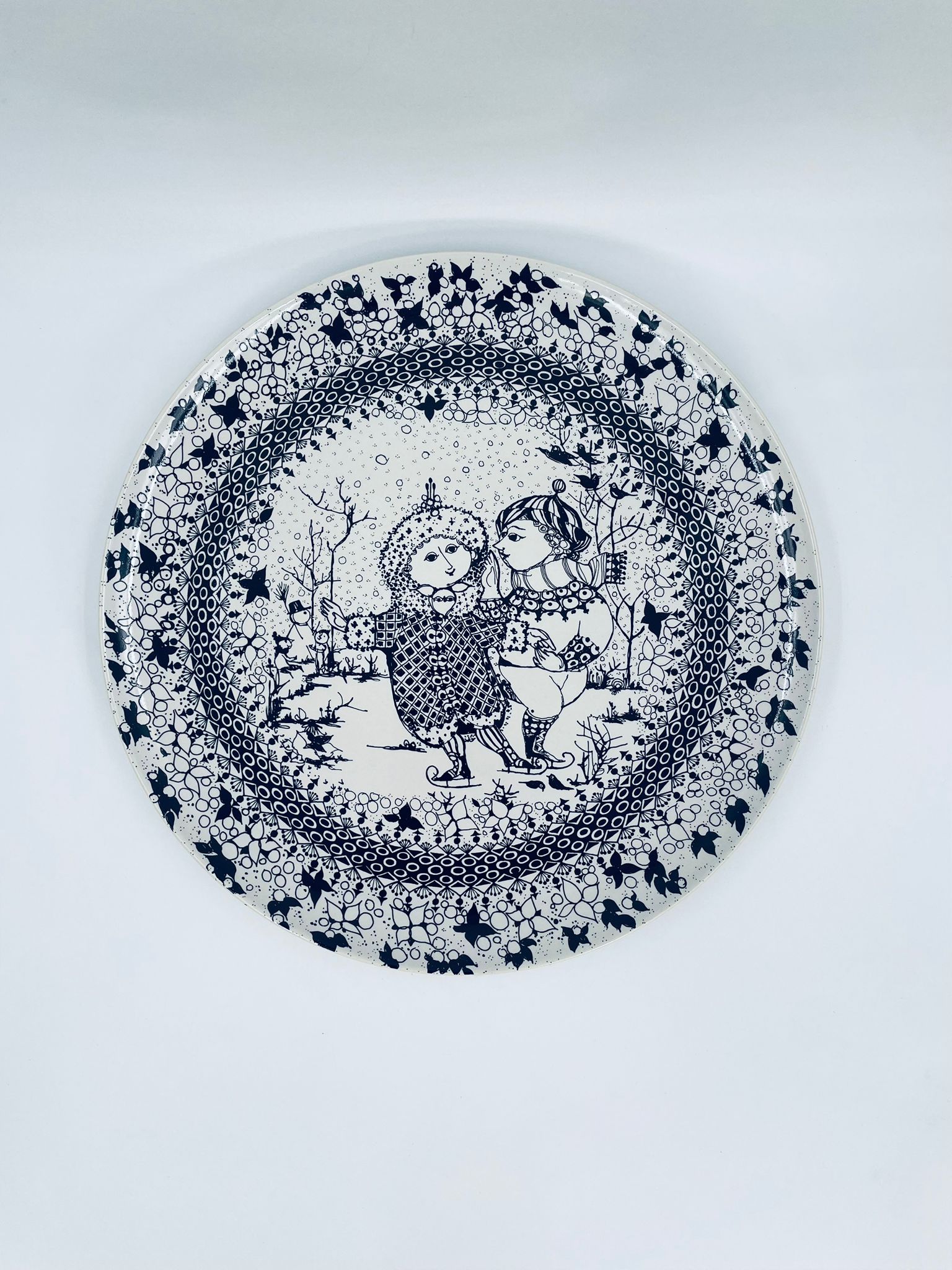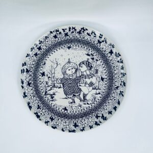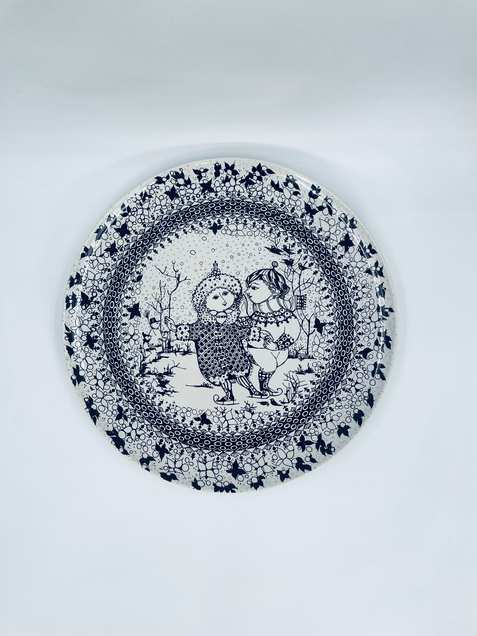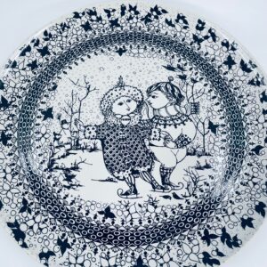 Decorative wall plate , Rosenthal label from the „Four Seasons” collection by Danish artist Bjorn Wiinblad, made of high-quality porcelain. The plate represents Winter. The design depicts two figures in a winter setting.