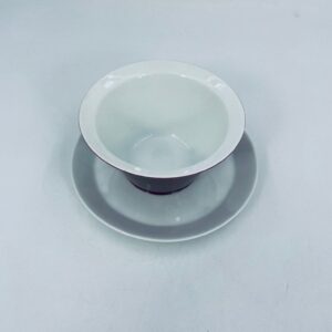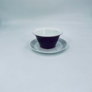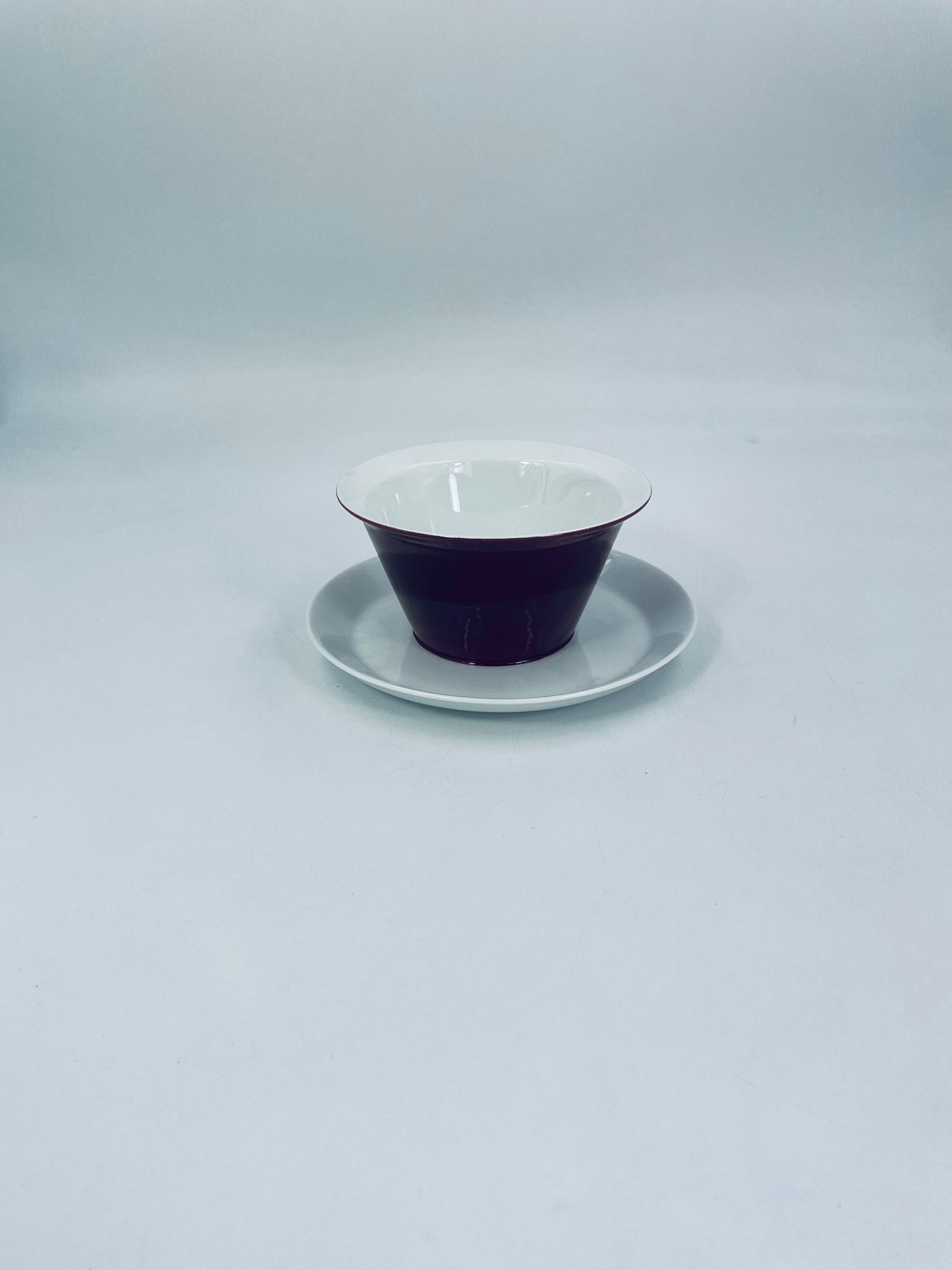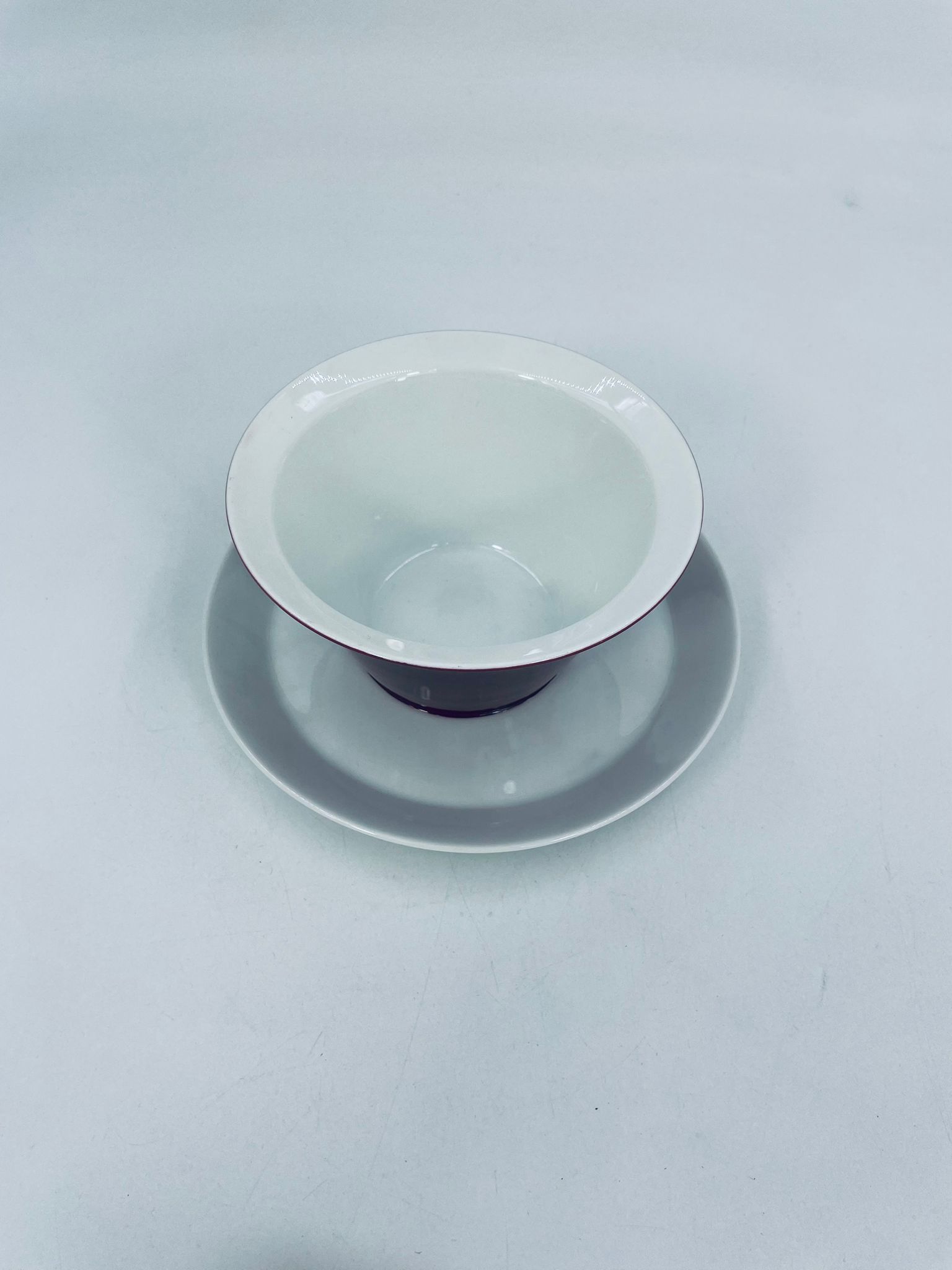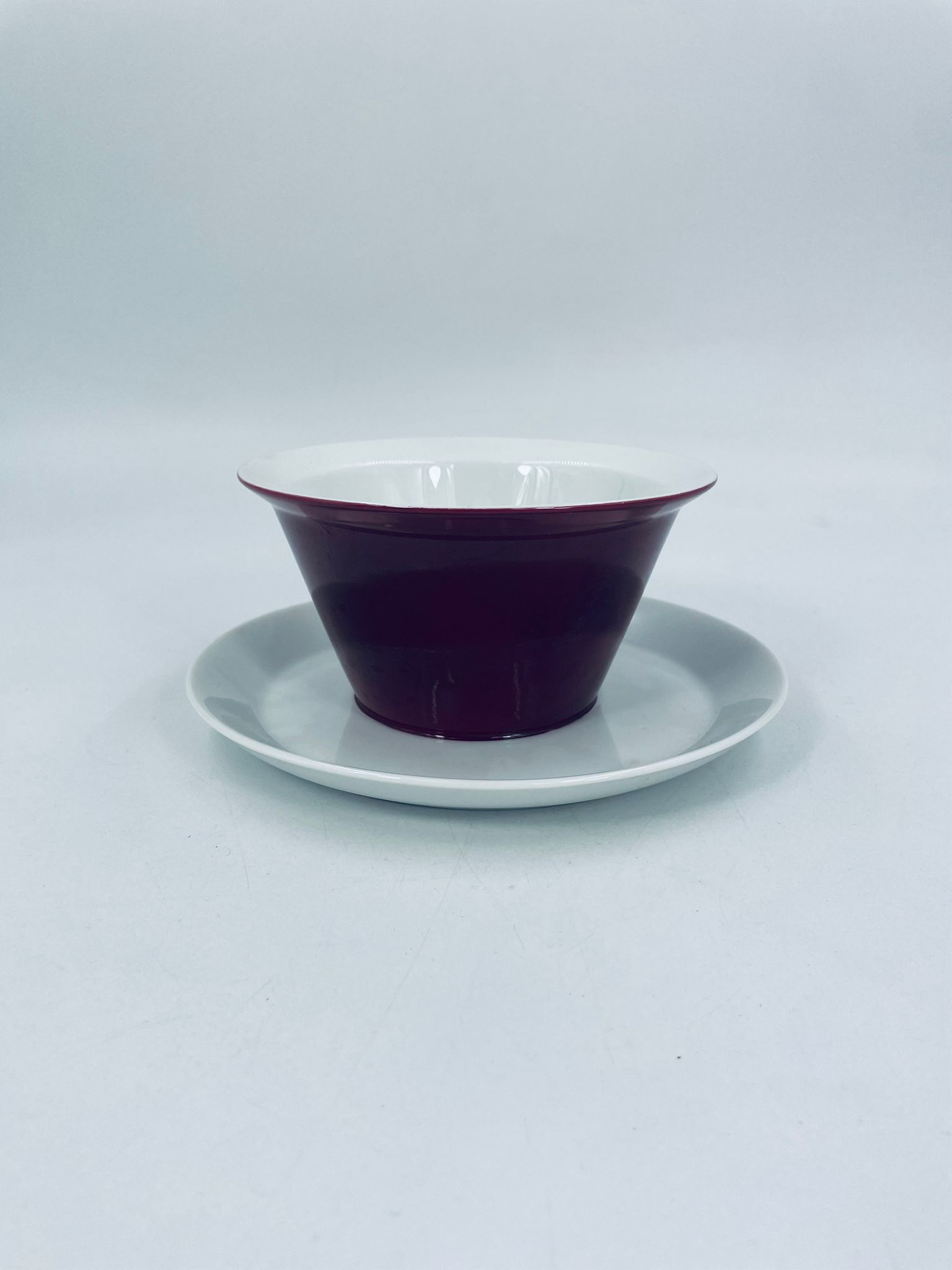 Saucepan with saucer by the well-known Rosenthal factory, made of high-quality white porcelain. The plate is white and the bowl in burgundy.