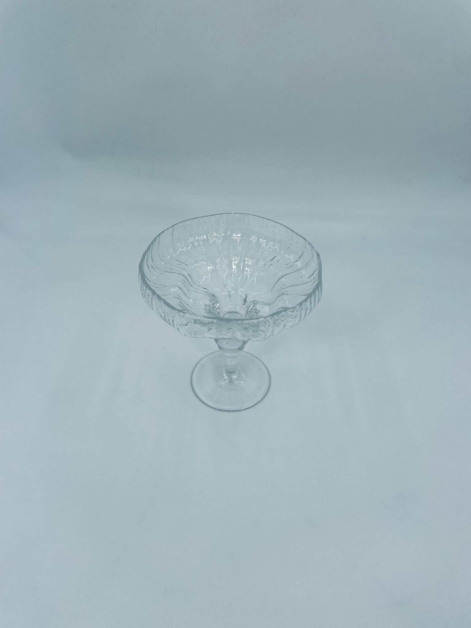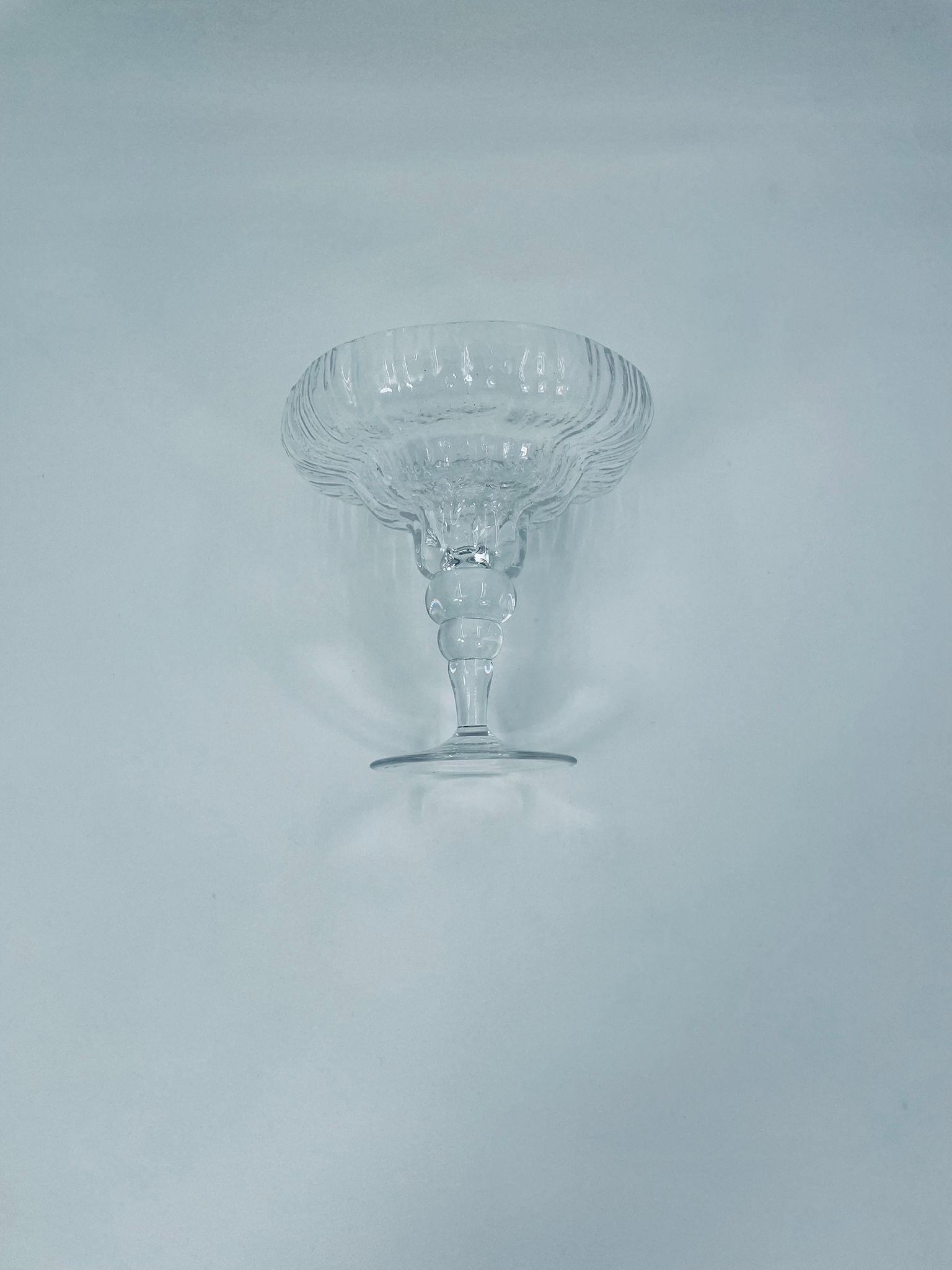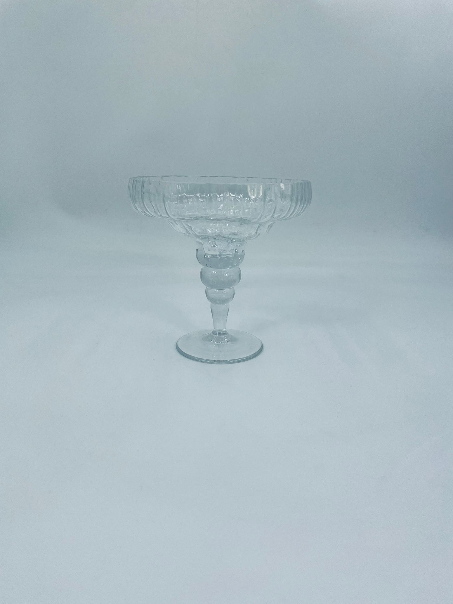 Cup/bowl by the Rosenthal Studio Line Crystal label, made of clear crystal glass. The goblet has a ribbed texture on the outside of the upper part, the leg with spherical elements tapering towards the base. The goblet is ideal for serving sweets, nuts and also as a decorative element.