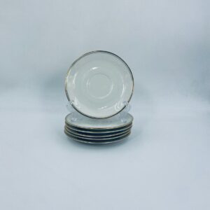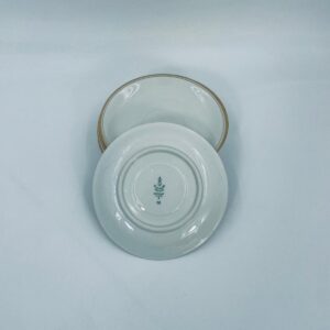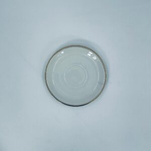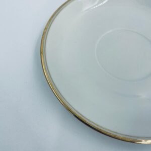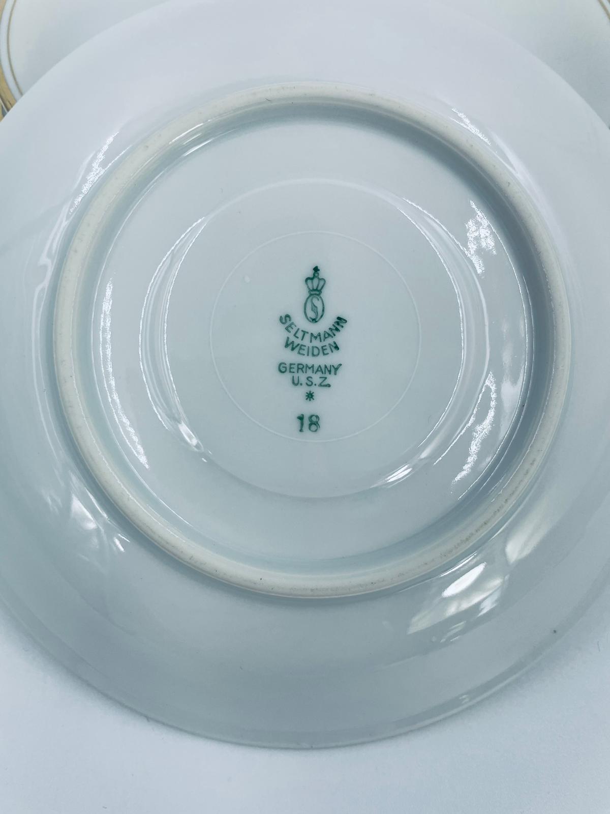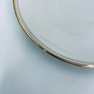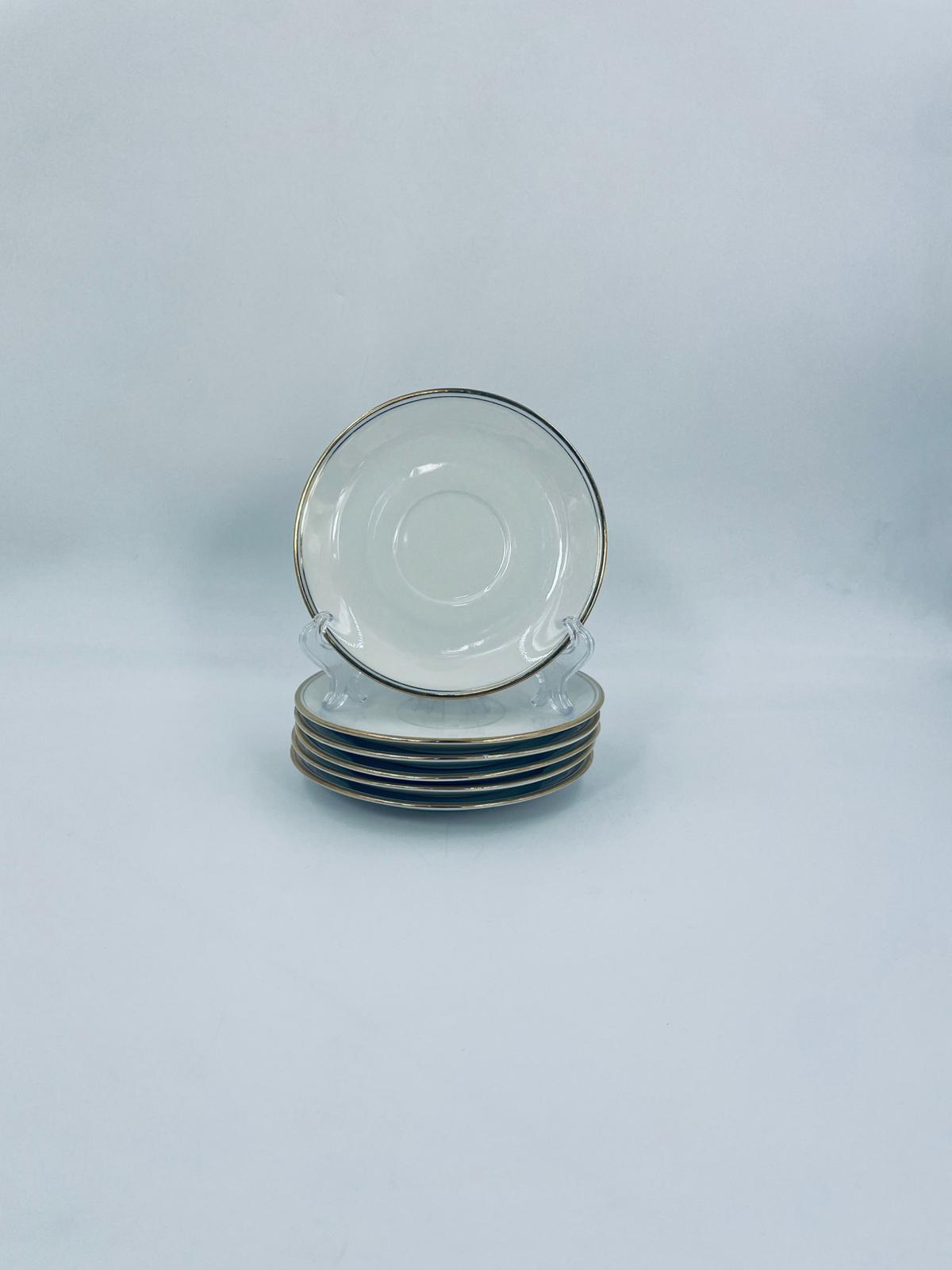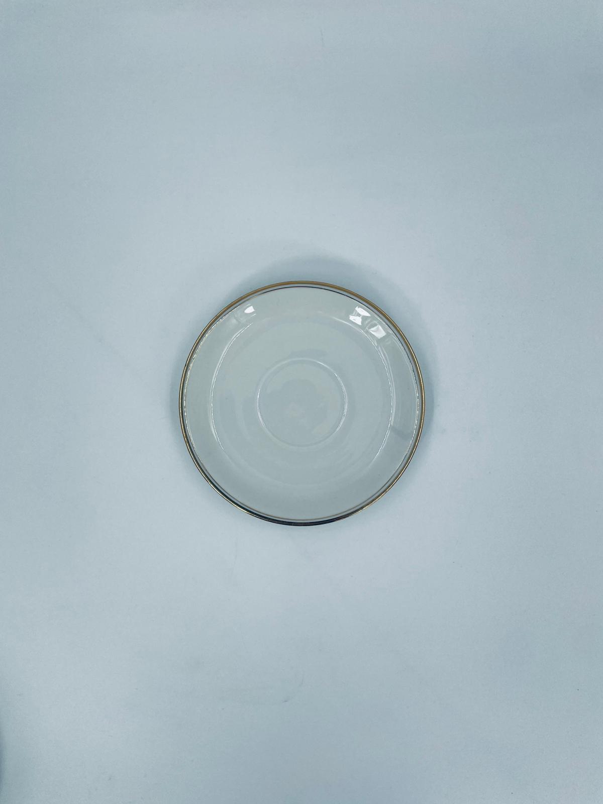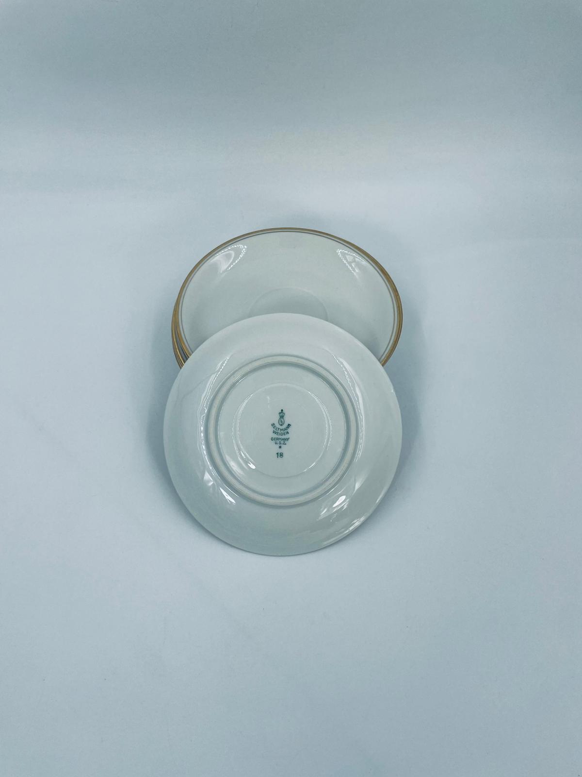 Cup saucer by Seltmann Weiden, made of high quality white porcelain. A classic round saucer, finished with gilding on the rim. It has rubbing on the gilding and a small loss.