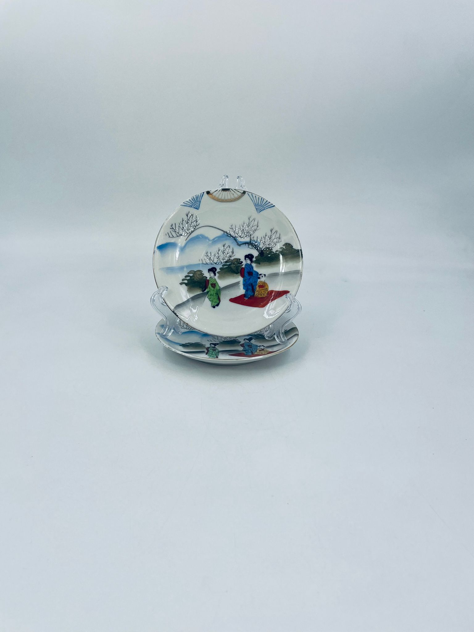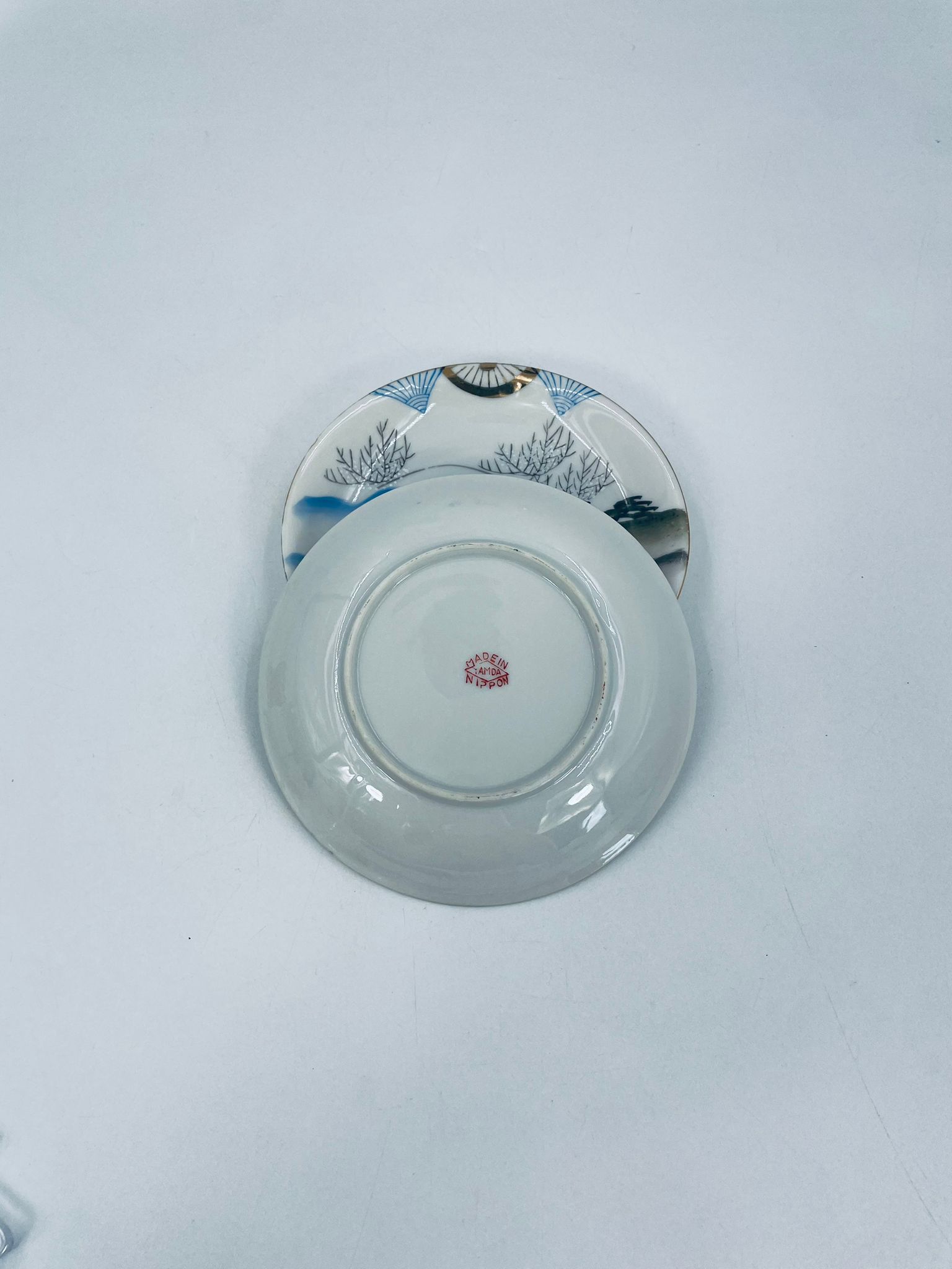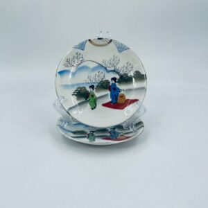 Yamda Nippon teacup saucer, Japanese, manufactured in white fine porcelain, hand-painted in a Geisha style design.