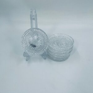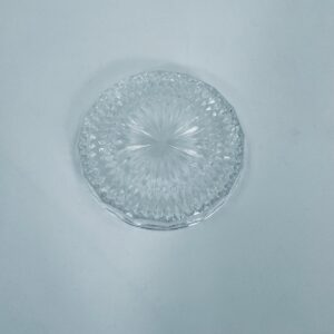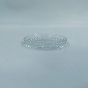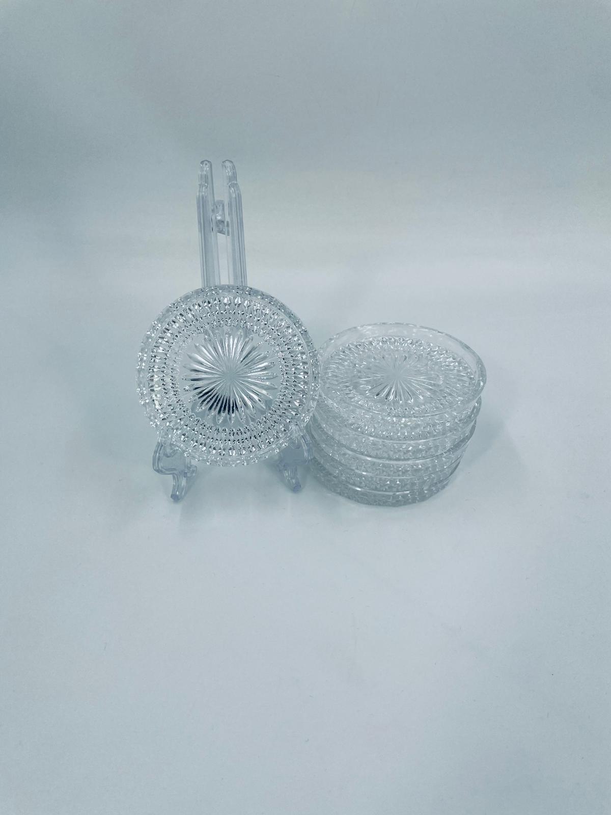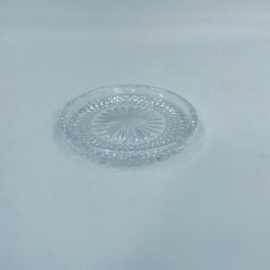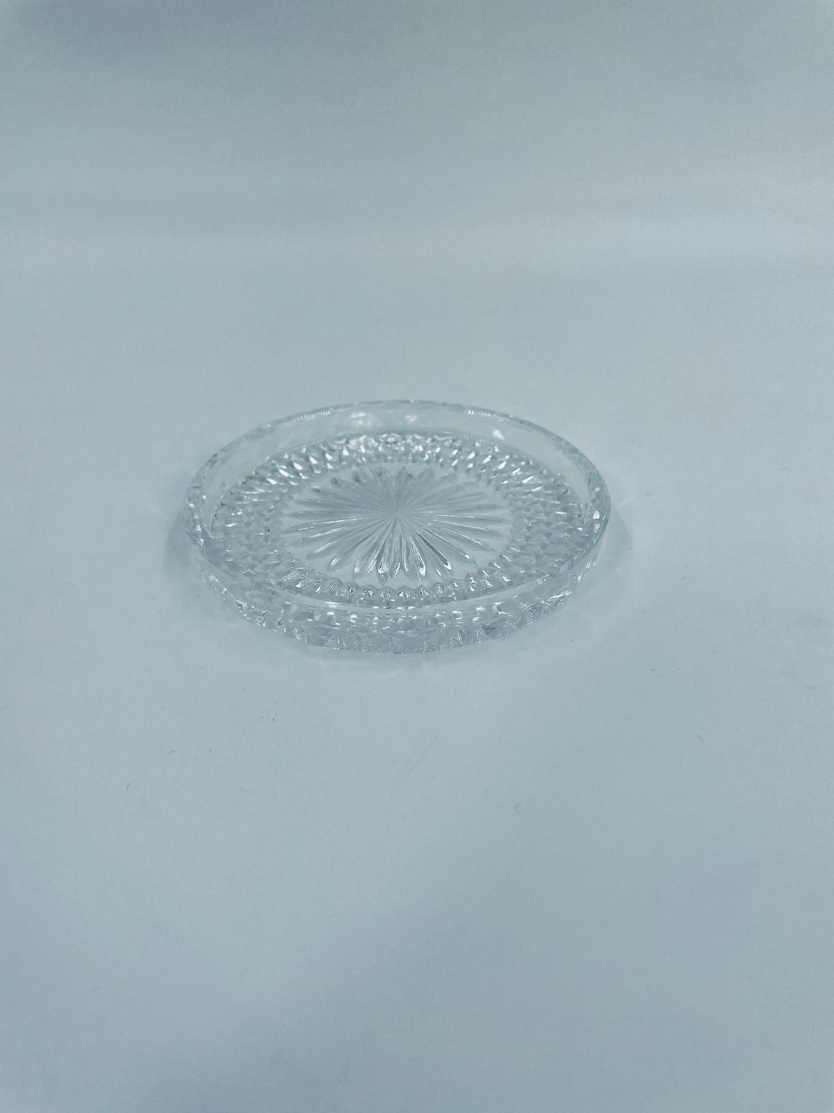 Saucer, saucer from the 1960s in Vintage style, made of high quality clear crystal glass. It features a faceted design with a central radial motif and a decorative rim.