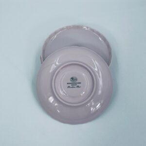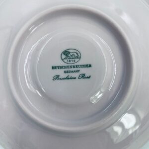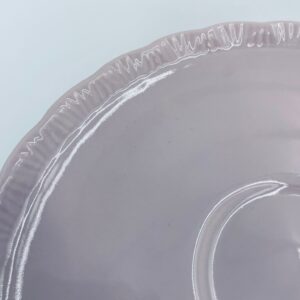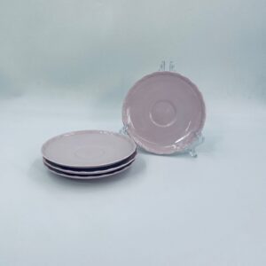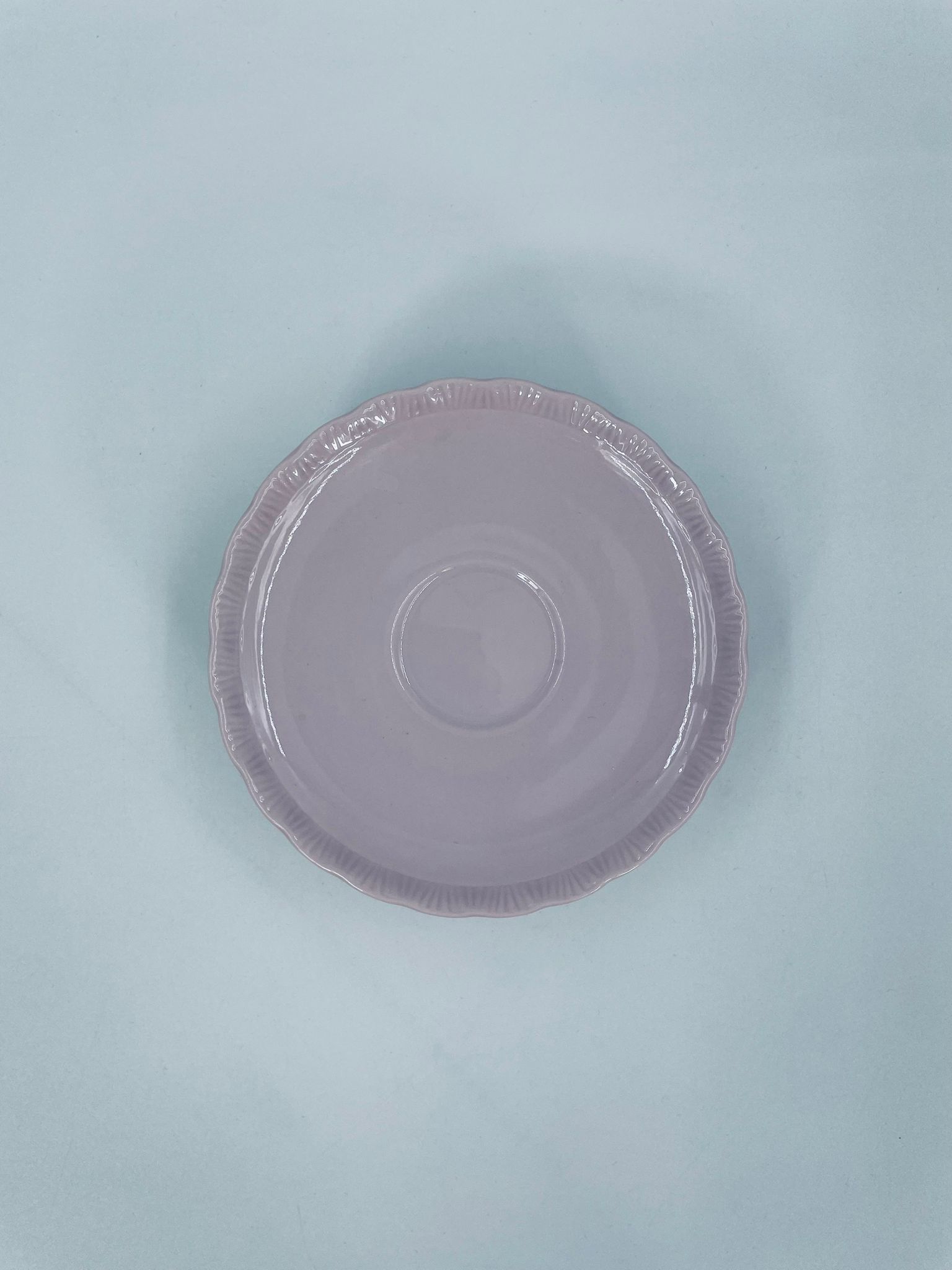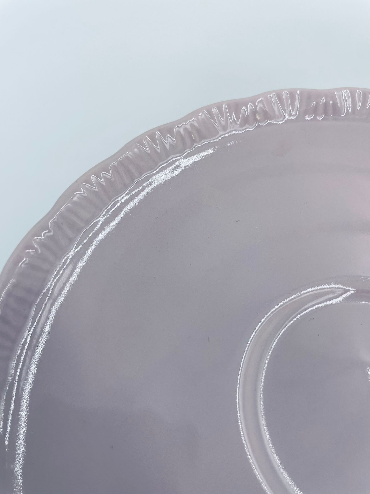 A teacup saucer by the Hutschenreuther label, made of high-quality Rose porcelain. The saucer is characterised by a delicate pastel pink shade, decorative reliefs and a wavy edge.