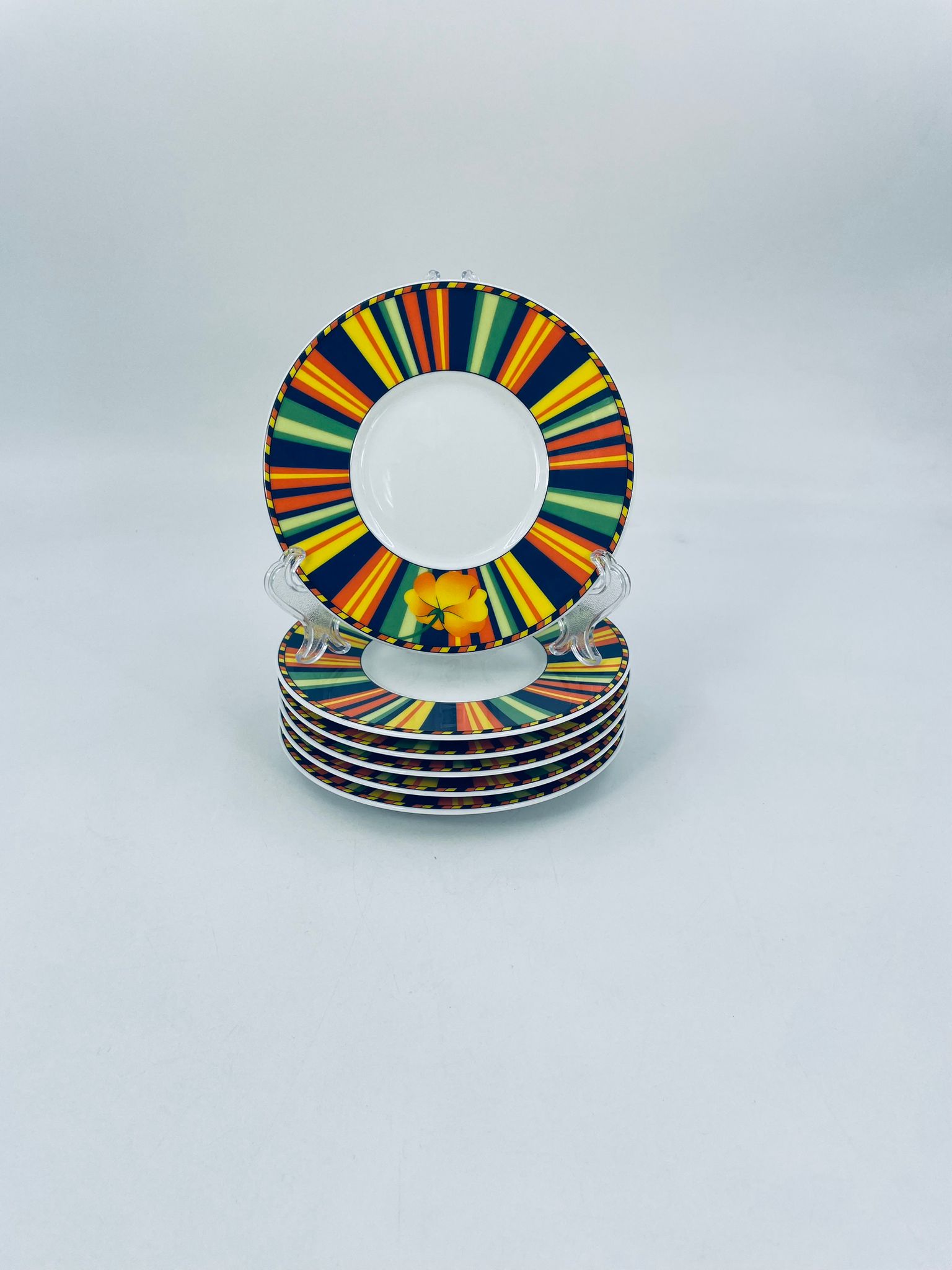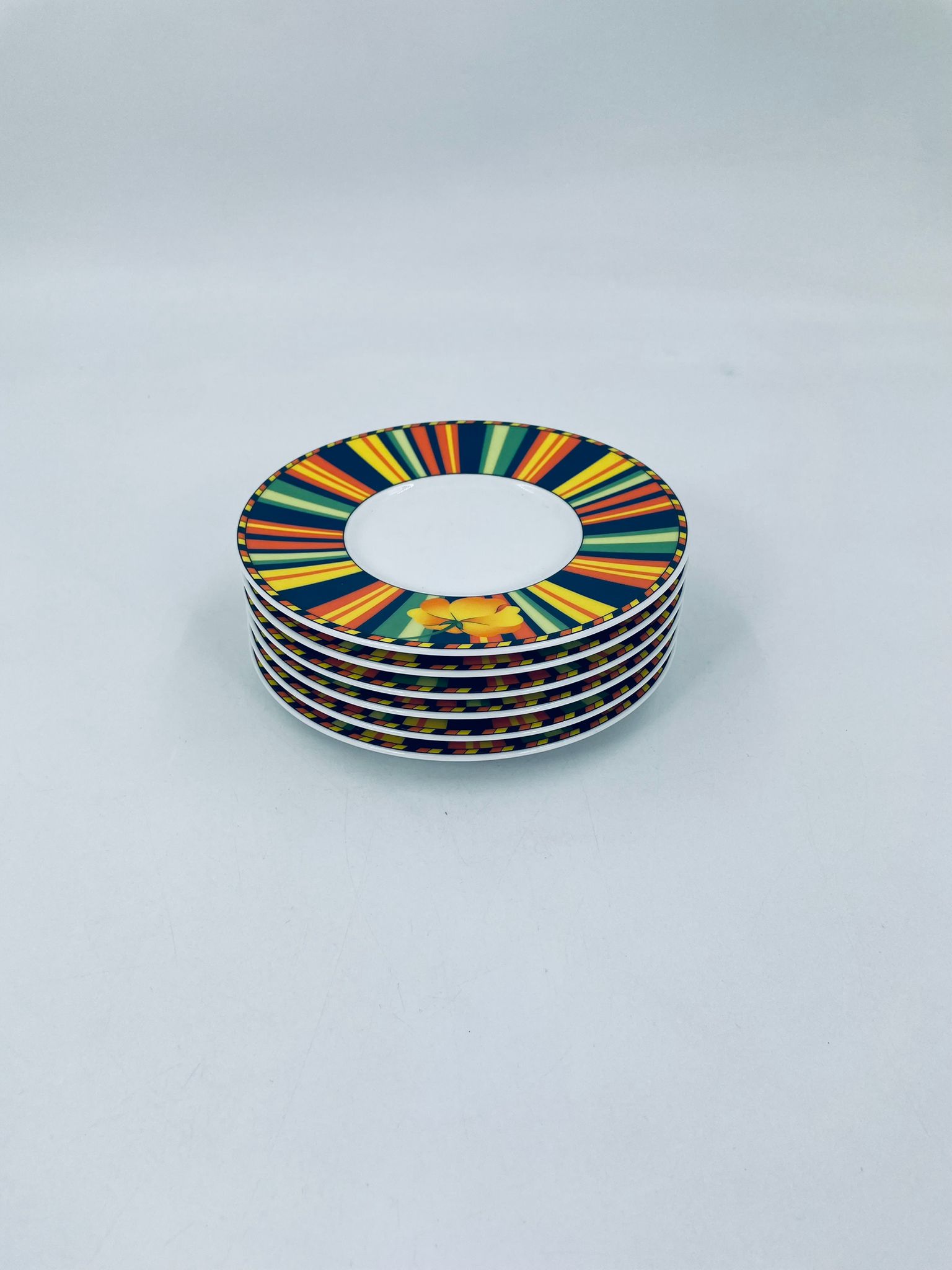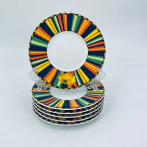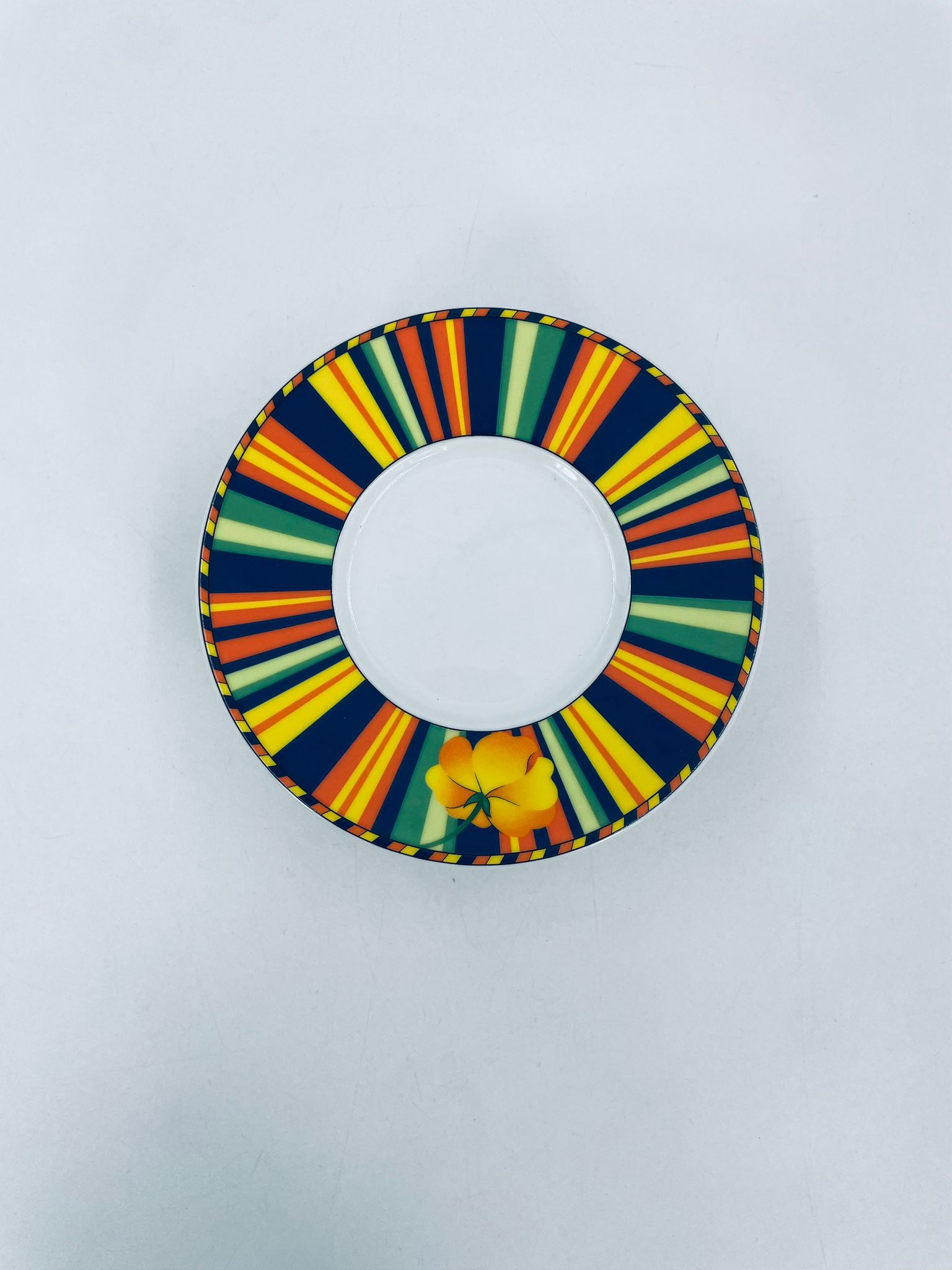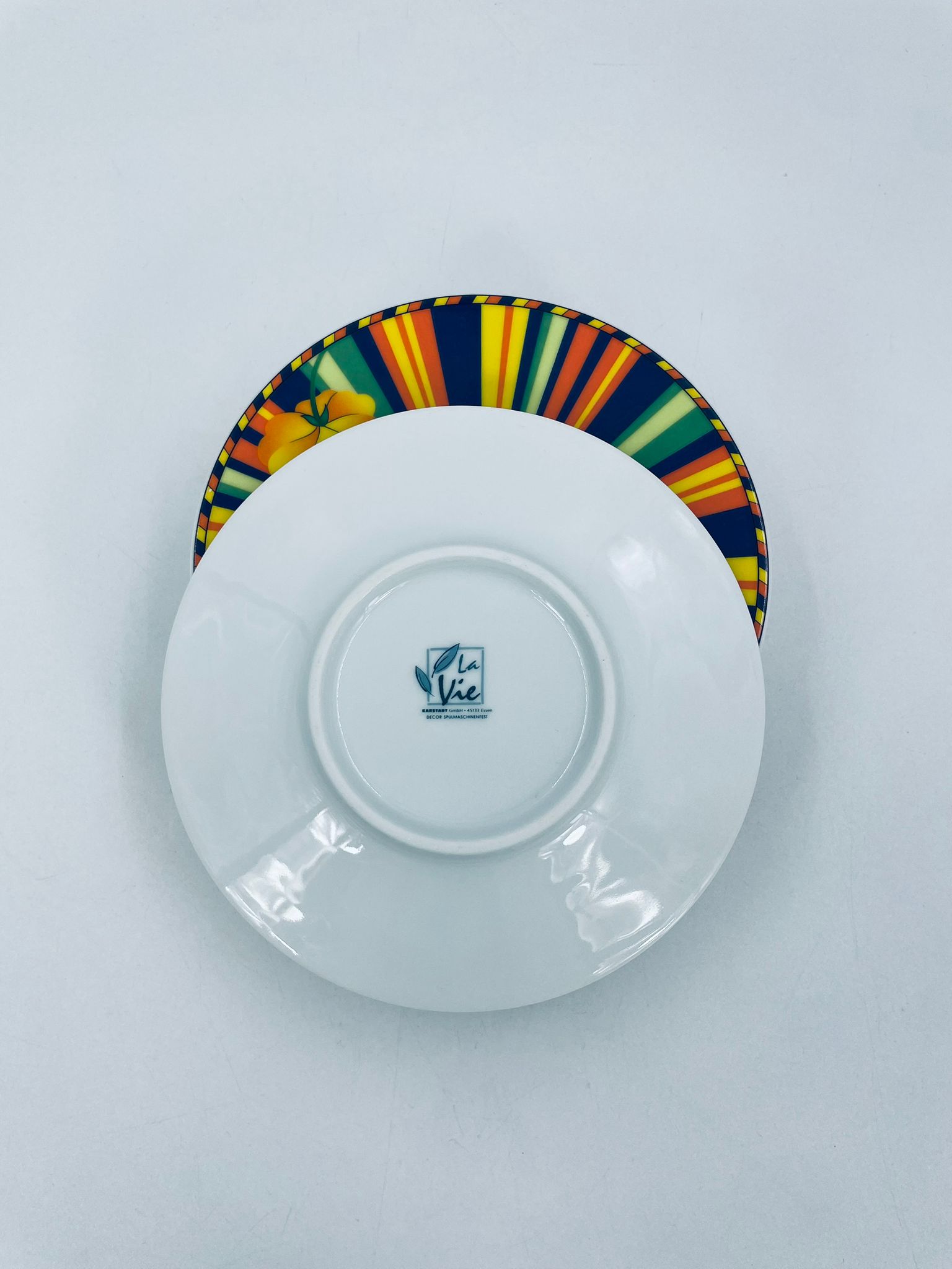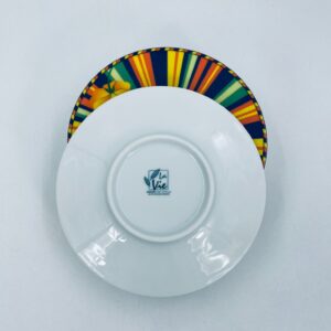 Cup saucer by La Vie with a decorative, distinctive multicoloured pattern and flower.