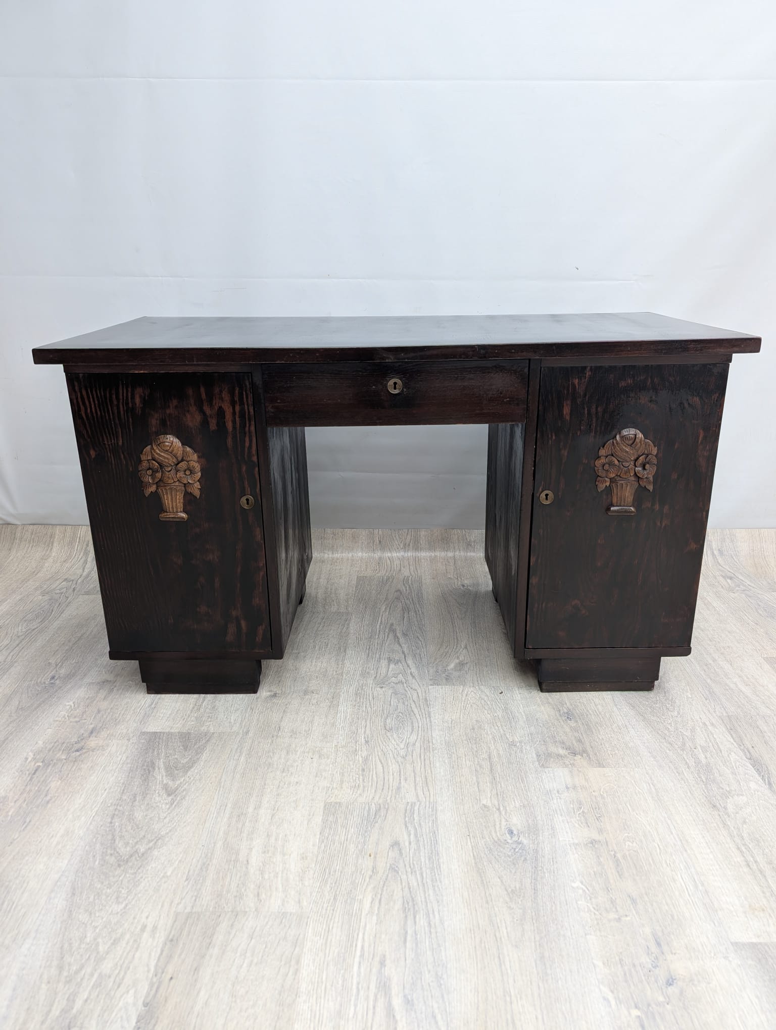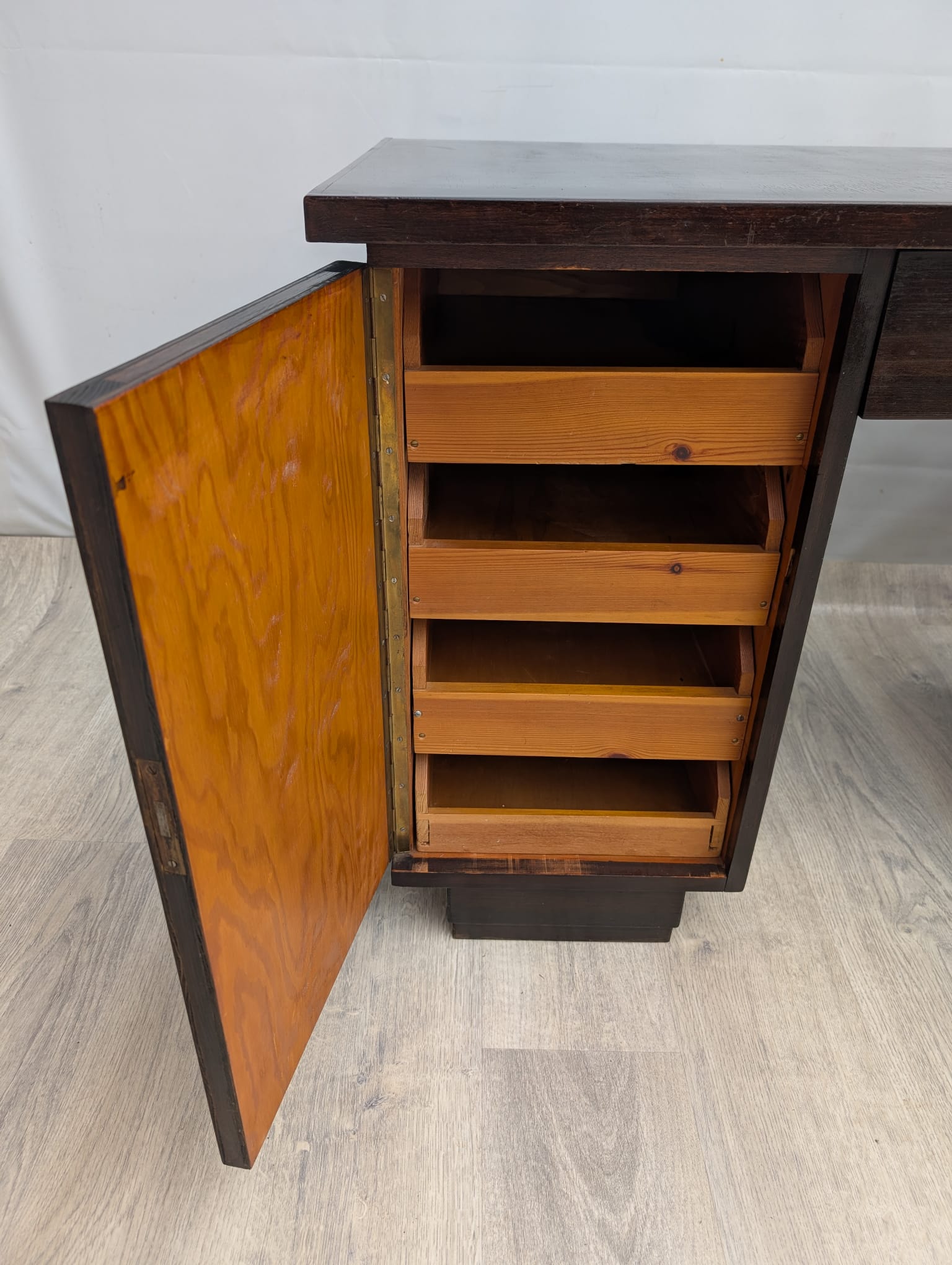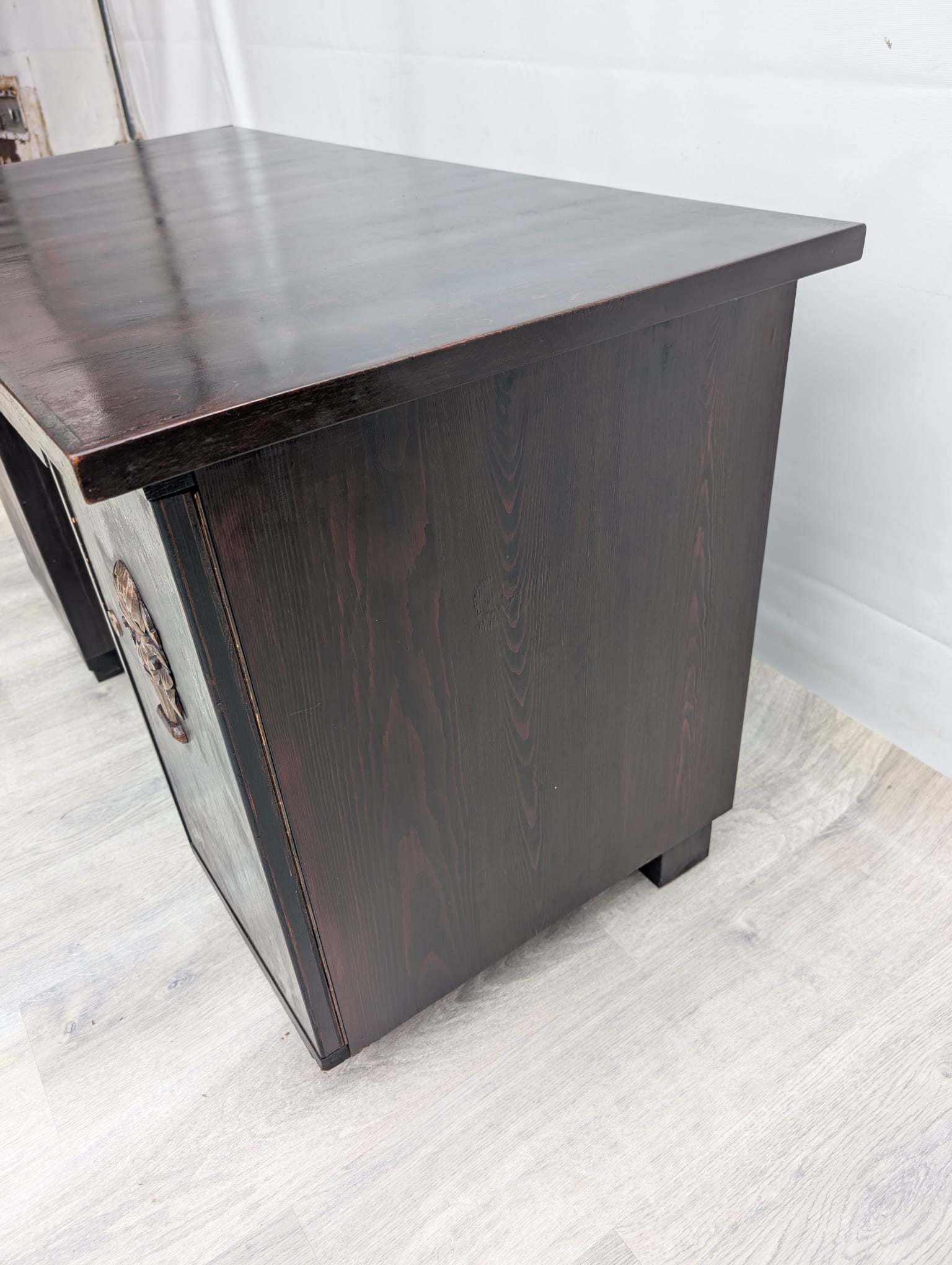 Massive solid oak desk in mahogany.