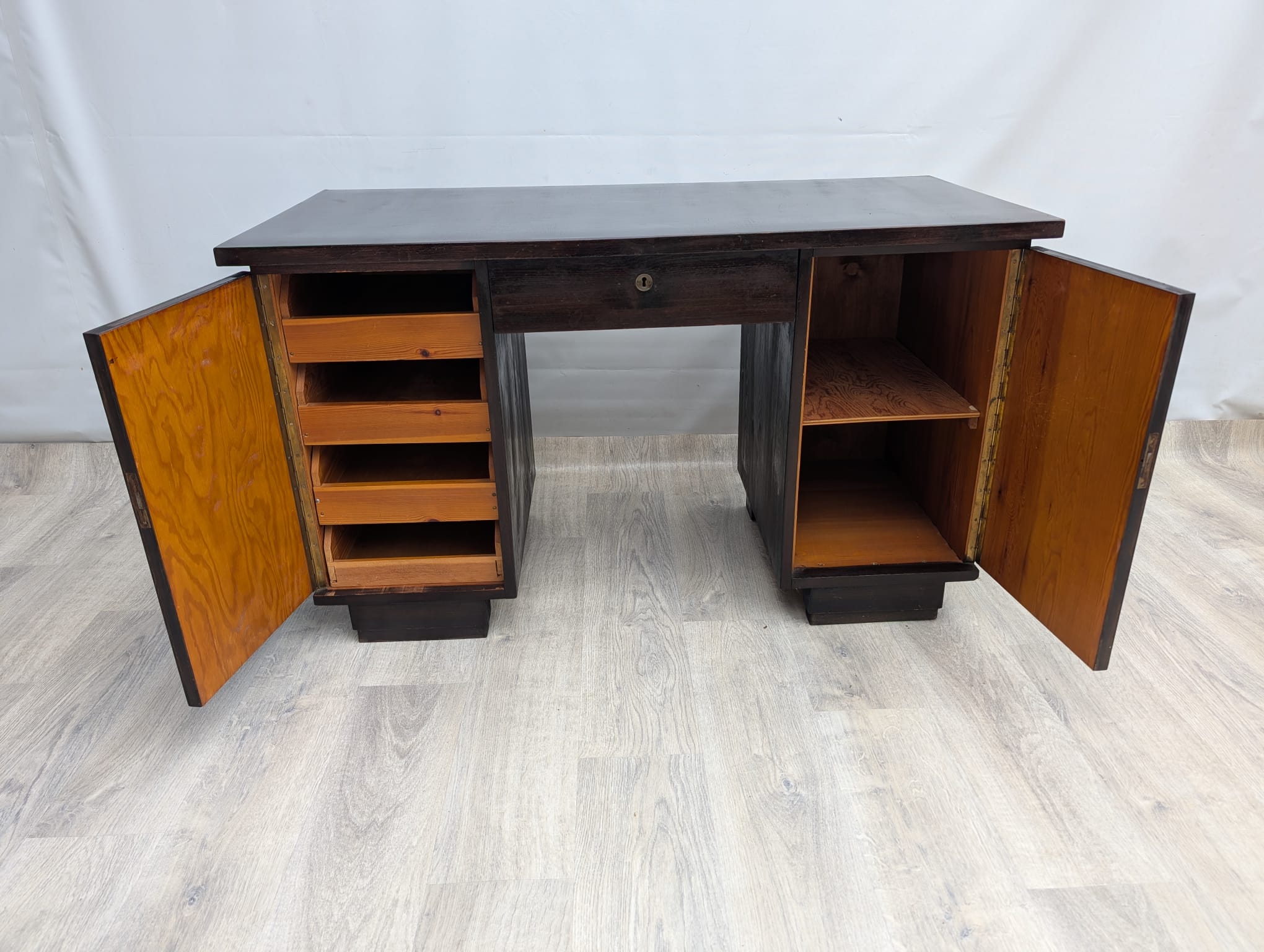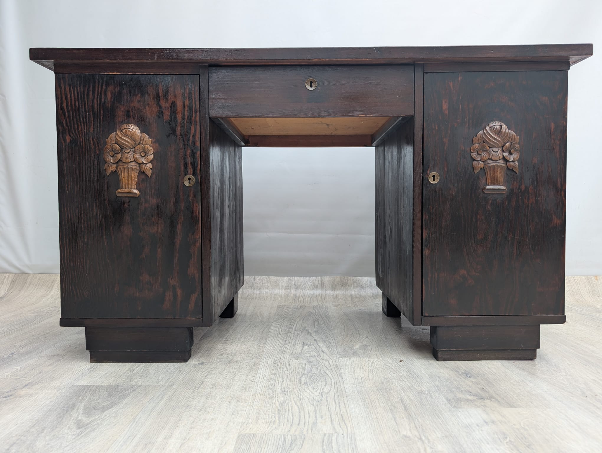 Solid oak desk from the inter-war period - double-sided