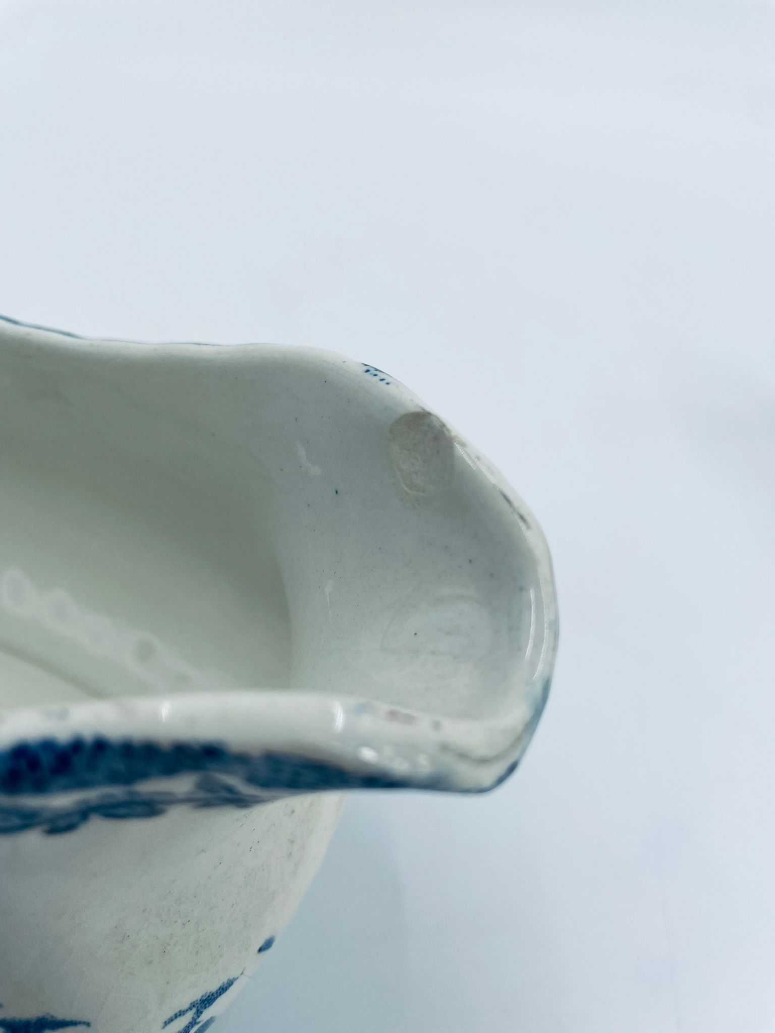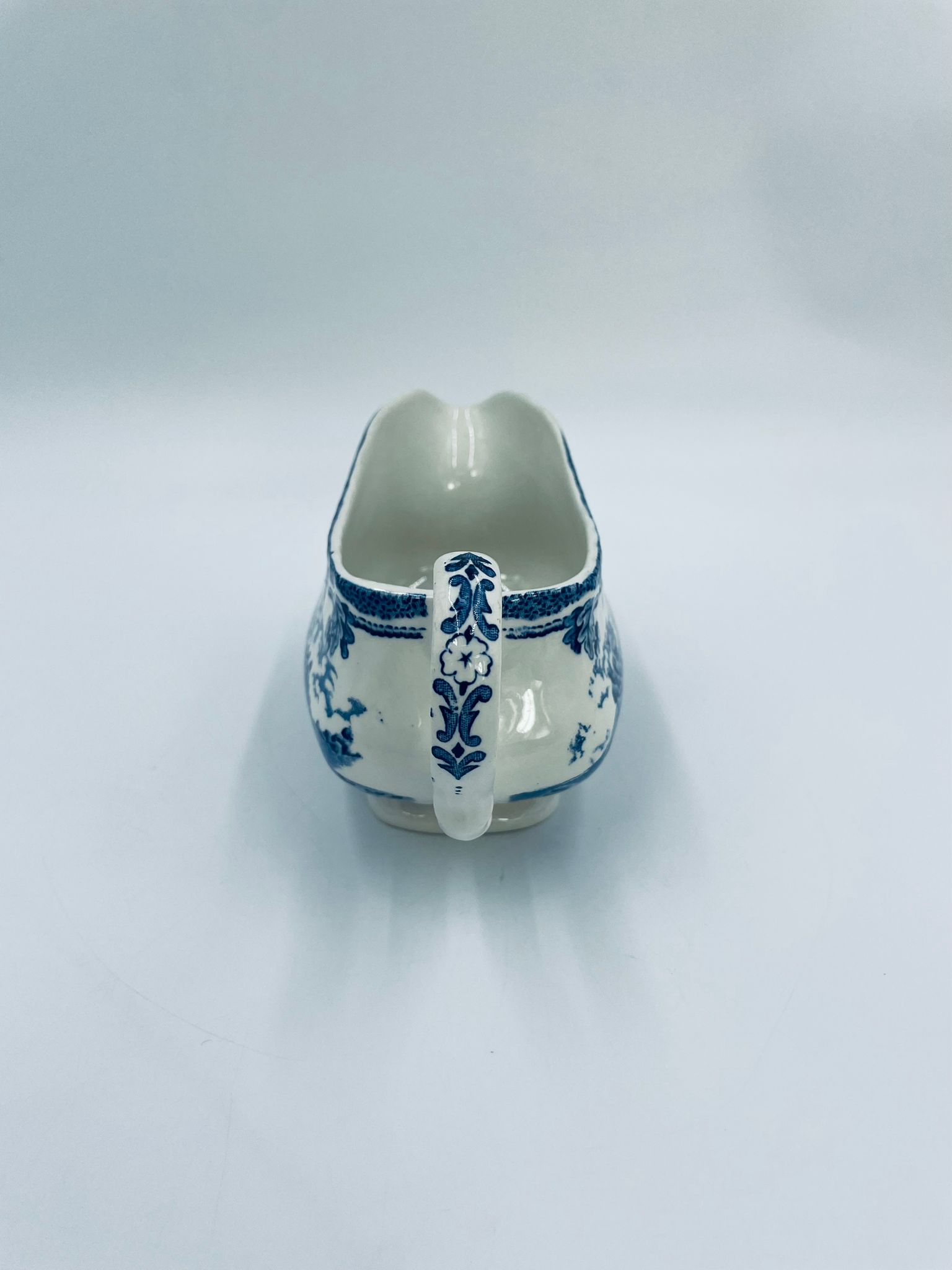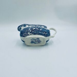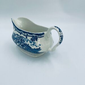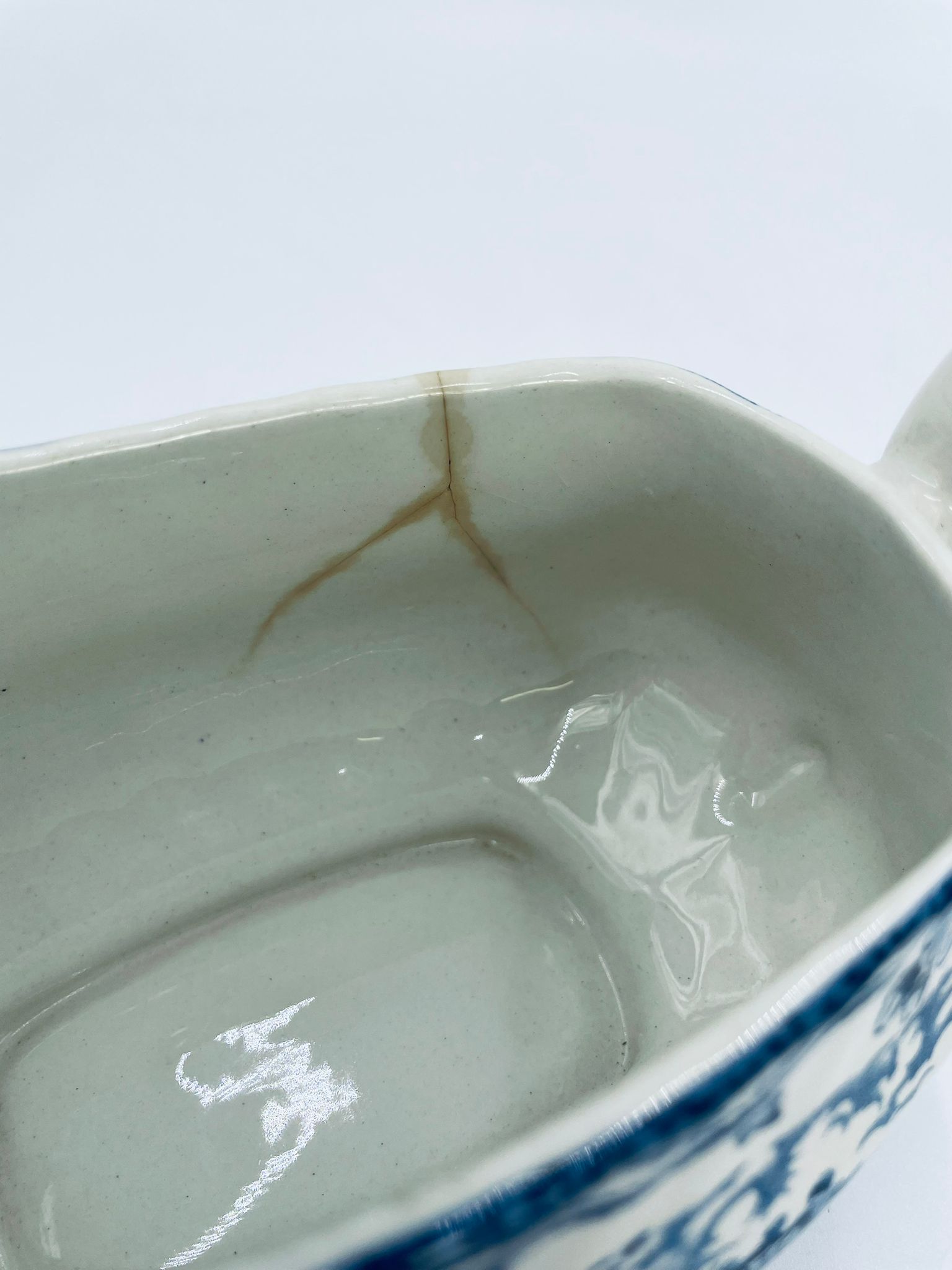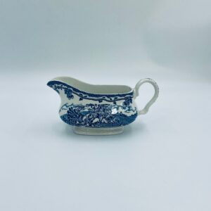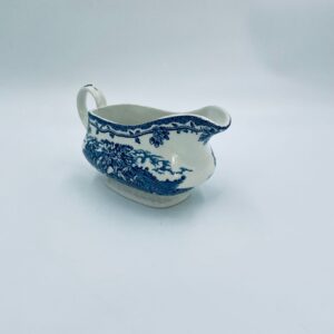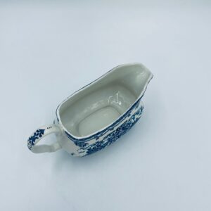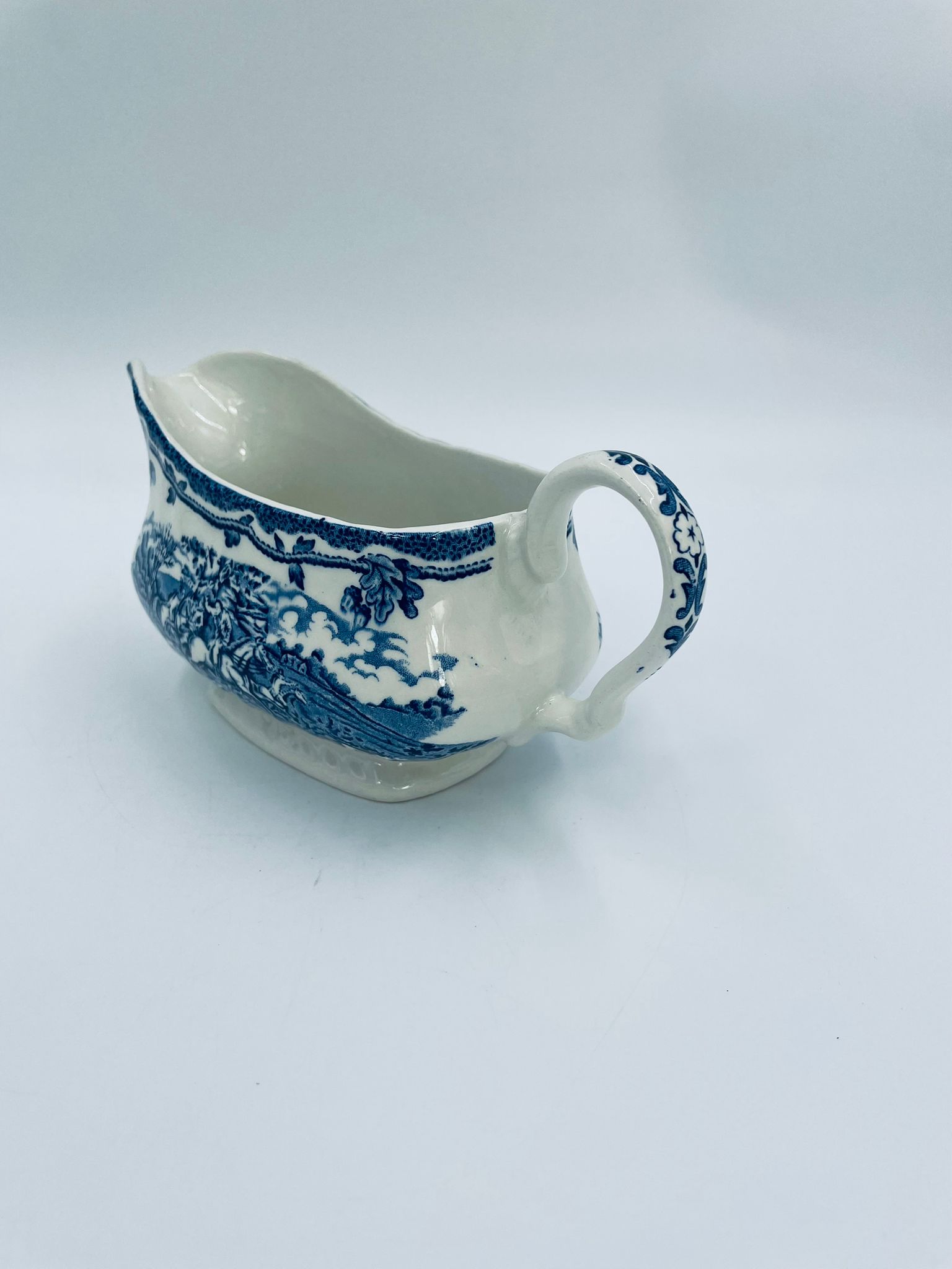 Sosjerka wytwórni Myotts Country Life, wykonana z wysokie jakości angielskiej porcelany. Sosjerka charakteryzuje się ręcznie grawerowanym, niebieskim wzorem „Country Life” życia na wsi oraz motywem myśliwskim. Posiada ozdoby uchwyt. Posiada uszczerbek oraz pęknięcie.