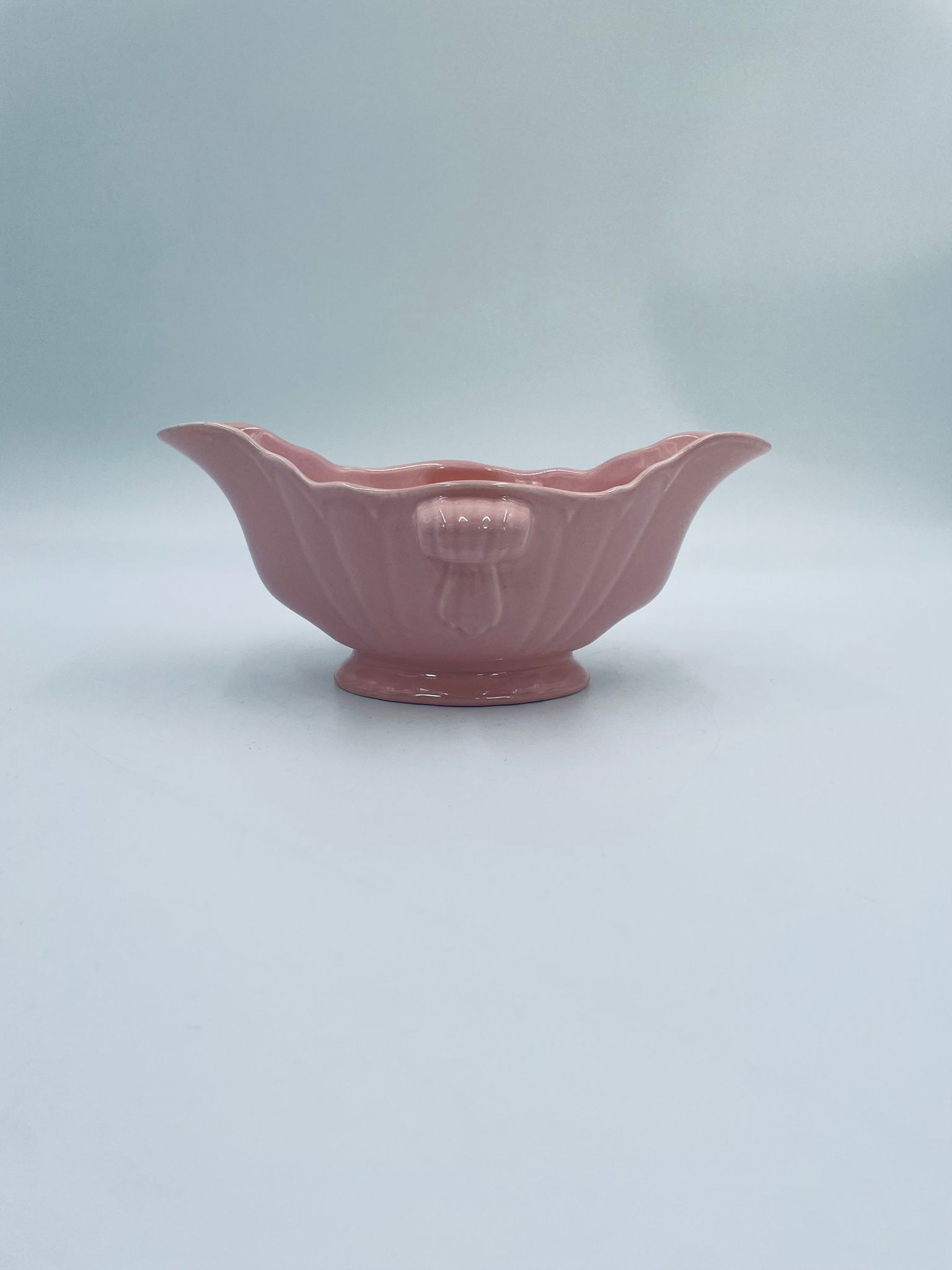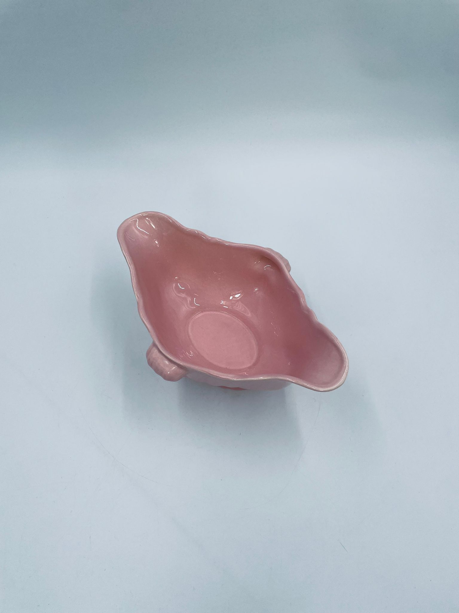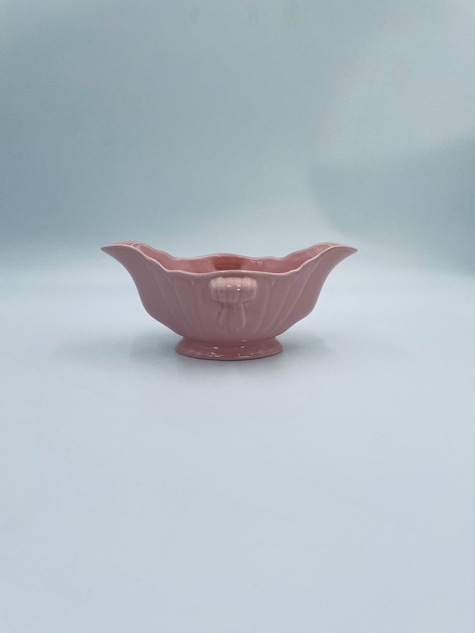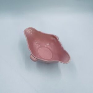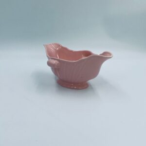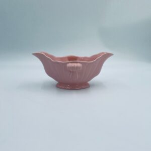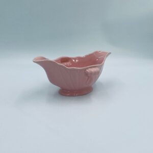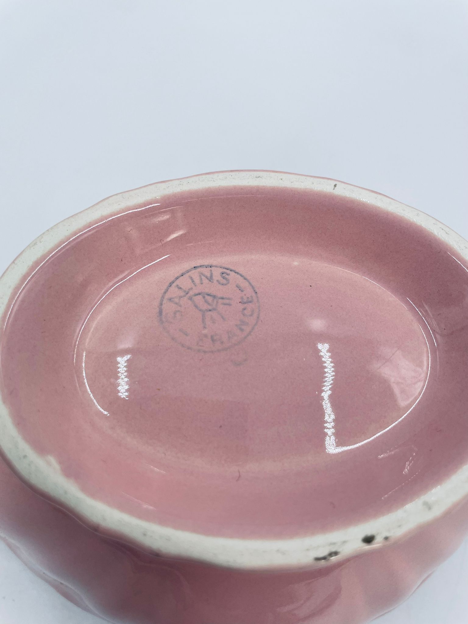 Sosjerka francuskiej manufaktury Salins Les Bains , wykonana z wysokiej jakości ceramiki. Sosjerka w kolorze pudrowego różu, charakteryzuje się żebrowaną fakturą i wytłoczonym wzorem przypominającym kokardę. Posiada delikatne przetarcie.
