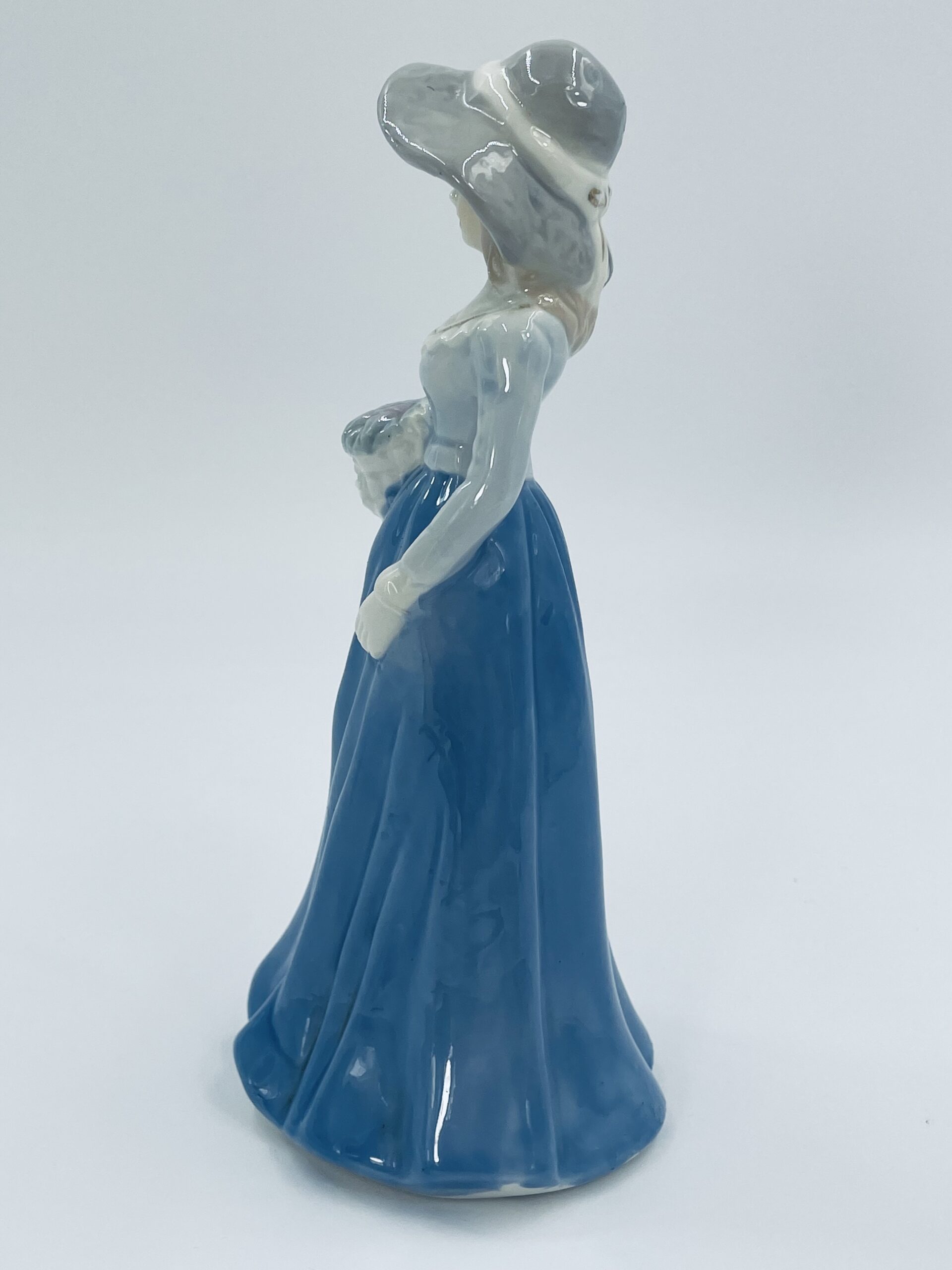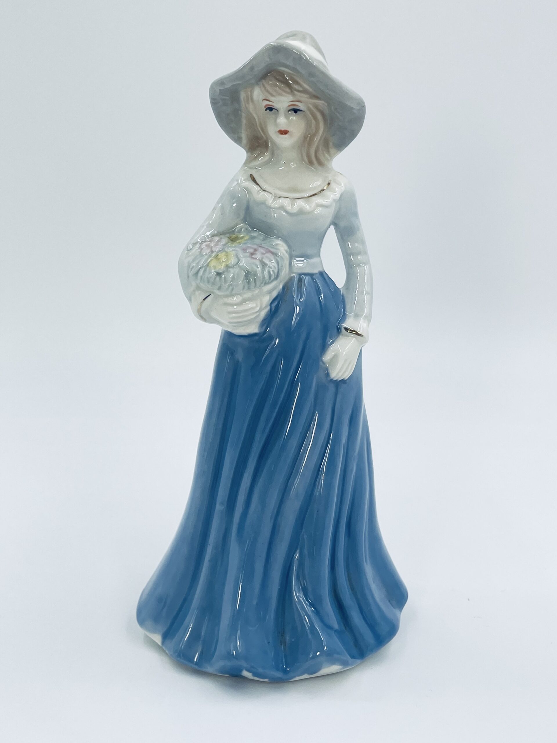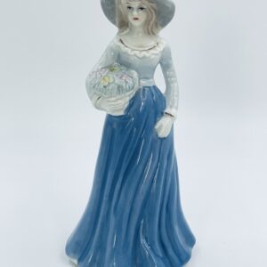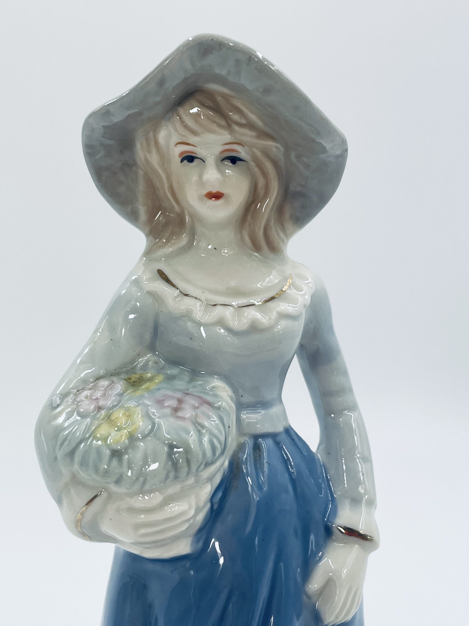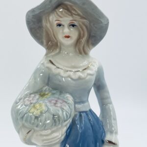 Stara porcelanowa figurka ekskluzywna w stylu Lladro, przedstawiająca dziewczynkę z koszem kwiatów.