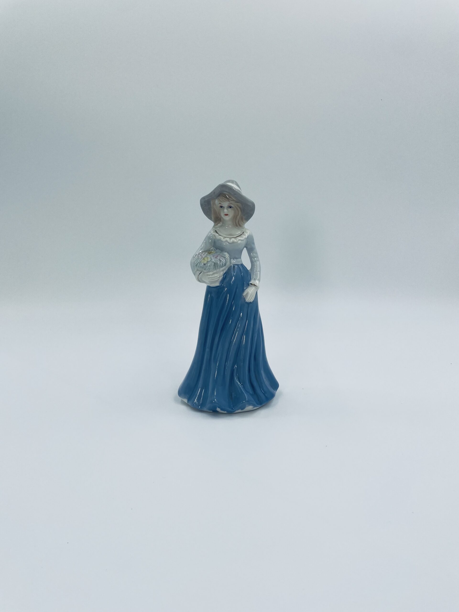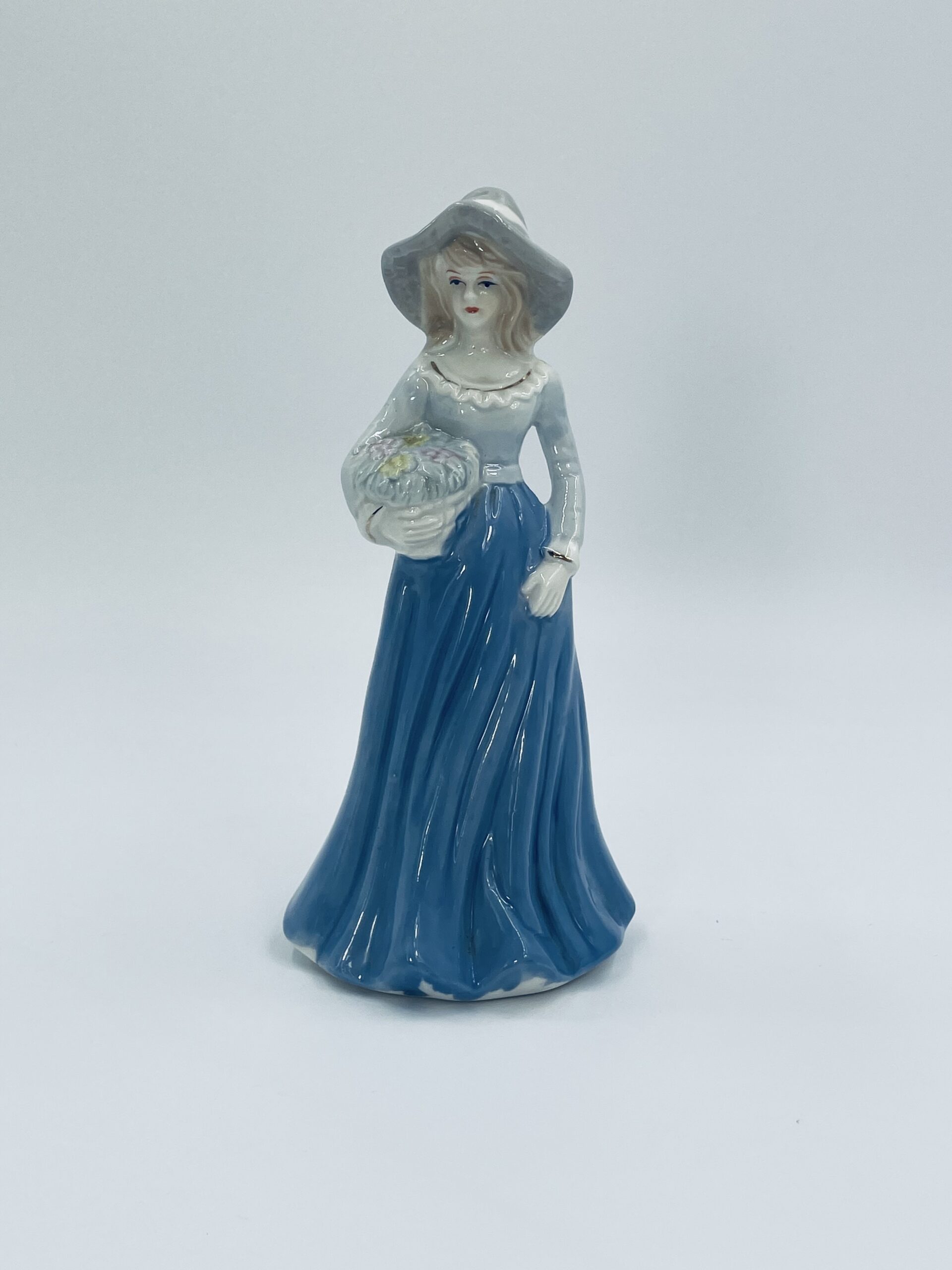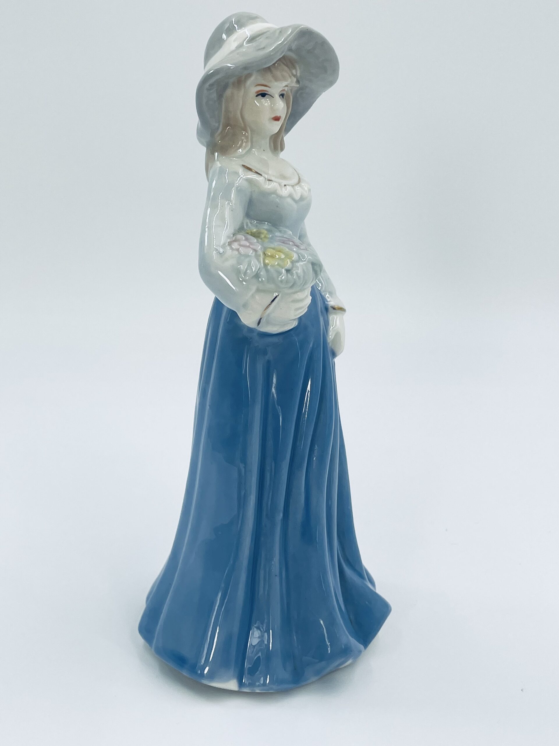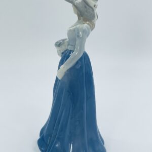 Stara porcelanowa figurka ekskluzywna w stylu Lladro, przedstawiająca dziewczynkę z koszem kwiatów.