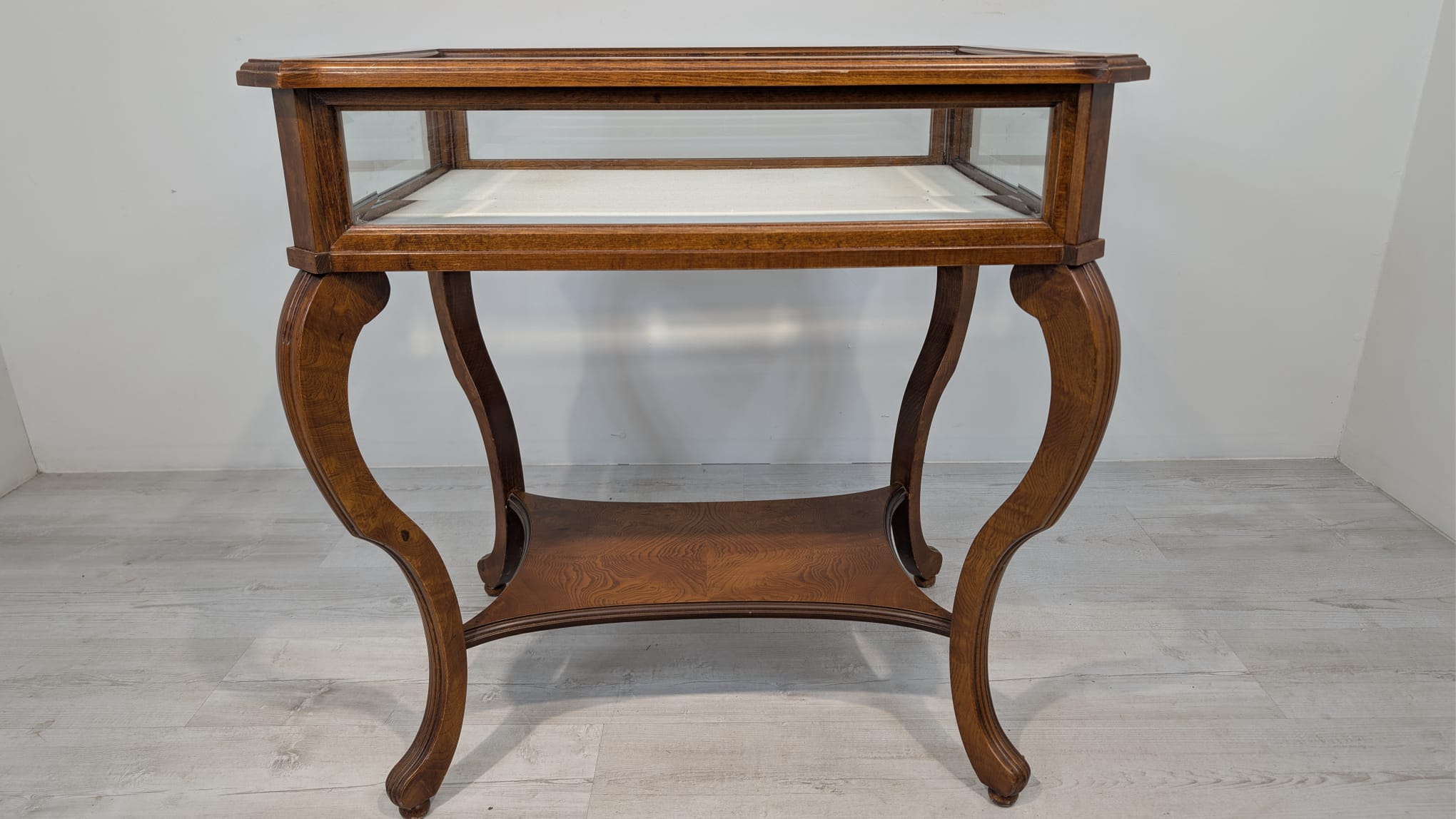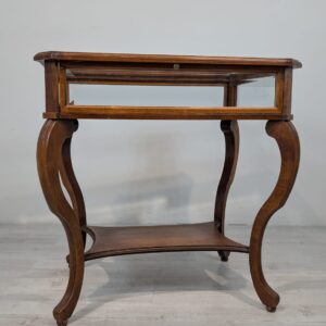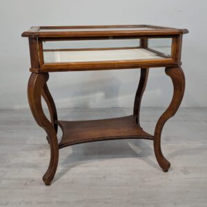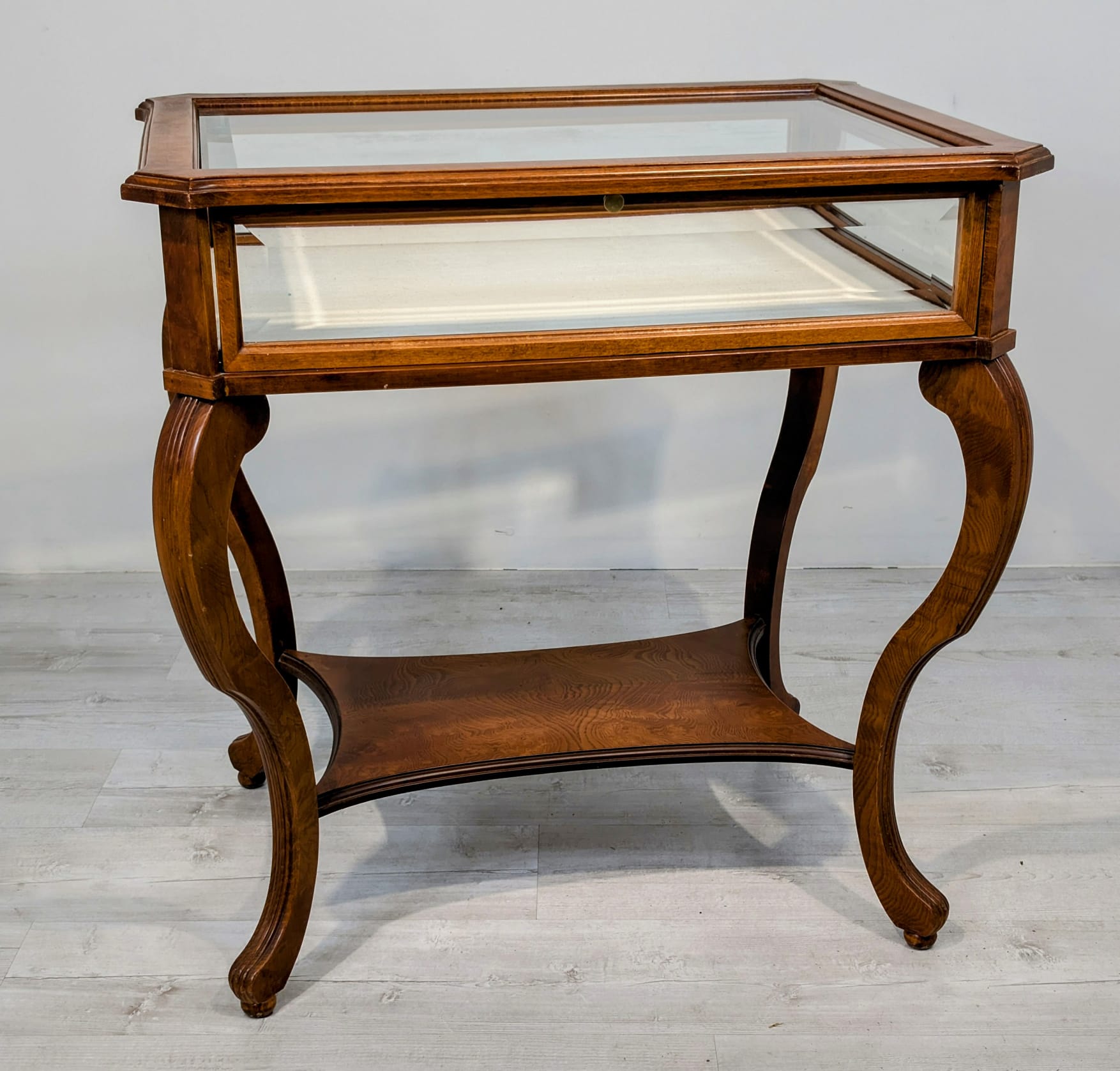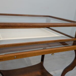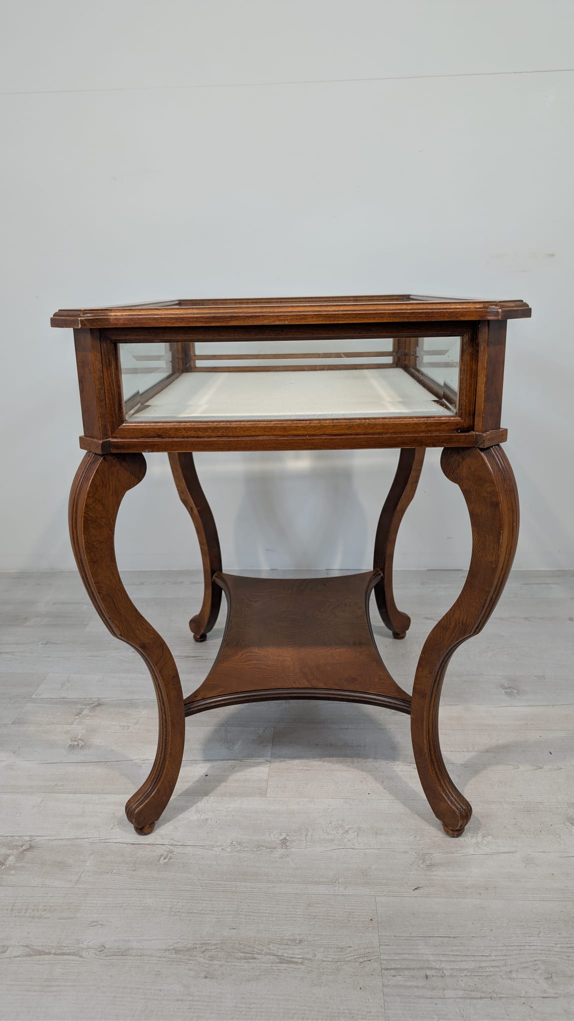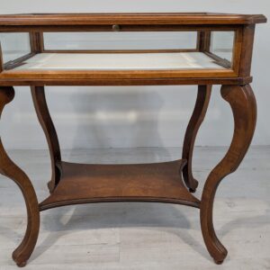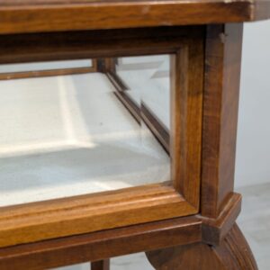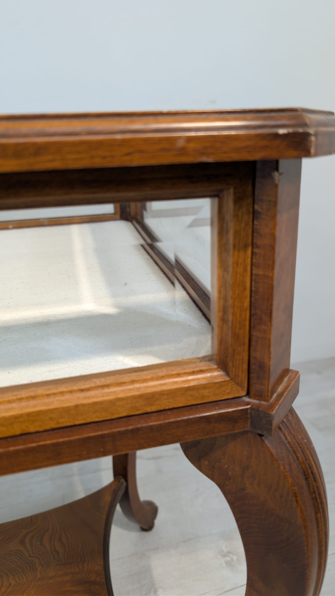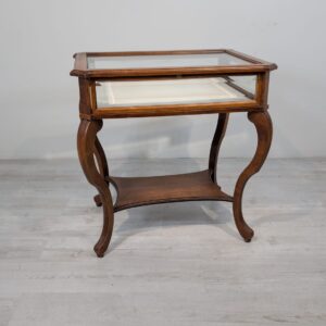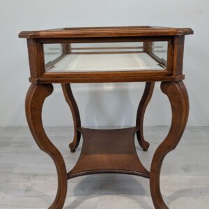 Table, walnut wood display case, Queen Anne bevelled glass