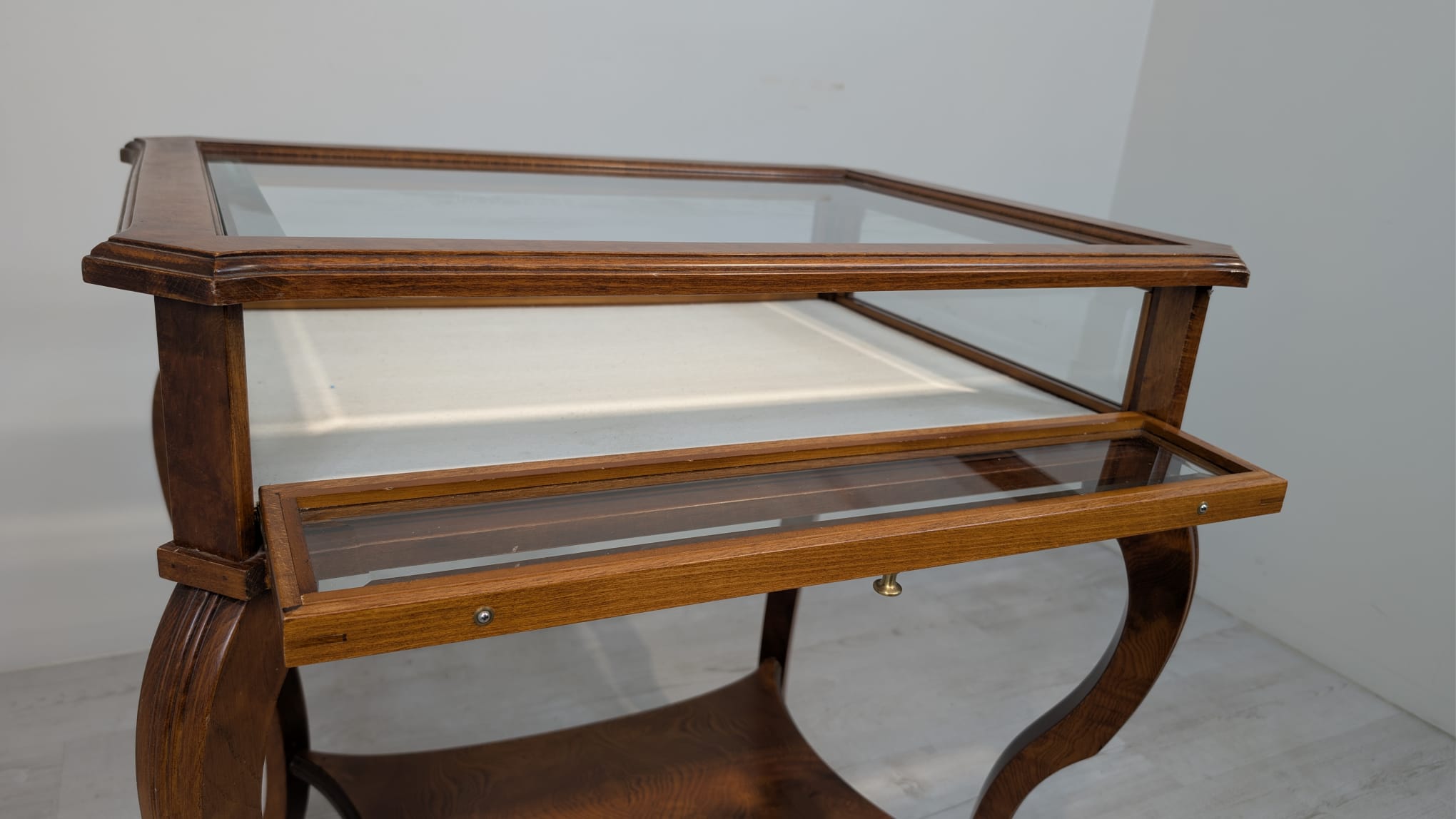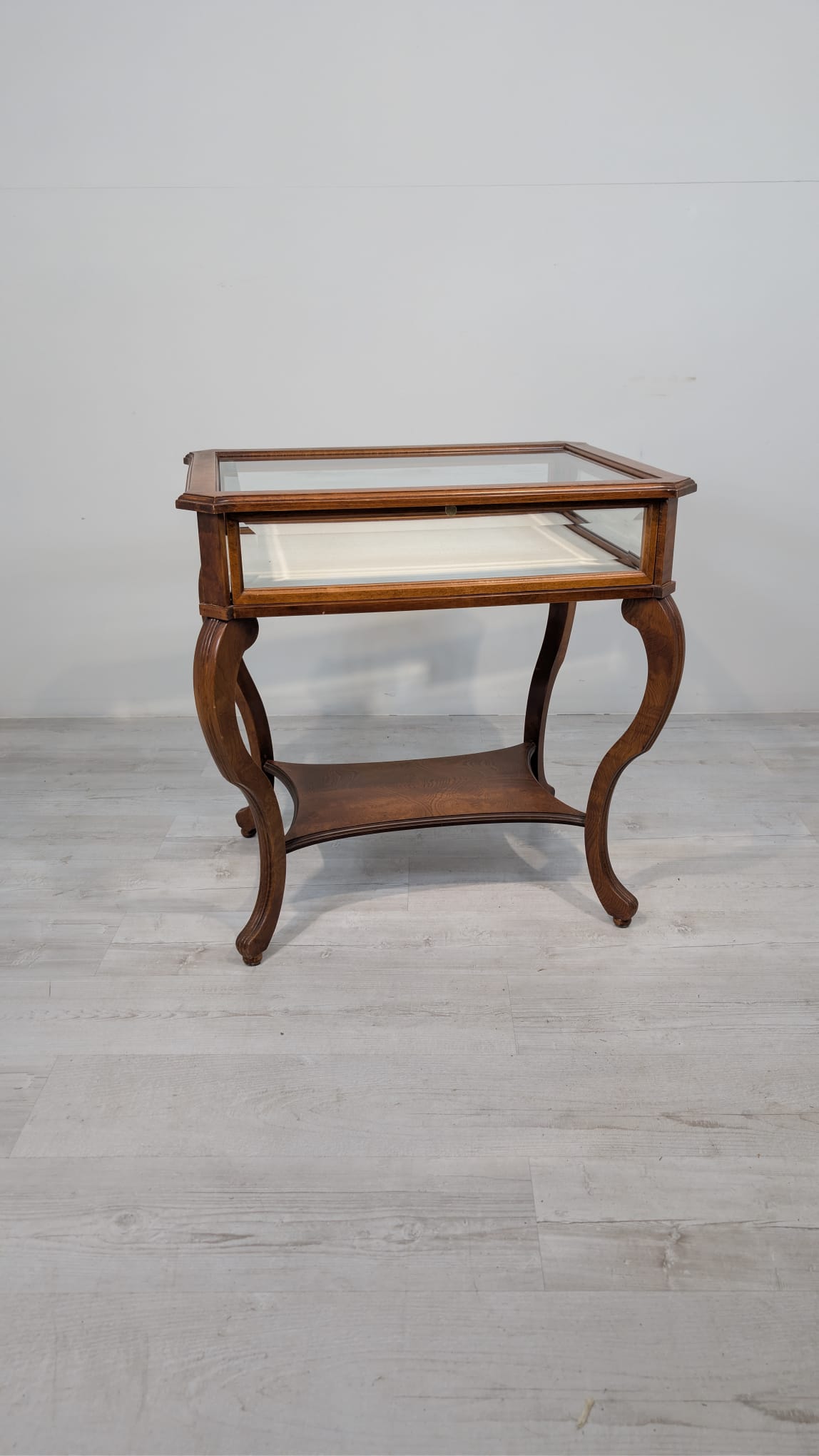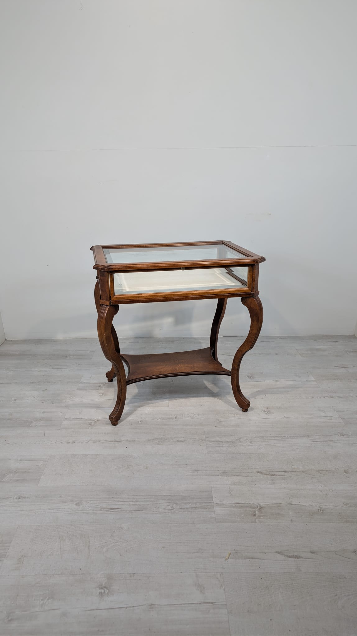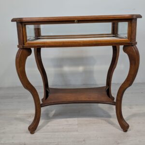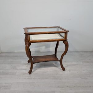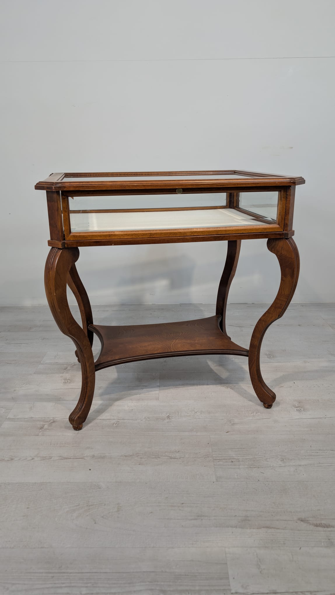 Table, walnut wood display case, Queen Anne bevelled glass
