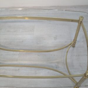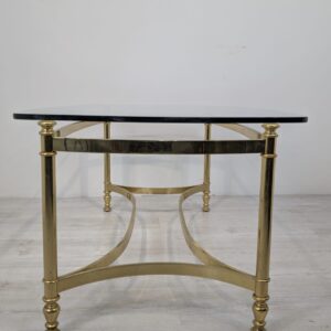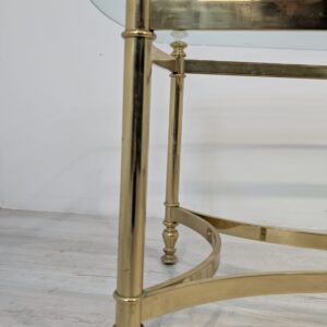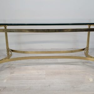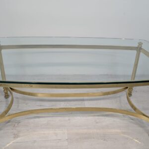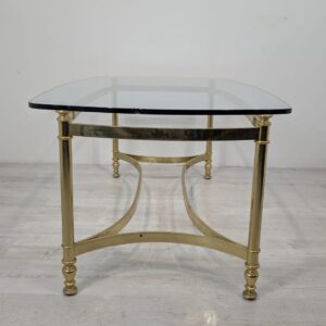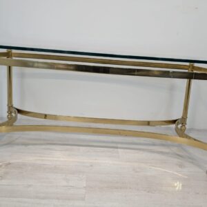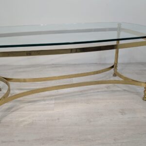 Stylowy stolik kawowy w stylu Hollywood Regency z lat 70. Wykonany z mosiądzu, z eleganckim blatem szklanym. Idealny do uzupełnienia aranżacji w stylu retro.