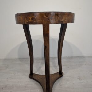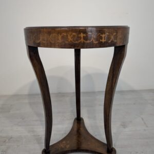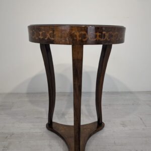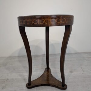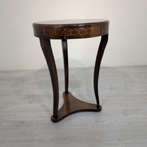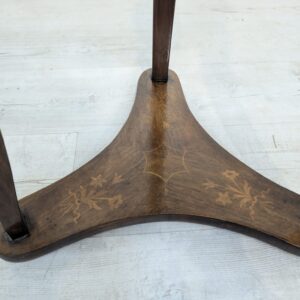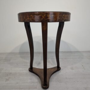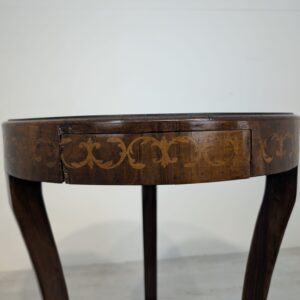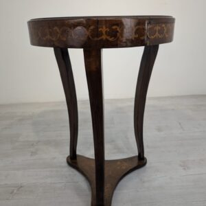 Stylowy stolik kawowy w stylu Ludwika XVI, wykonany we Włoszech w latach 70. XX wieku. Mebel posiada ozdobne, rzeźbione nogi oraz fornirowaną, ciemną powierzchnię blatu. Stolik jest w stanie używanym, ale zachował swój elegancki wygląd.