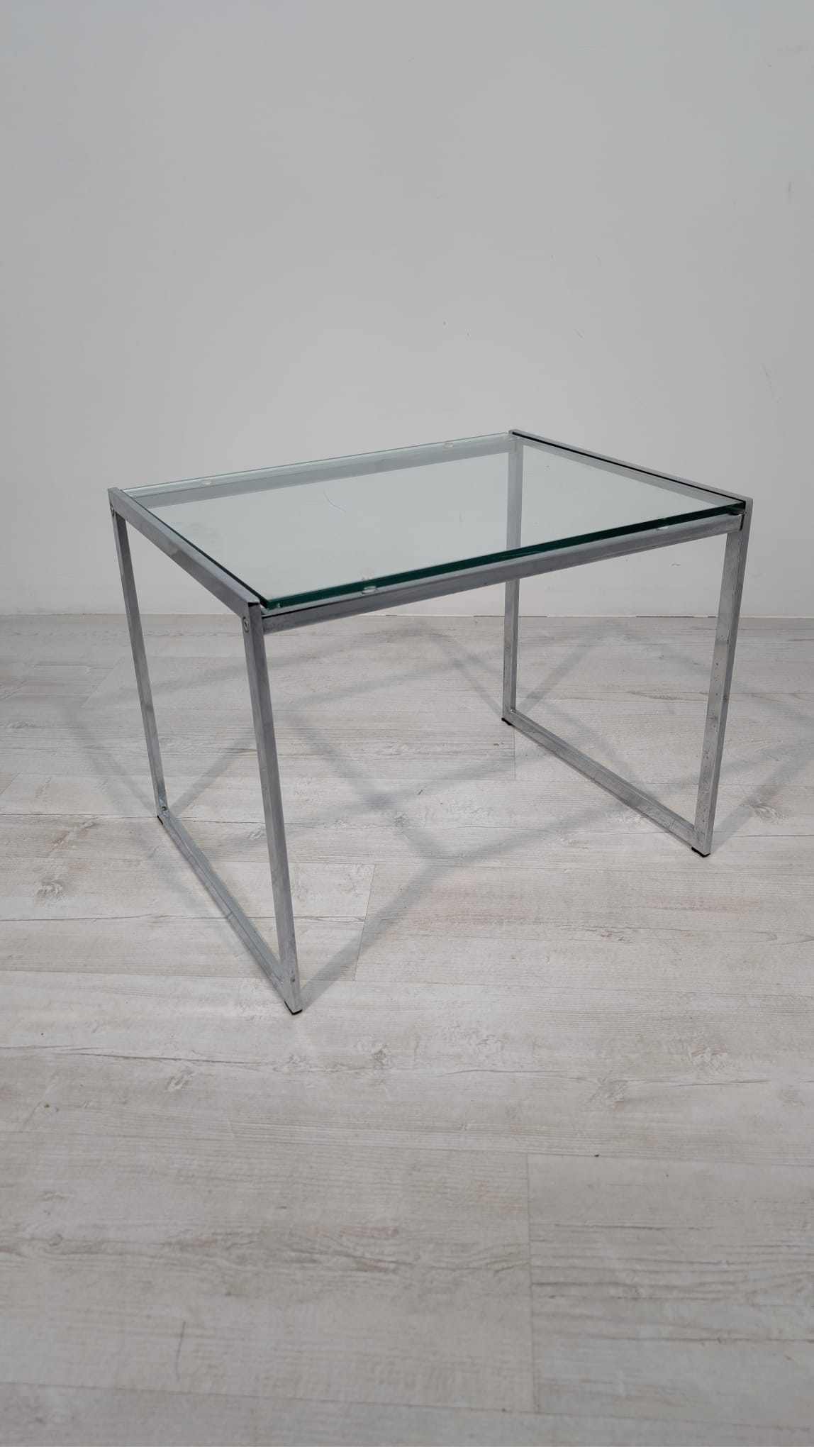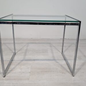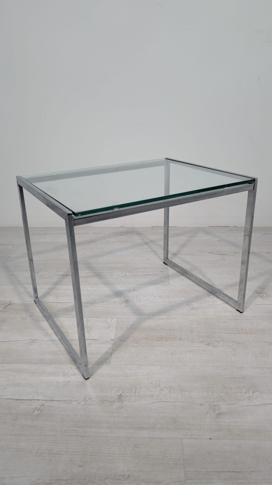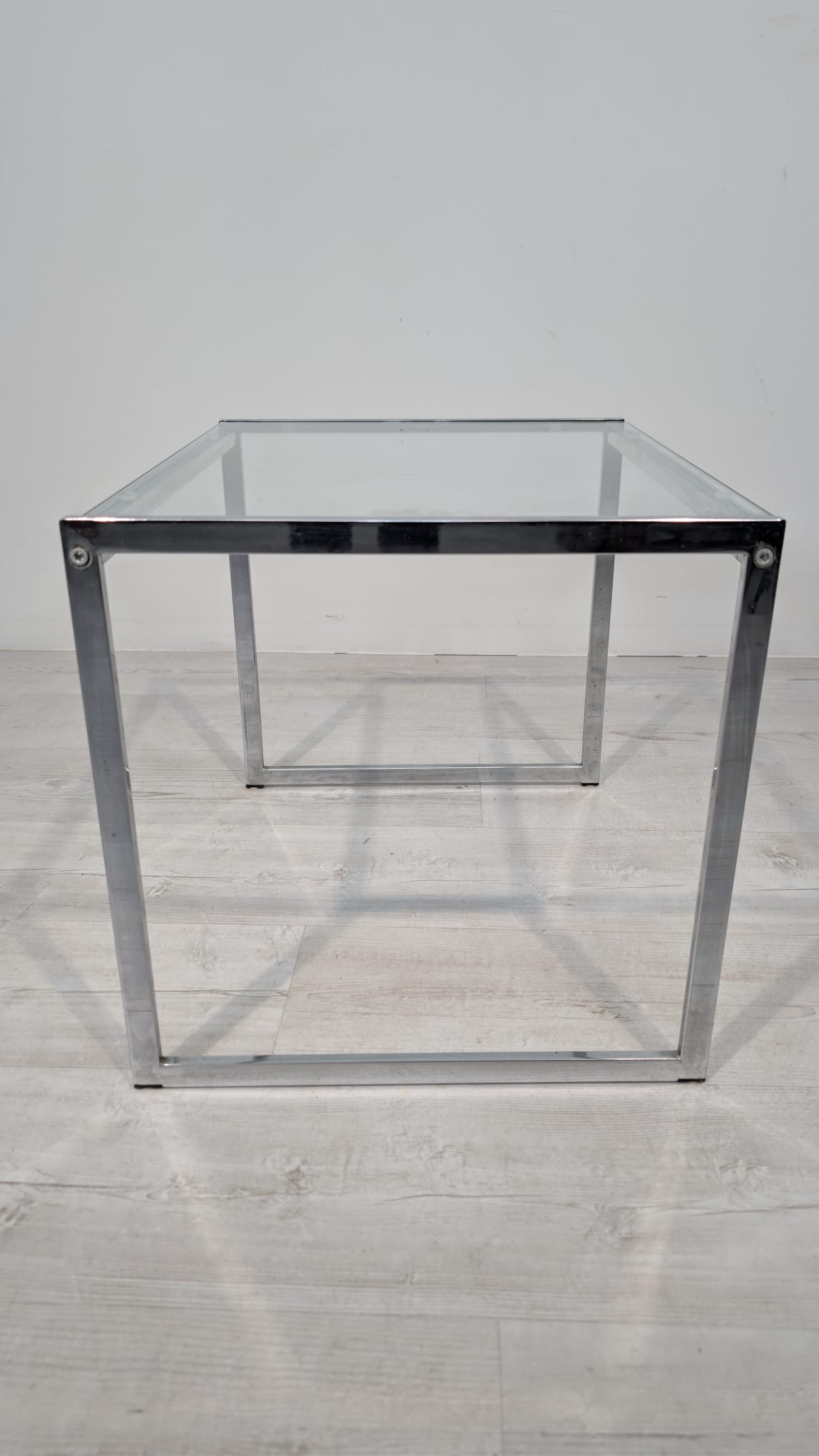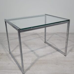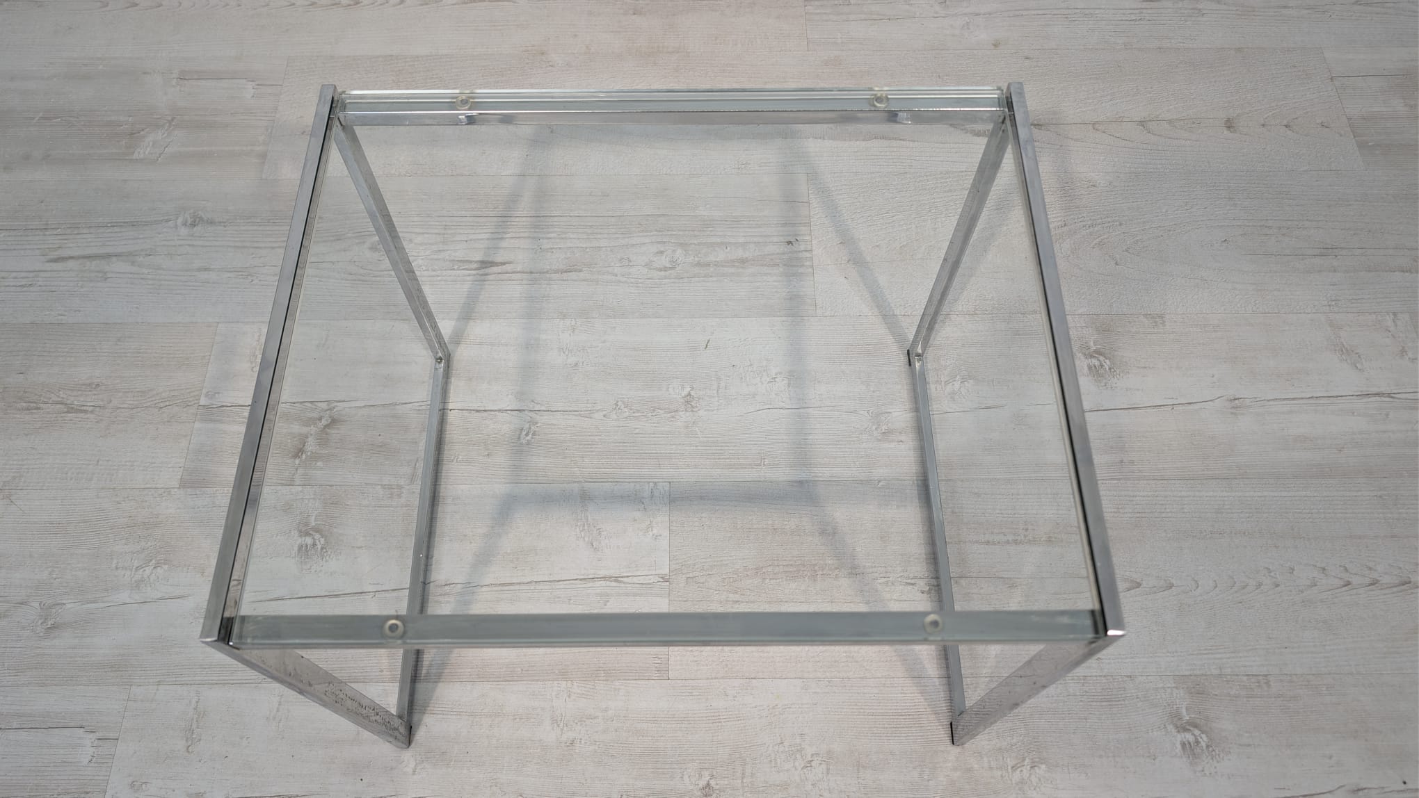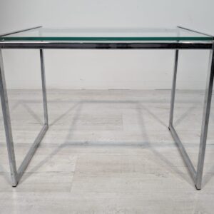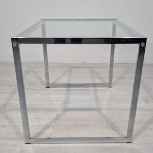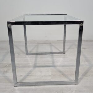 Stolik, stolik kawowy minimalistyczny niklowany z grubą szybą