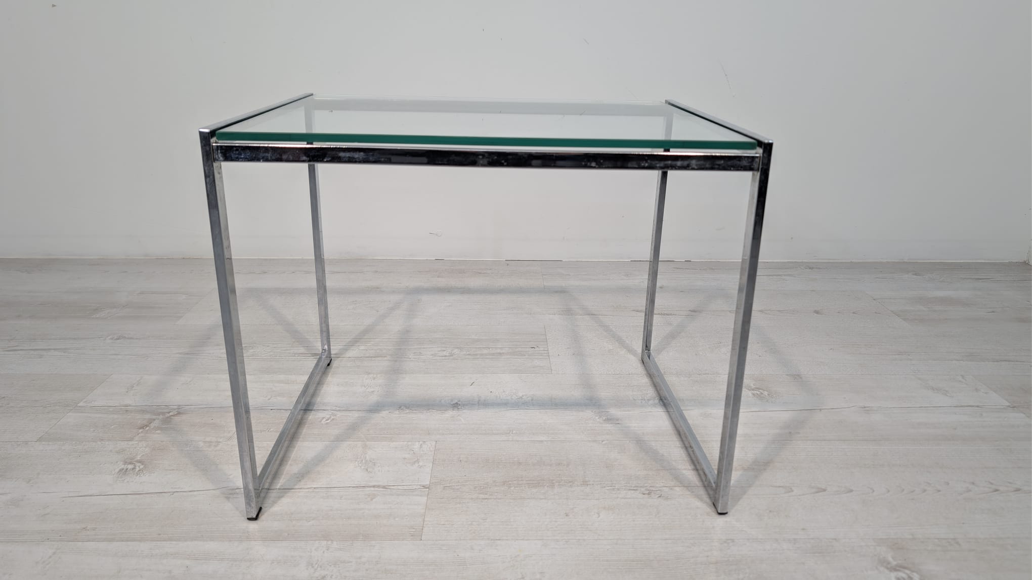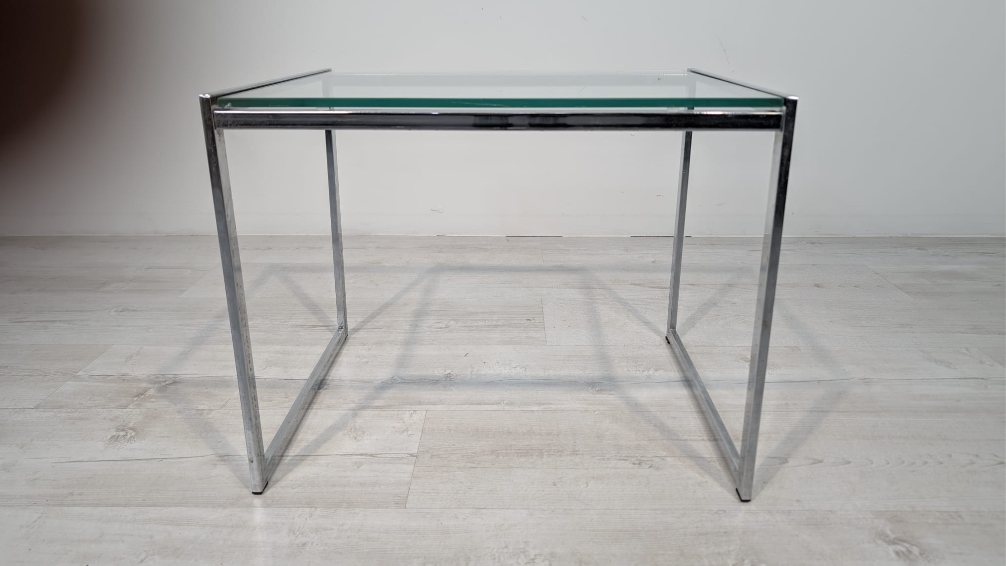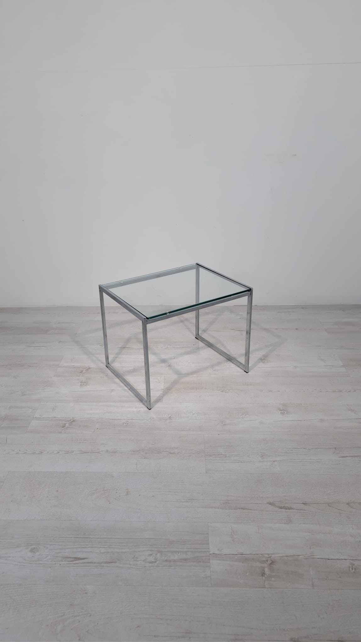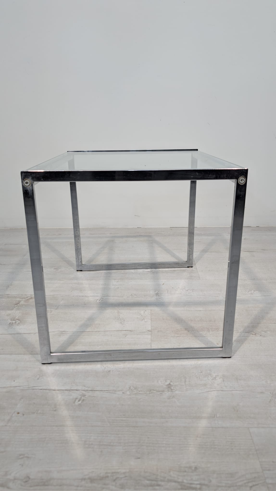 Stolik, stolik kawowy minimalistyczny niklowany z grubą szybą