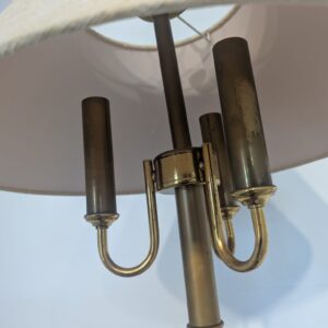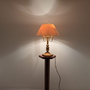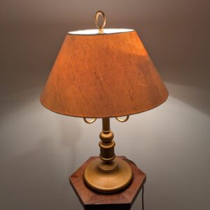 Stylowy, vintage mosiądzowany kinkiet stołowy. Lampa ma piękną, zabytkową stylistykę i będzie doskonałym dodatkiem do każdego wnętrza. Produkt używany, ale w dobrym stanie technicznym. Idealny do uzupełnienia aranżacji w stylu retro.