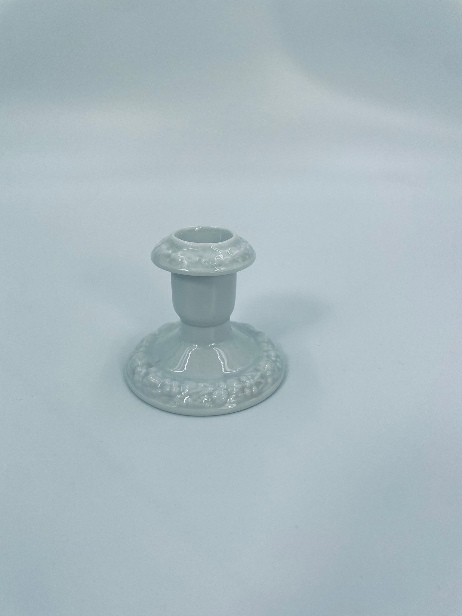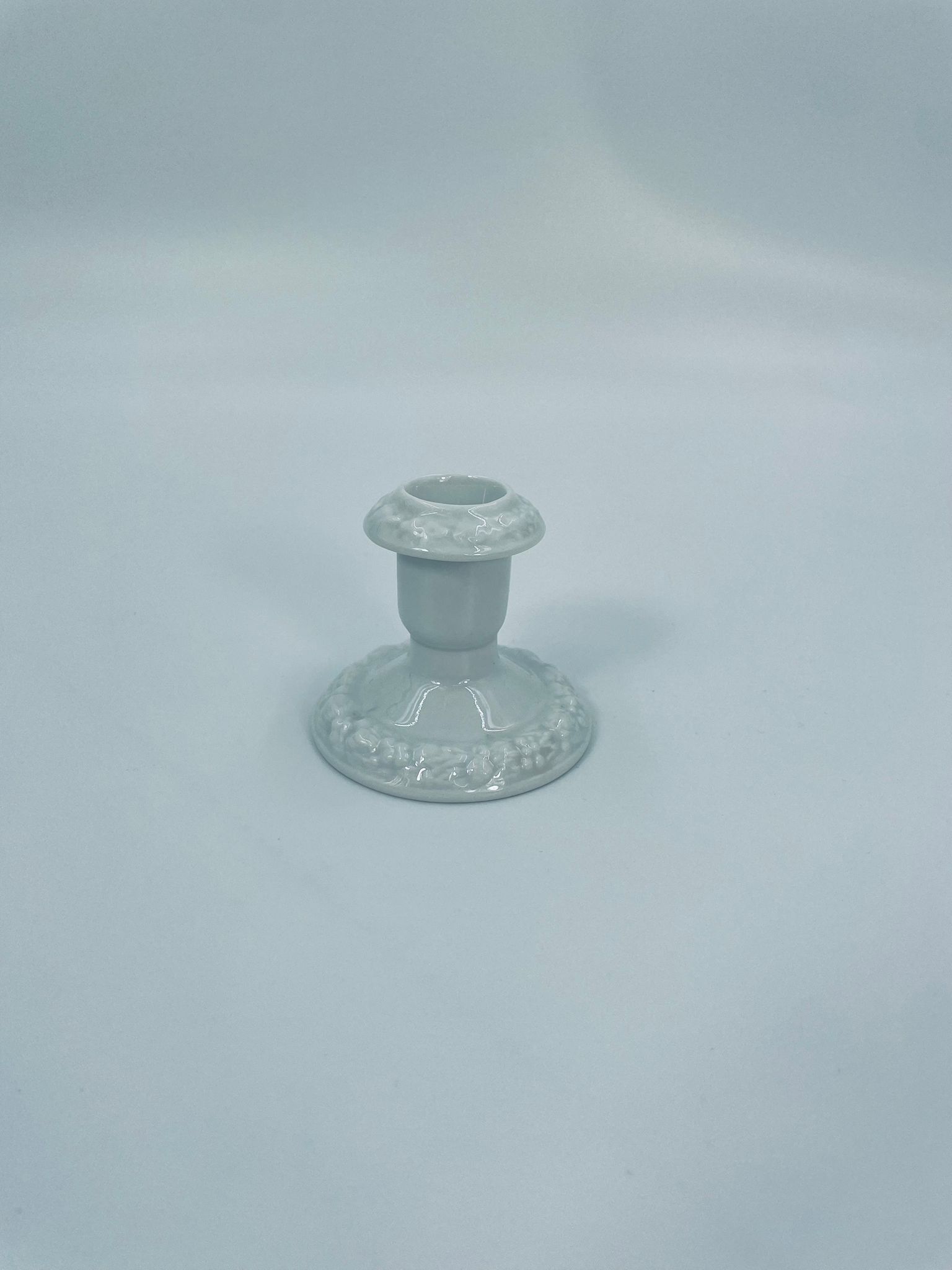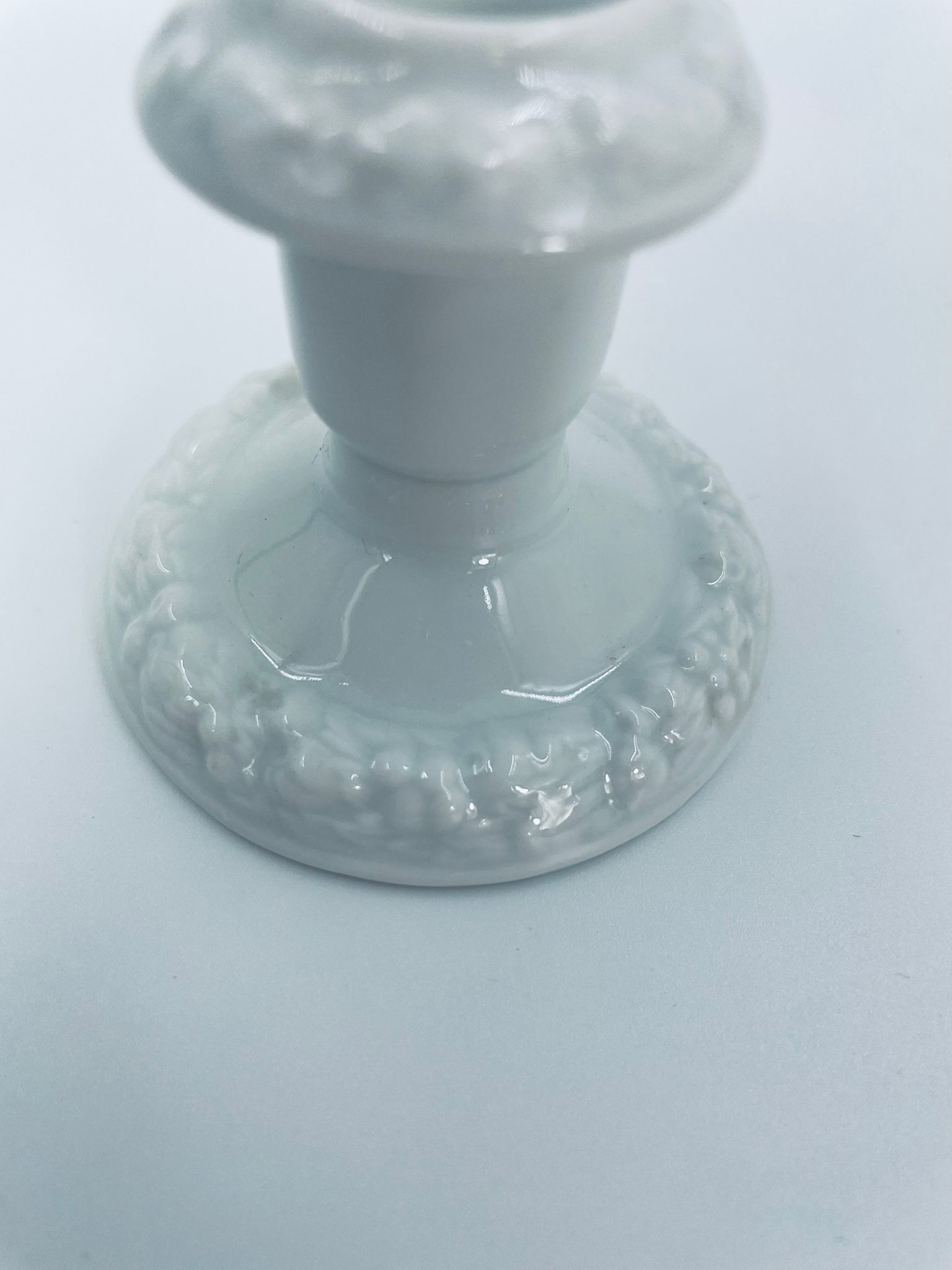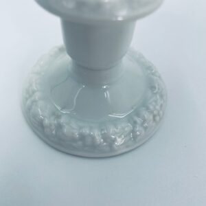 Świecznik renomowanej wytwórni Rosenthal, z kolekcji Biała Maria zaprojektowanym przez Philipa Rosenthala w 1916r, wykonany z najwyższej jakości białej porcelany. Świecznik elegancki, klasyczny, zdobiony subtelnym wzorem owoców granatu i liści na obrzeżach.