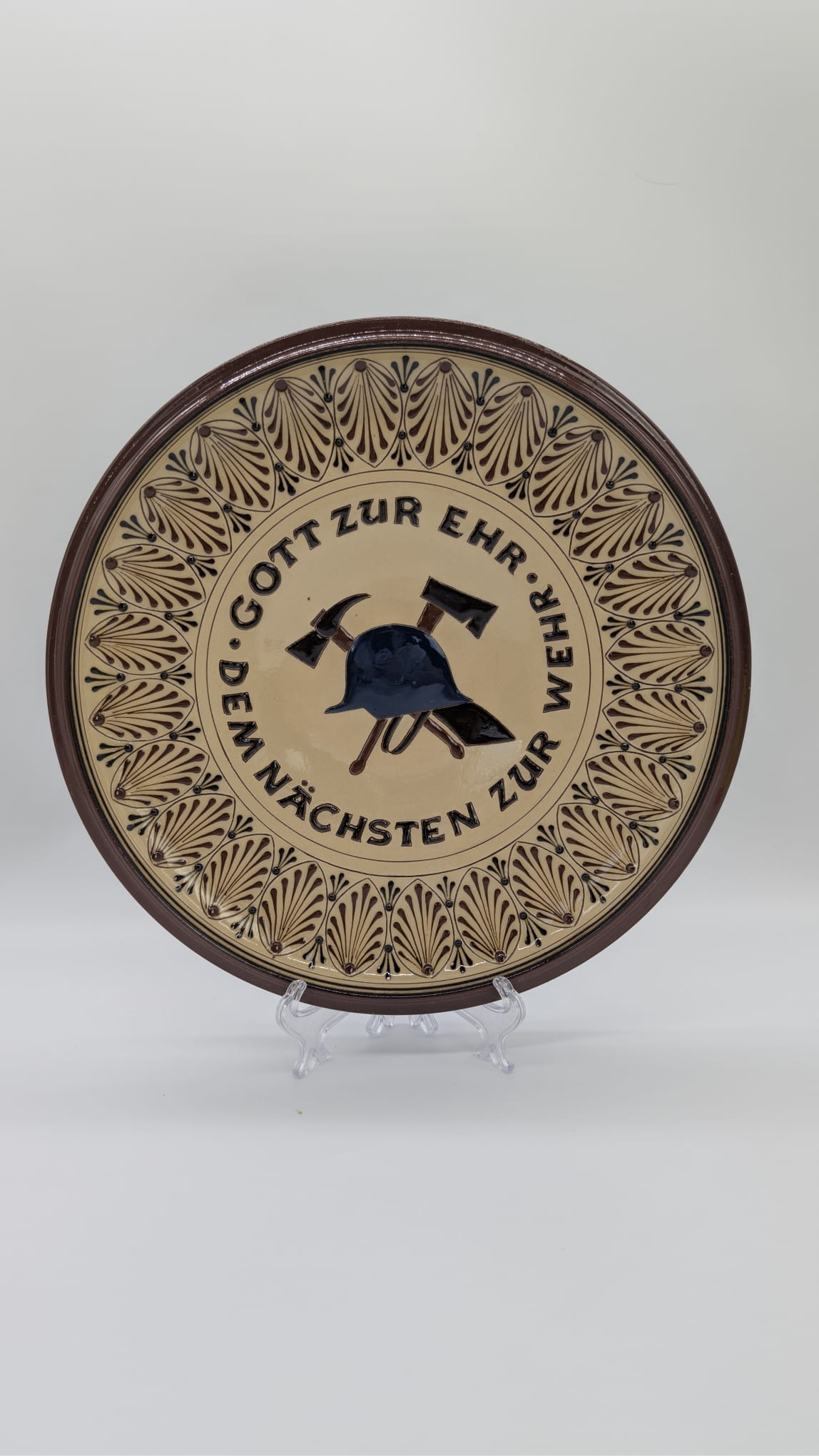 Ceramic plate with fire brigade emblem A-9 from 1900-1920