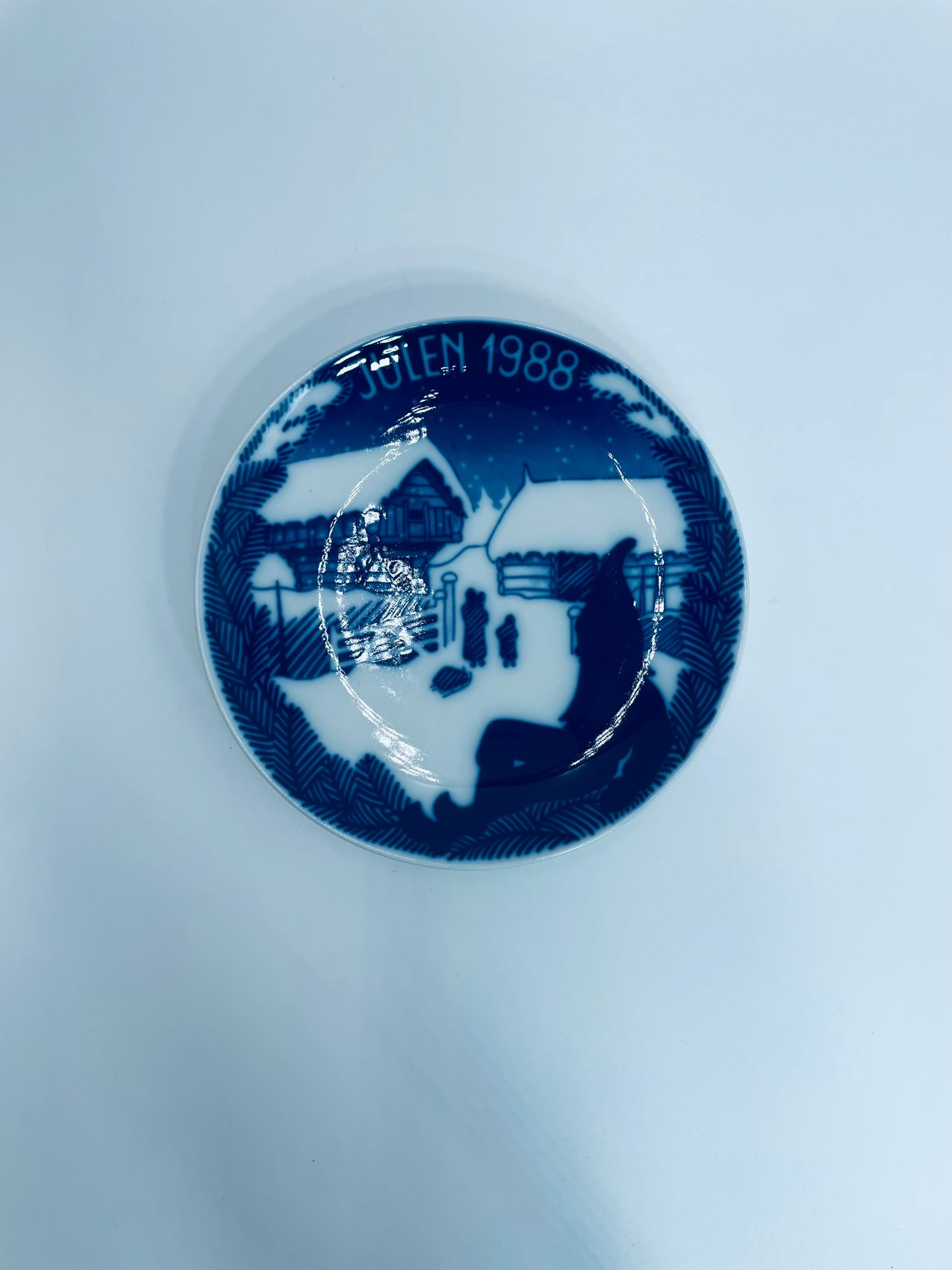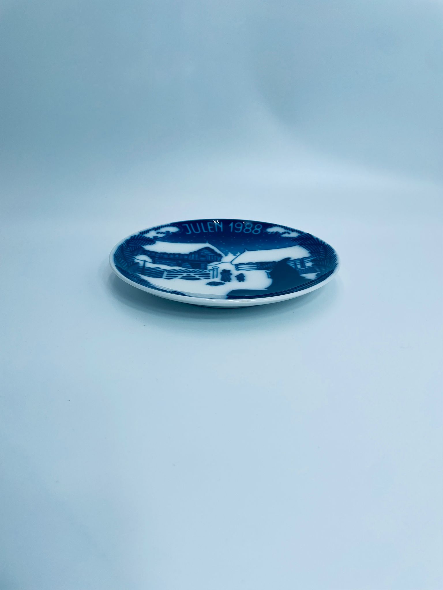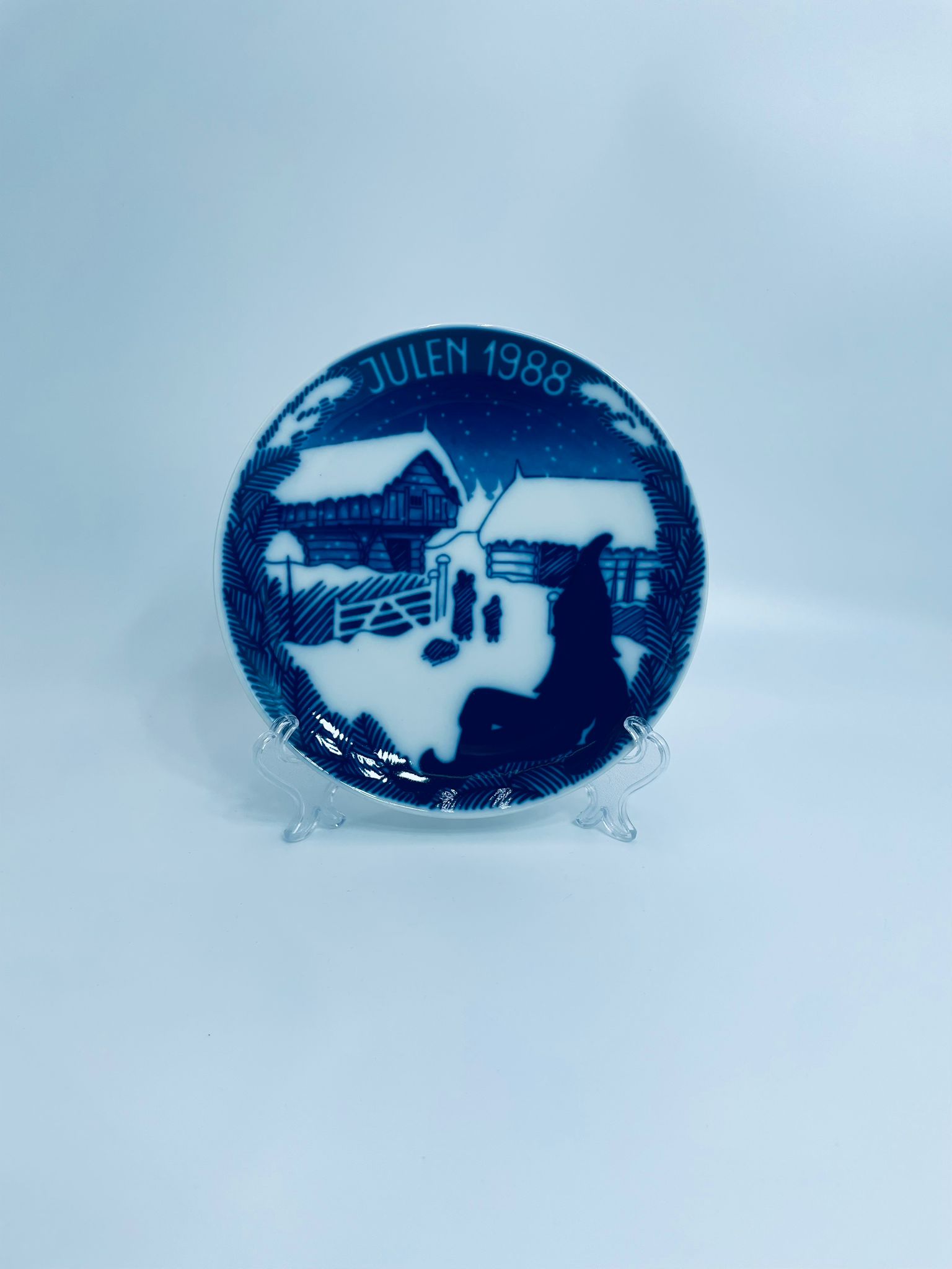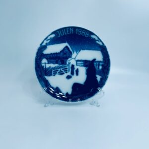 Talerz dekoracyjny Porsgrund 1988r. zaprojektowany jest przez Gunnera Bratliego. Talerz porcelanowy, w kolorze biało granatowym przedstawiający zimową scene z zabudowaniami gospodarskimi, matką z dwójką dzieci. Talerz charakterystyczny dla Norweskiej tradycji.