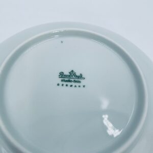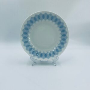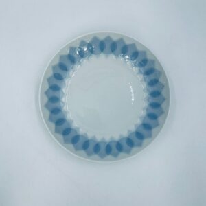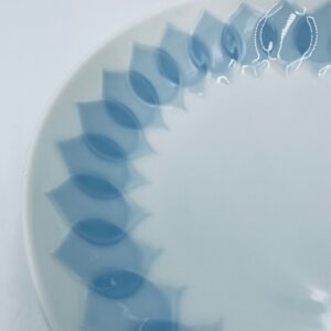 Talerz obiadowy głęboki renomowanej wytwórni Rosenthal Studio Line z serii Lotus Blau , zaprojektowany przez duńskiego artystę Bjorna Wiinblada w 1964r, wykonany z najwyższej jakości białej porcelany. Talerz ozdobiony wzorem „Blau” z delikatnym, geometrycznym motywem przypominający liście lotosu w niebieskim odcieniu.