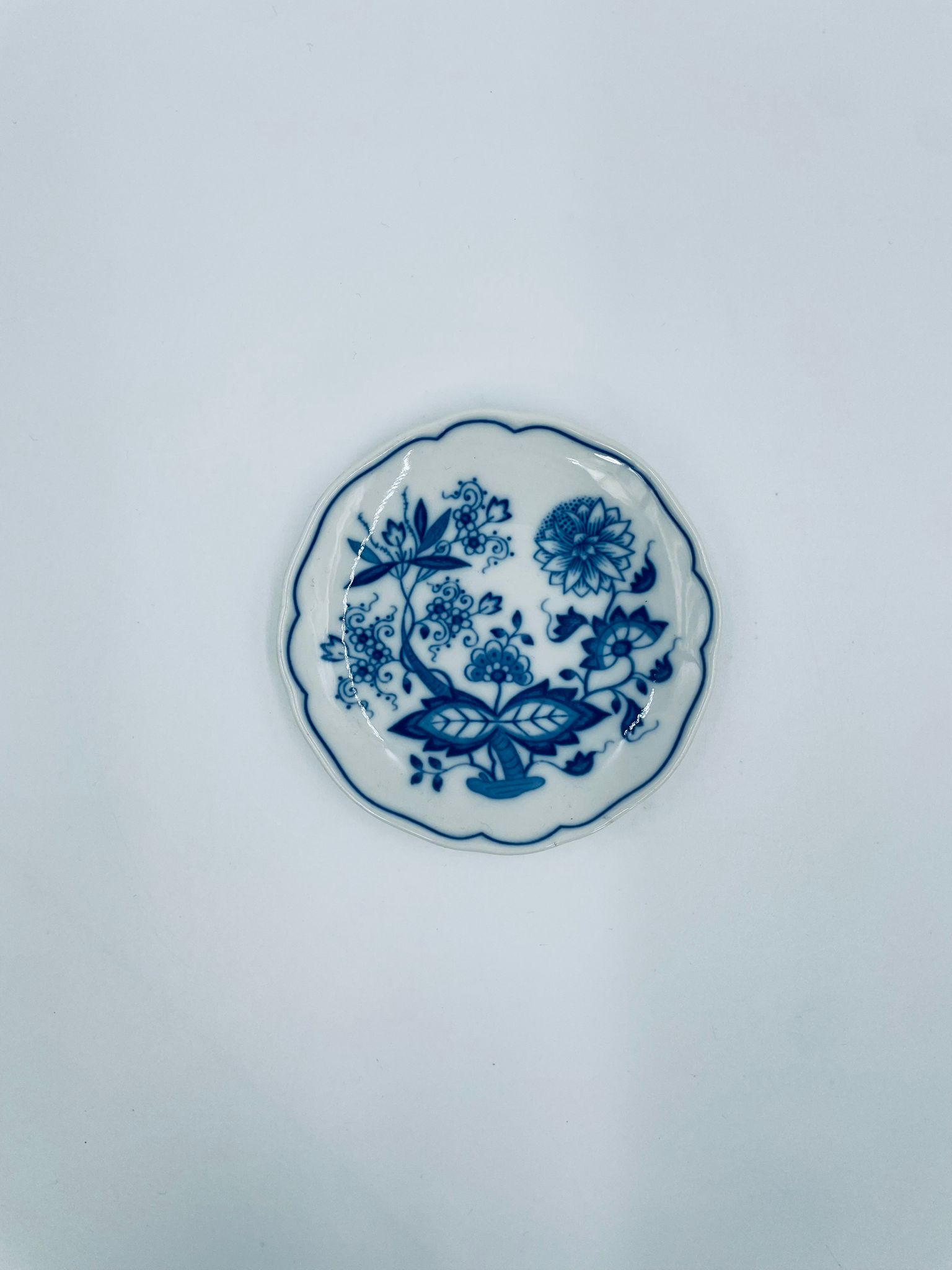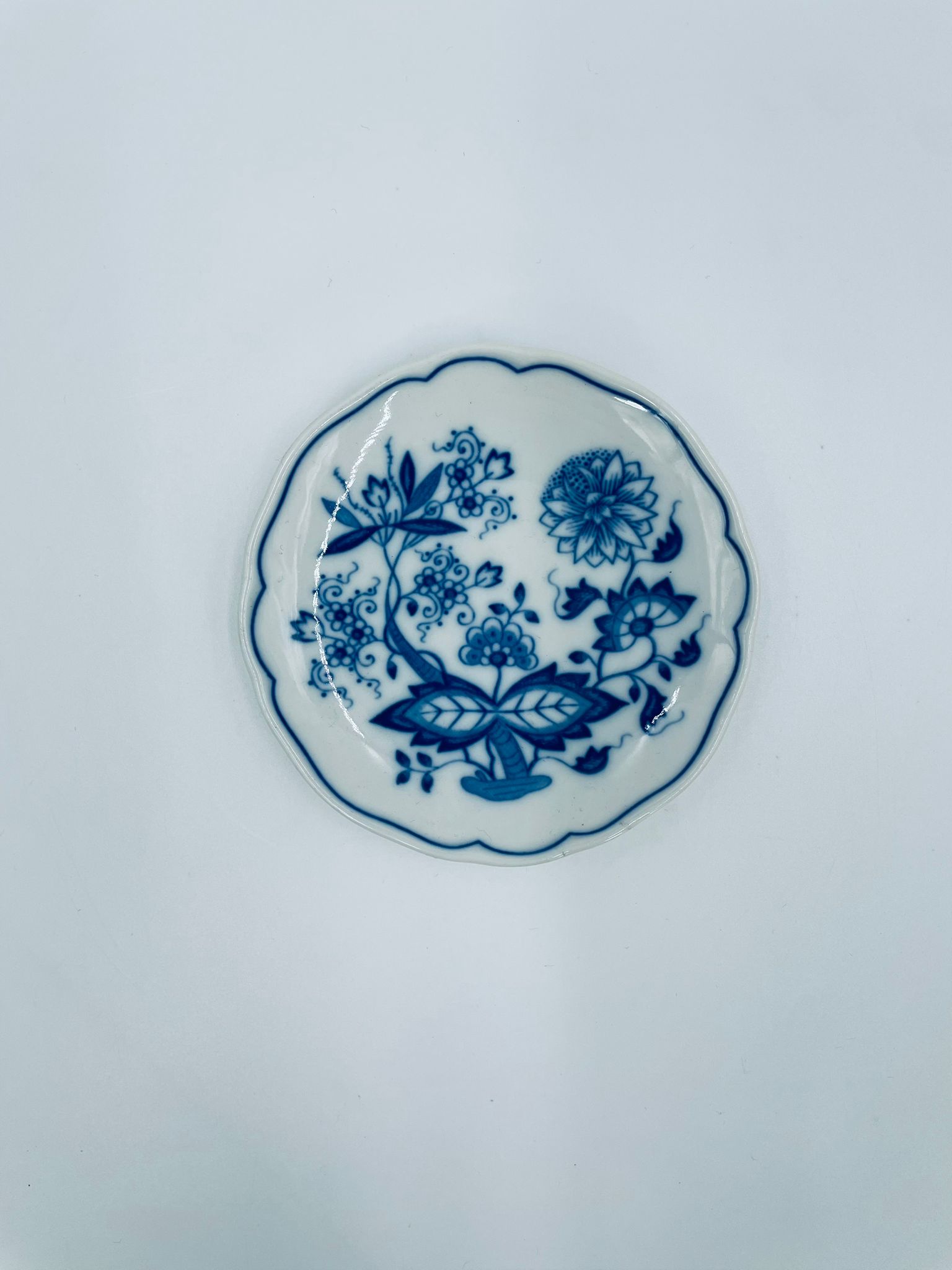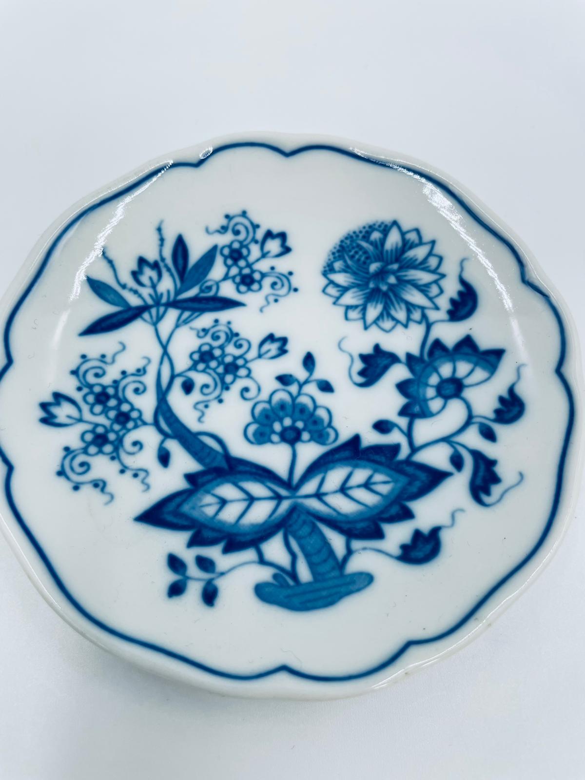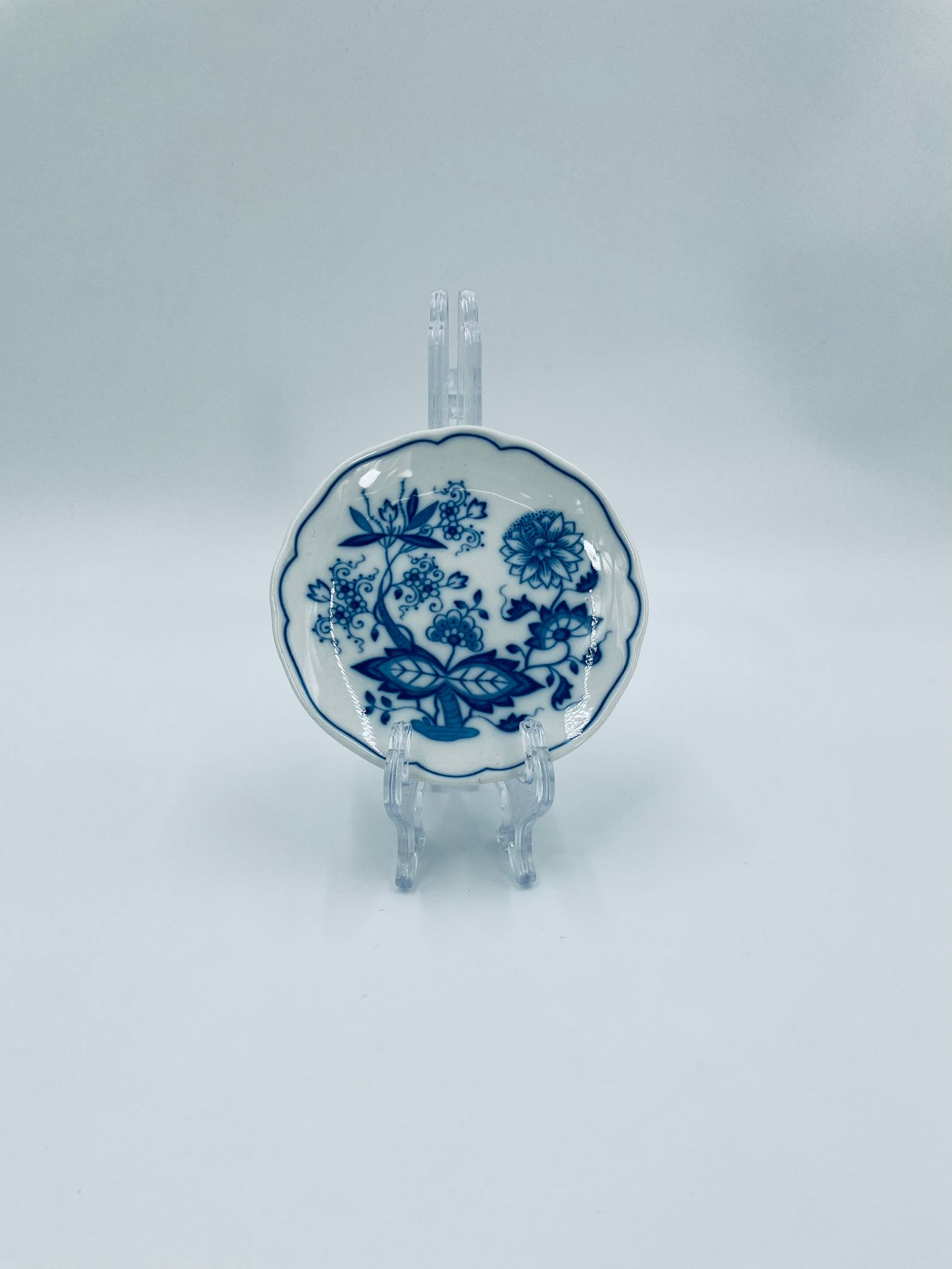 Talerzyk dekoracyjny wytwórni Hutschenreuther, wykonany z wysokiej jakości białej porcelany. Talerzyk charakteryzuje się delikatnie falistą krawędzią oraz niebieskim wzorem cebulowym w motywie roślinnym.