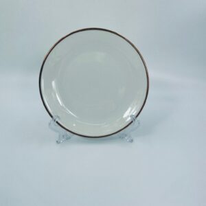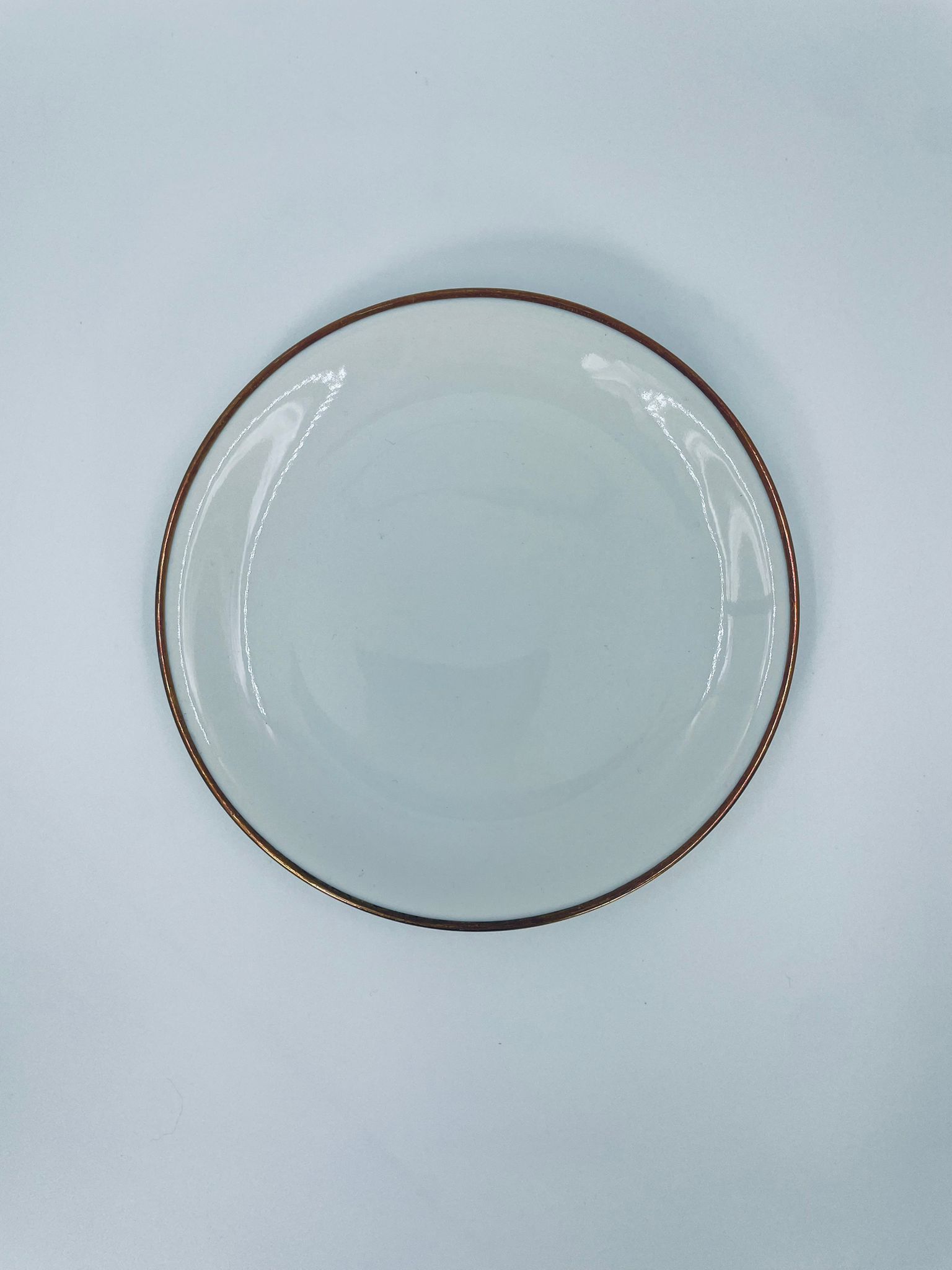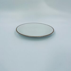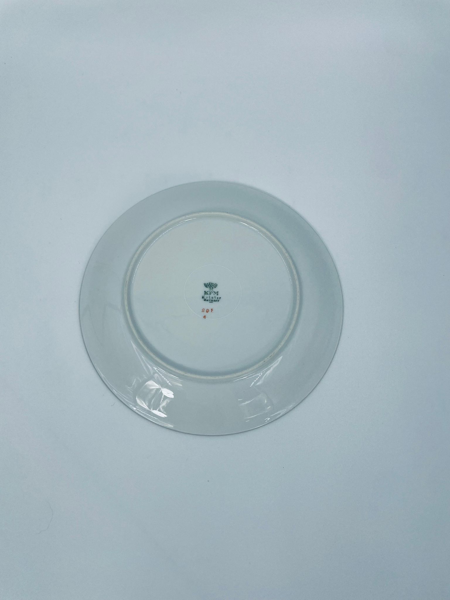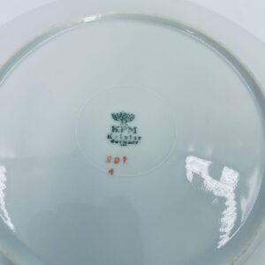 Talerzyk deserowy wytwórni KPM Krister, wykonany z wysokiej jakości białej porcelany. Talerz elegancki, klasyczny, wykończony złoceniem na rancie. Posiada małe przetarcie na złoceniu.