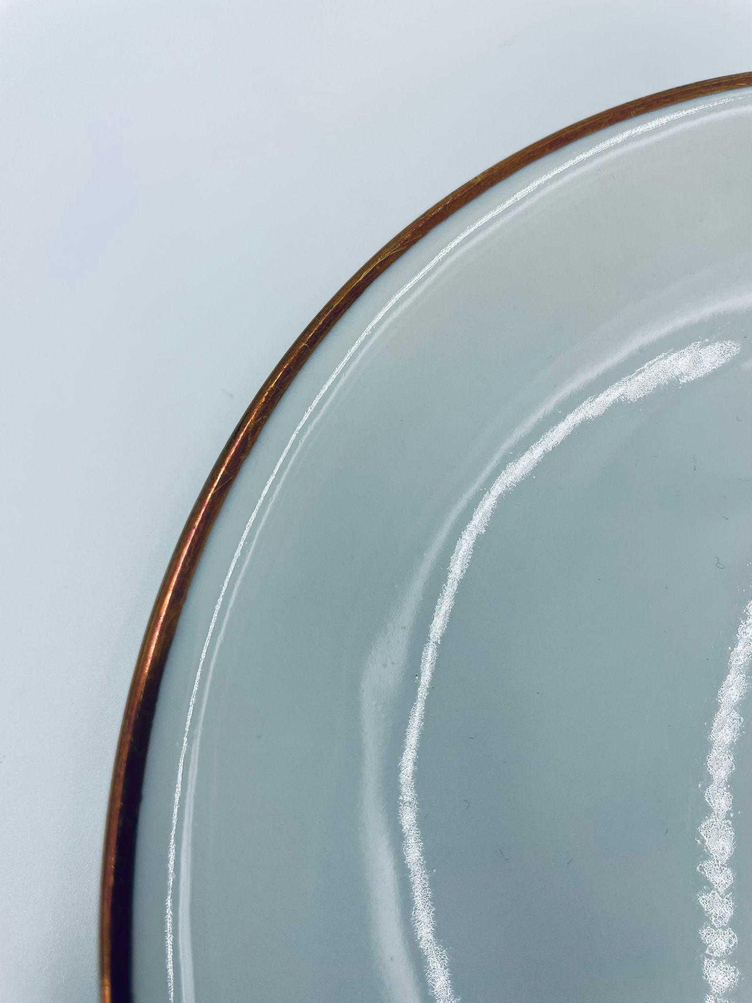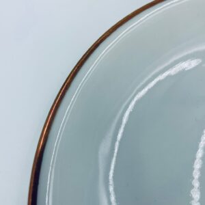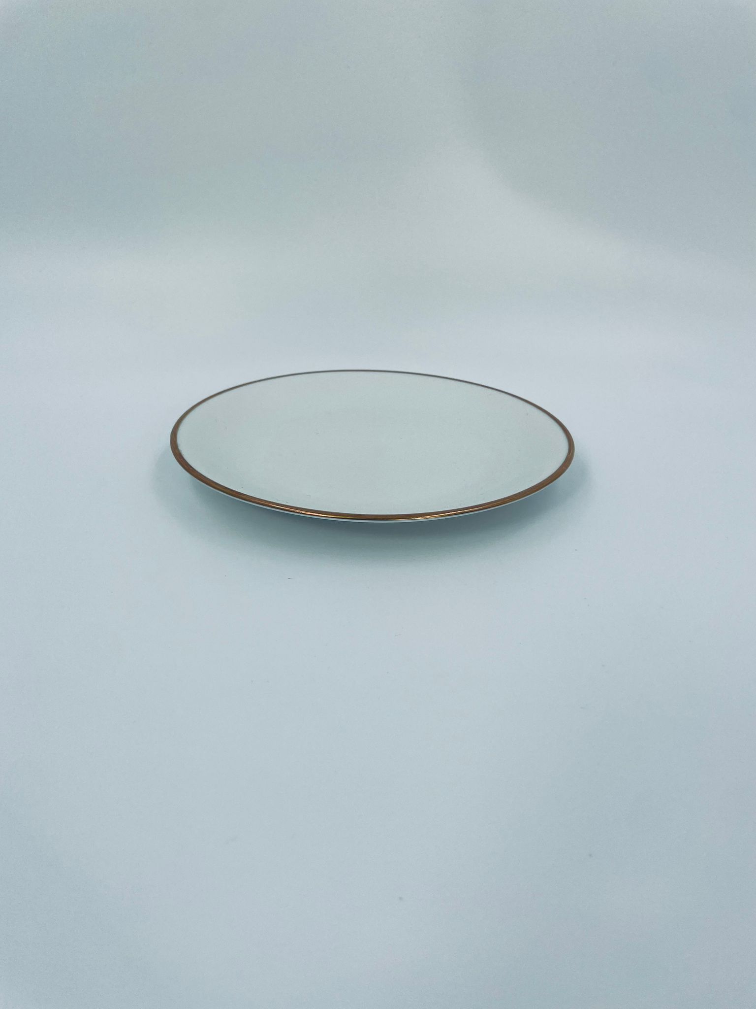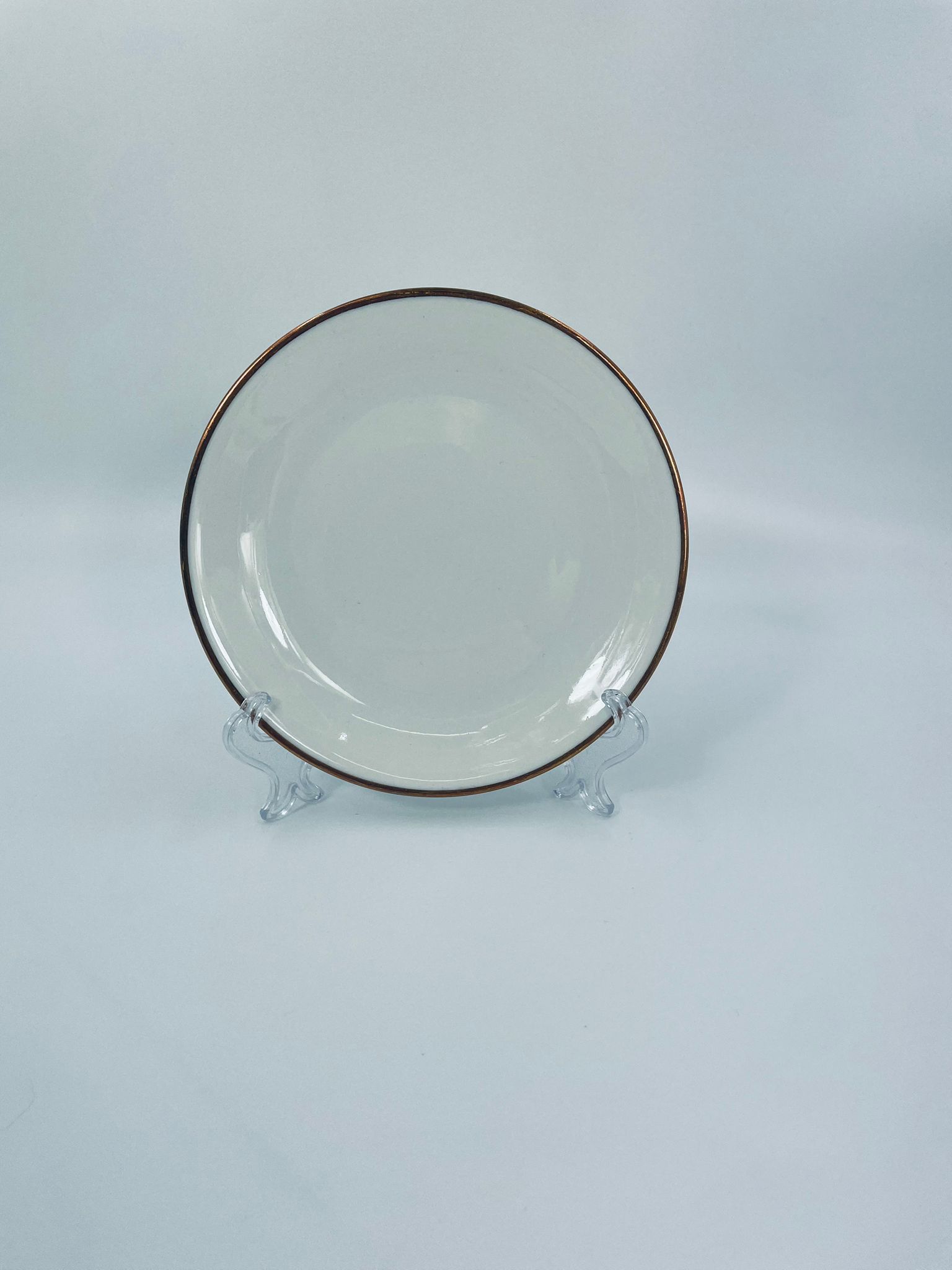 Talerzyk deserowy wytwórni KPM Krister, wykonany z wysokiej jakości białej porcelany. Talerz elegancki, klasyczny, wykończony złoceniem na rancie. Posiada małe przetarcie na złoceniu.