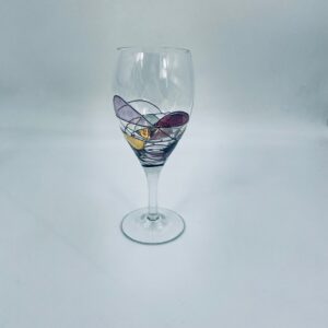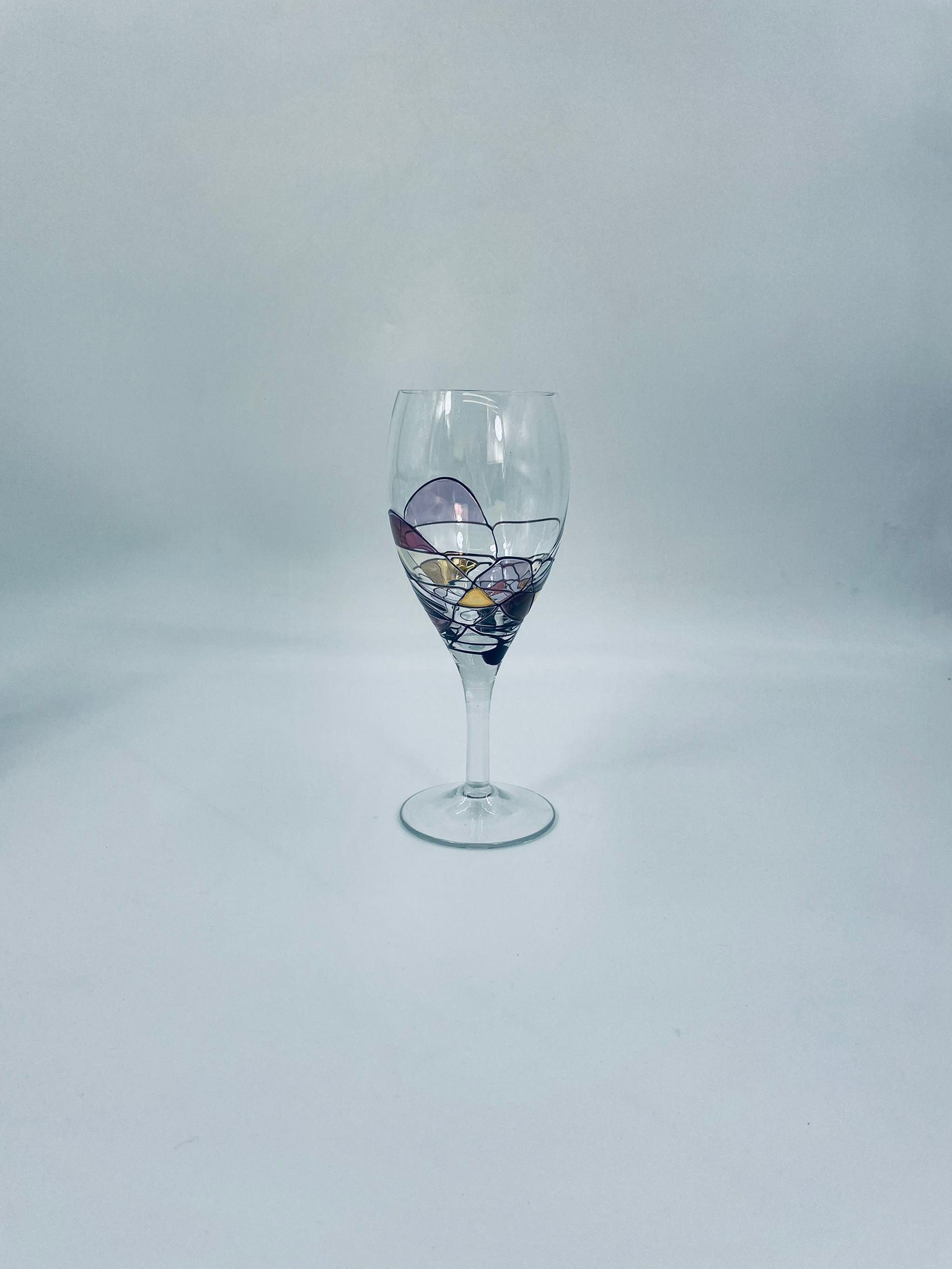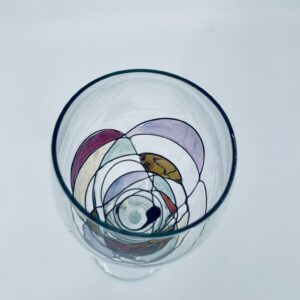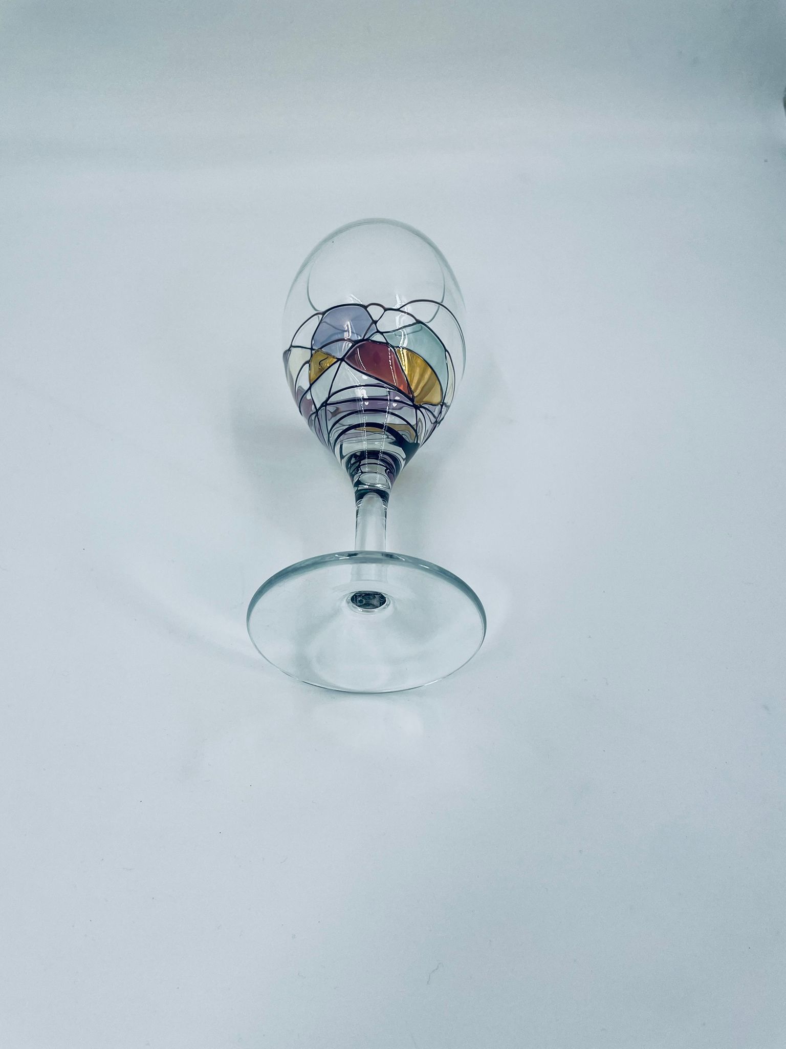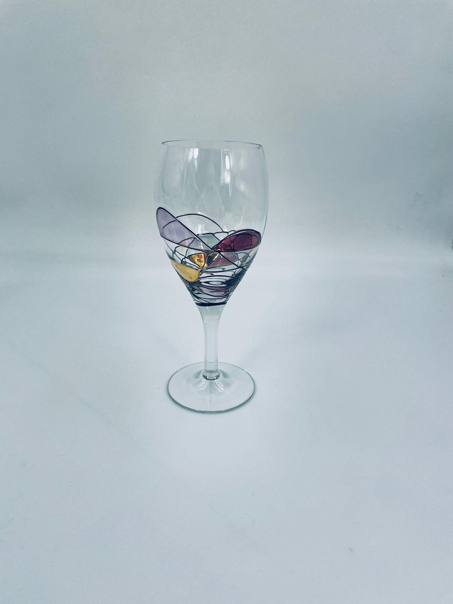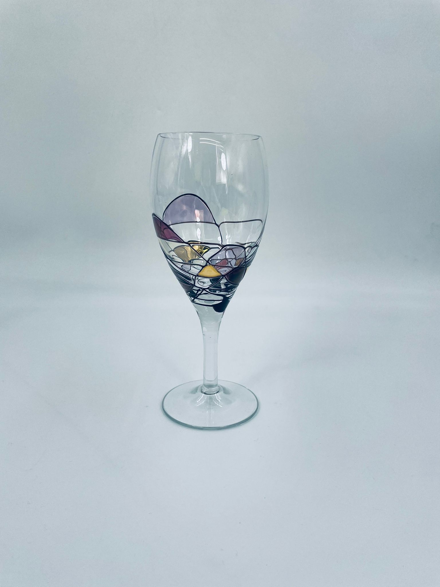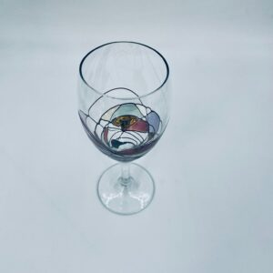 Tiffany style wine glass, made from high quality hand blown crystal glass. The design is hand-painted with swirling lines, creating a stained glass effect.