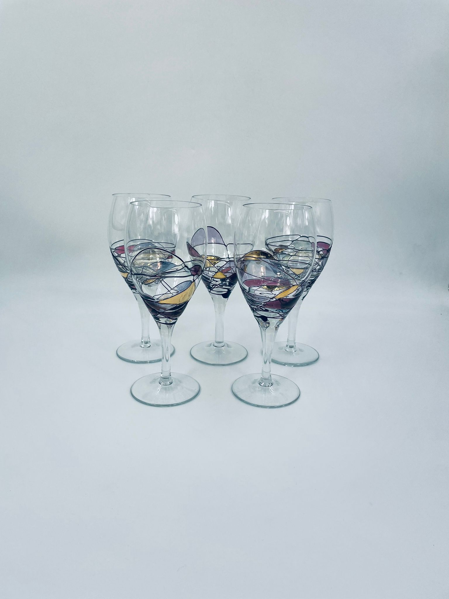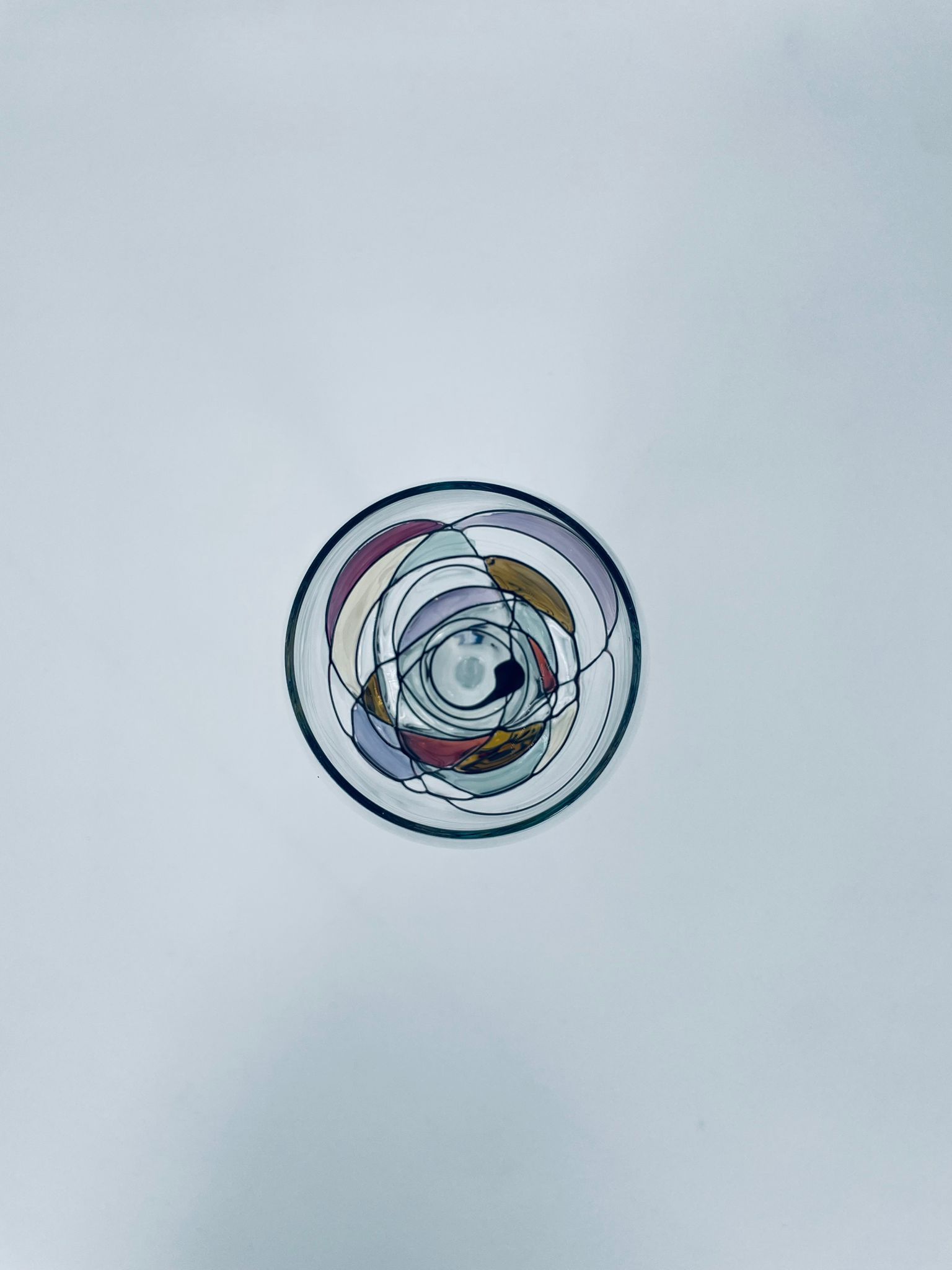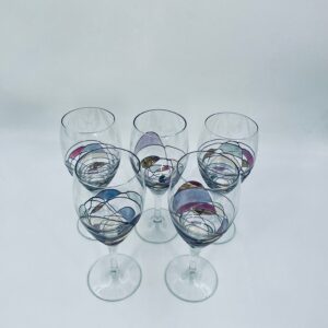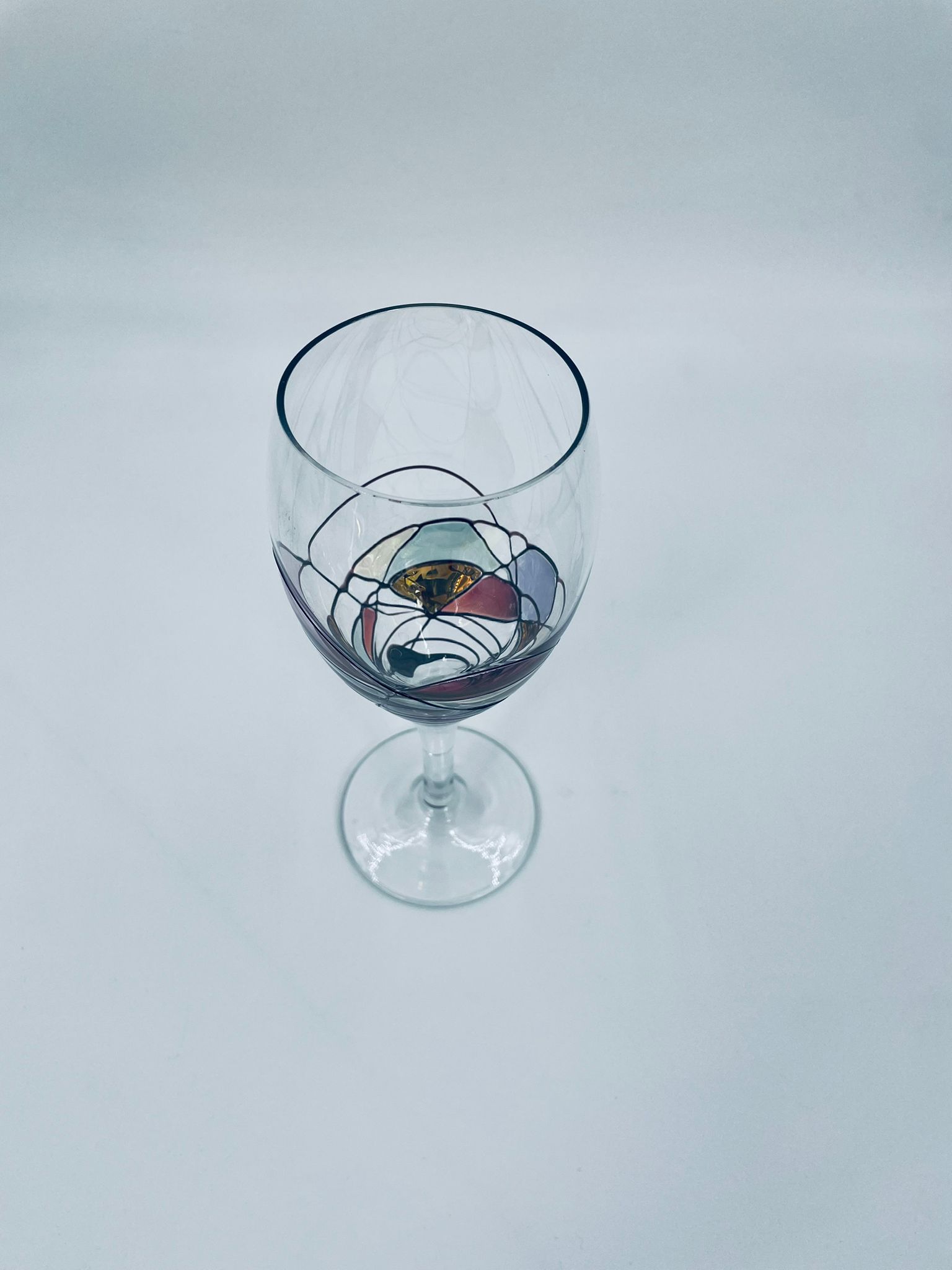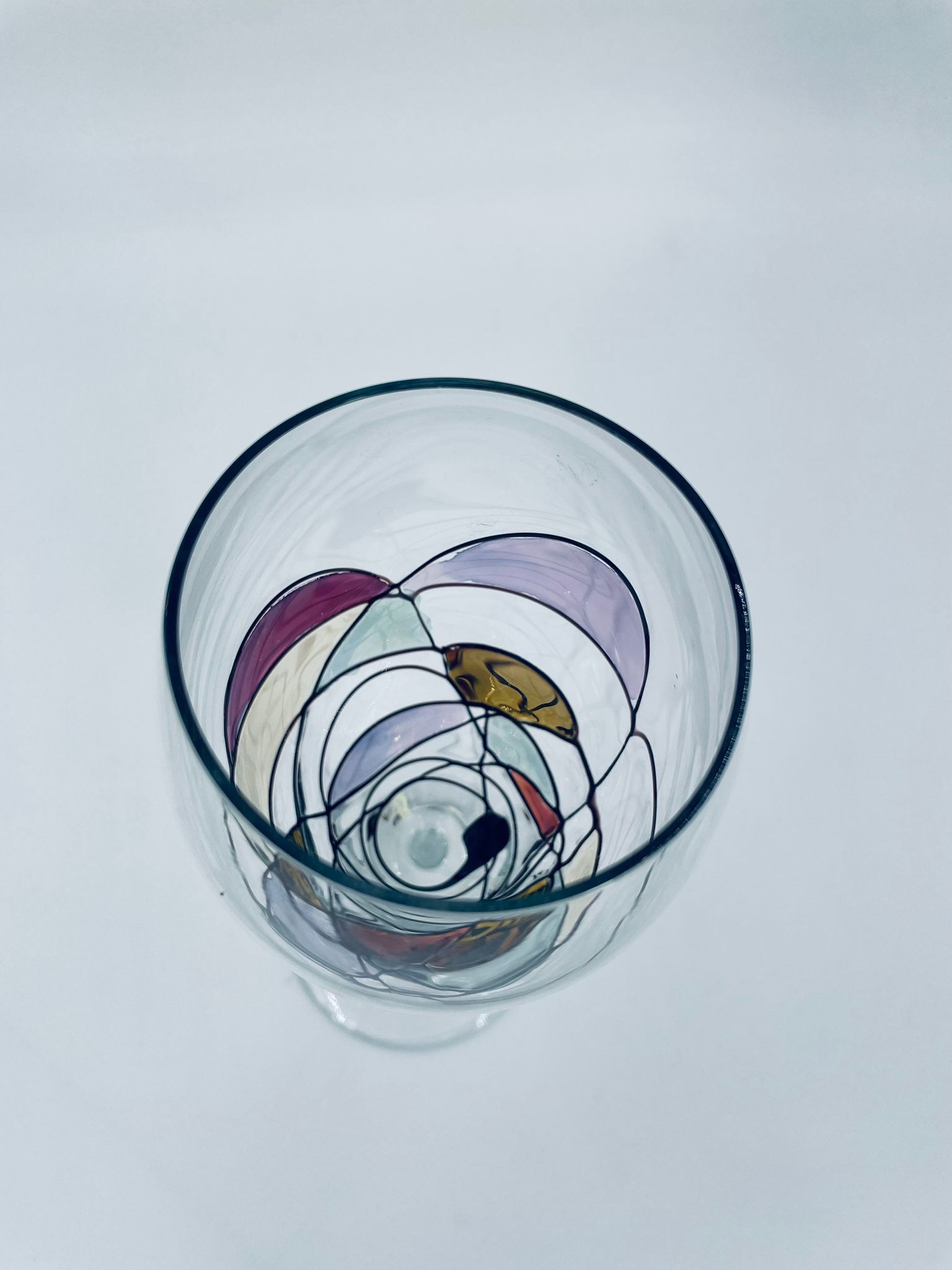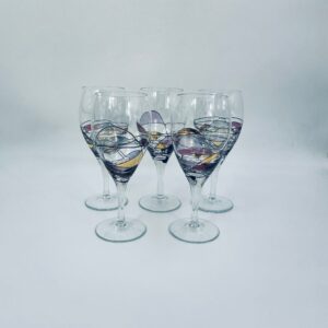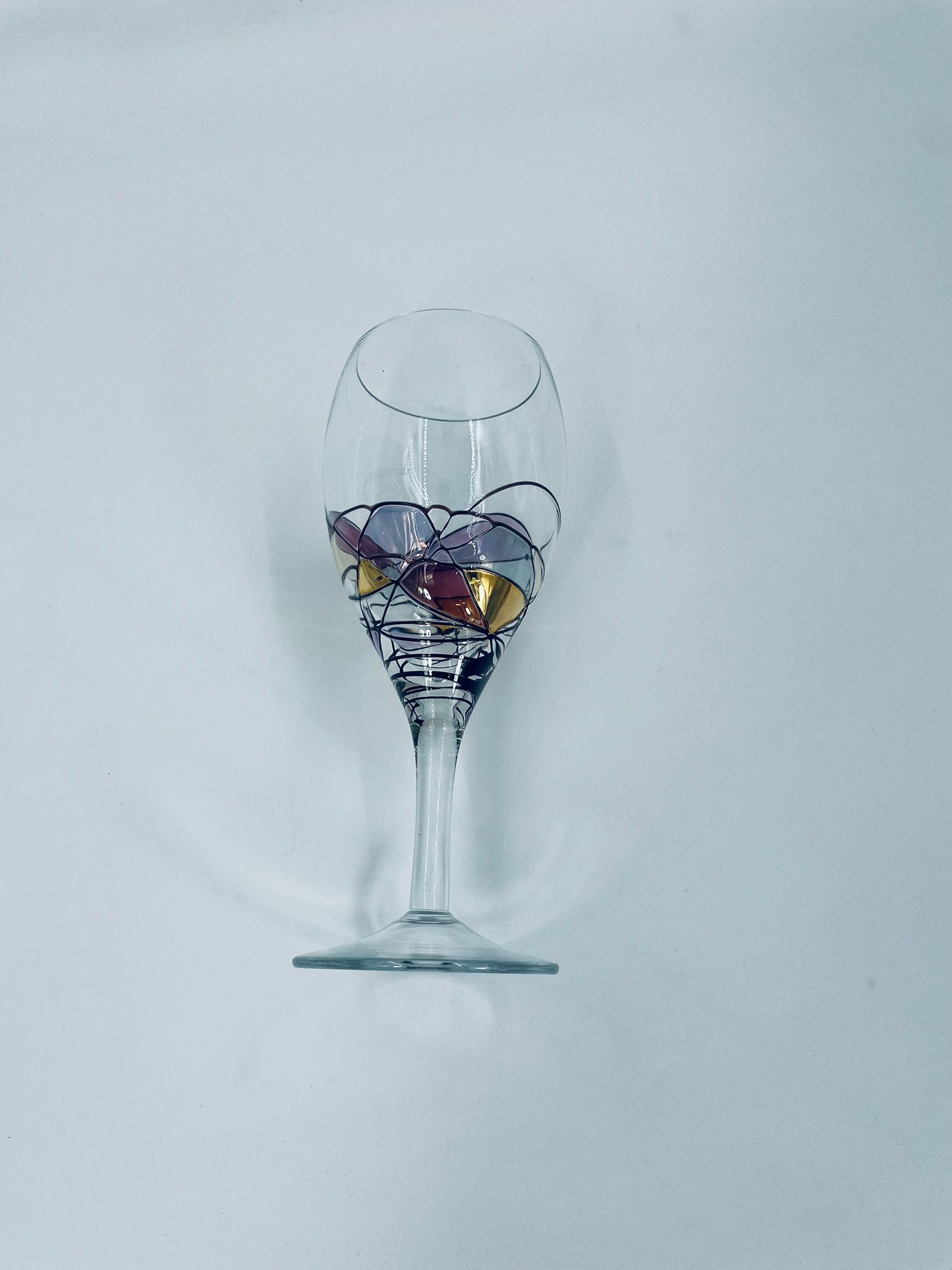 Tiffany style wine glass, made from high quality hand blown crystal glass. The design is hand-painted with swirling lines, creating a stained glass effect.