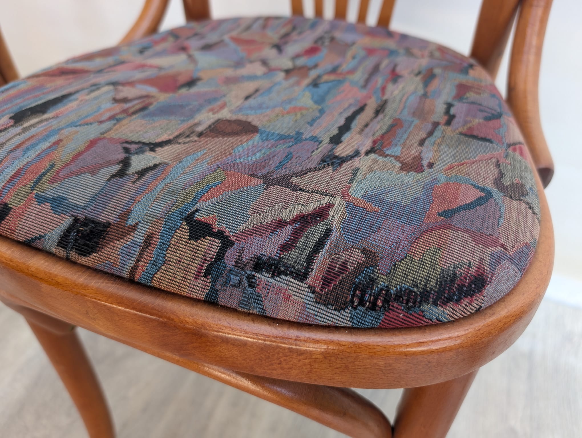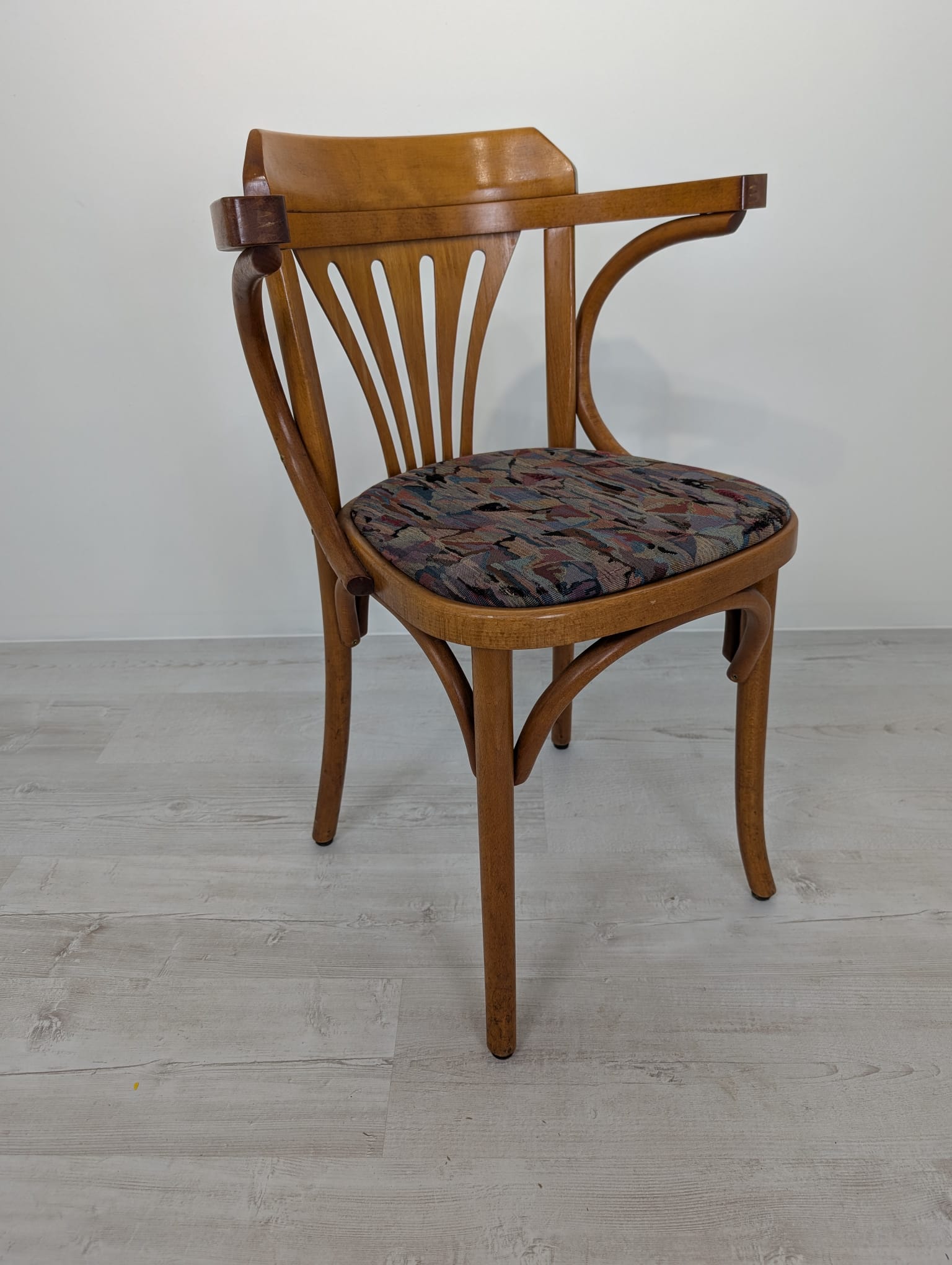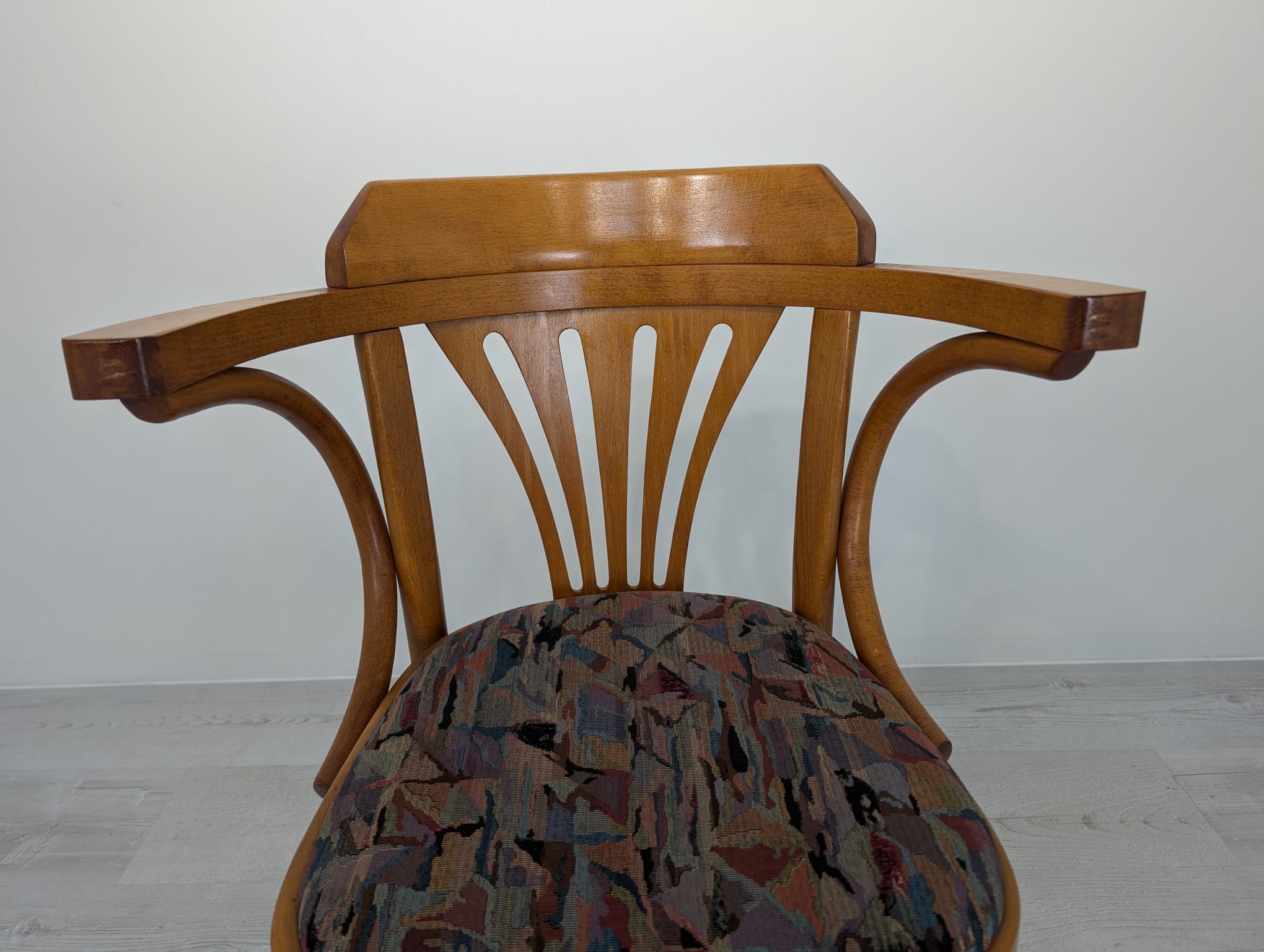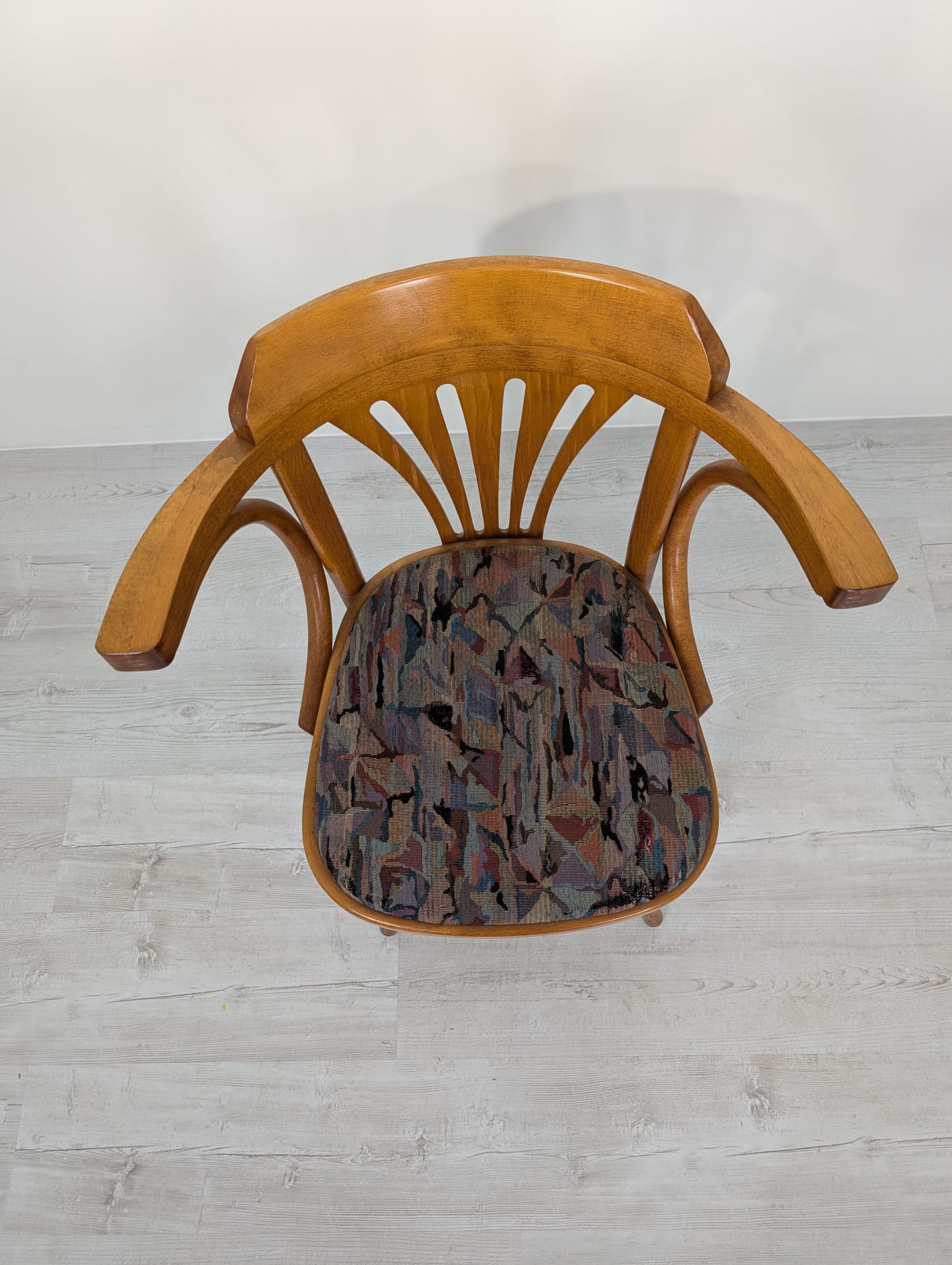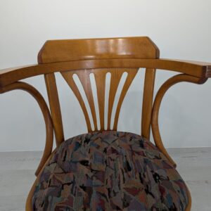 A distinctive feature of the chair is the sophisticated support with a fan pattern and ergonomically shaped armrests.