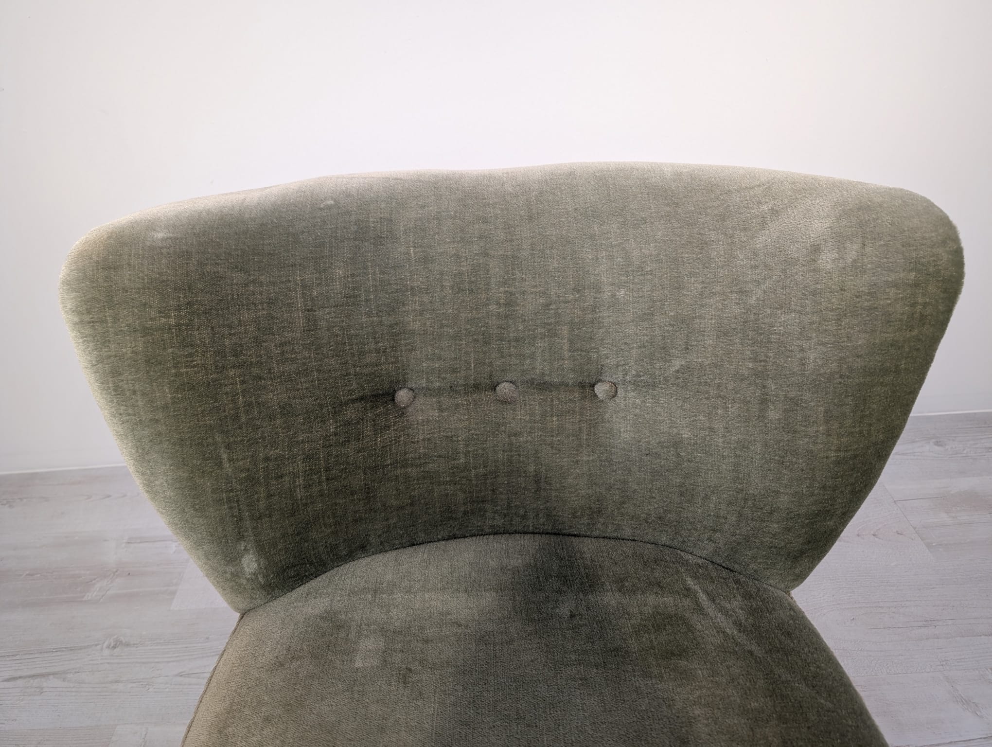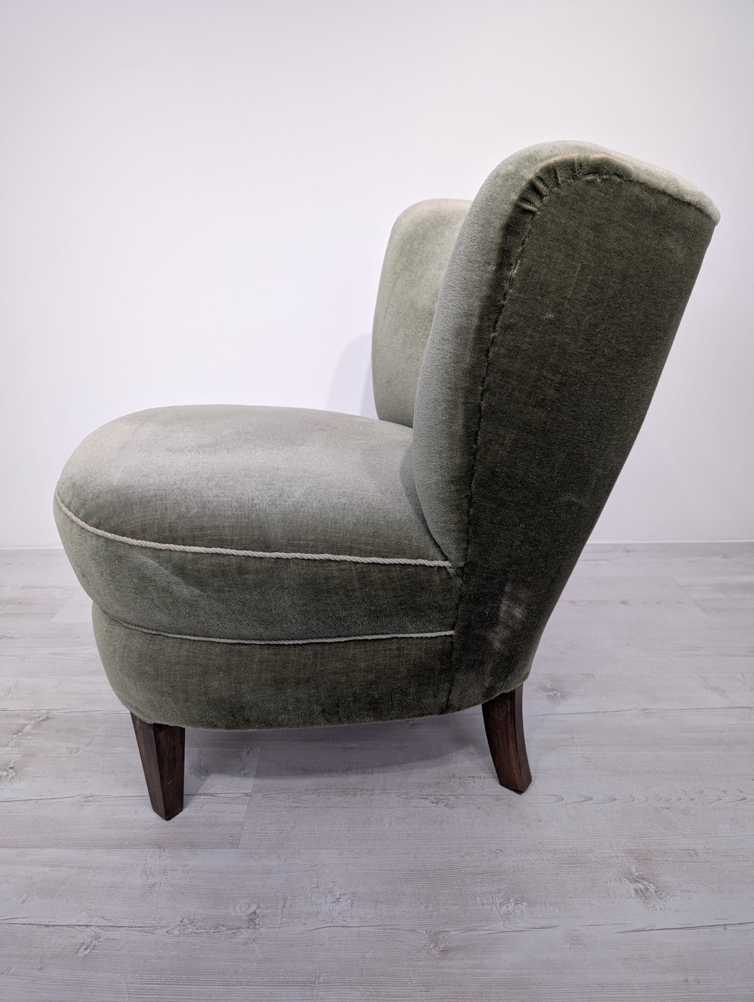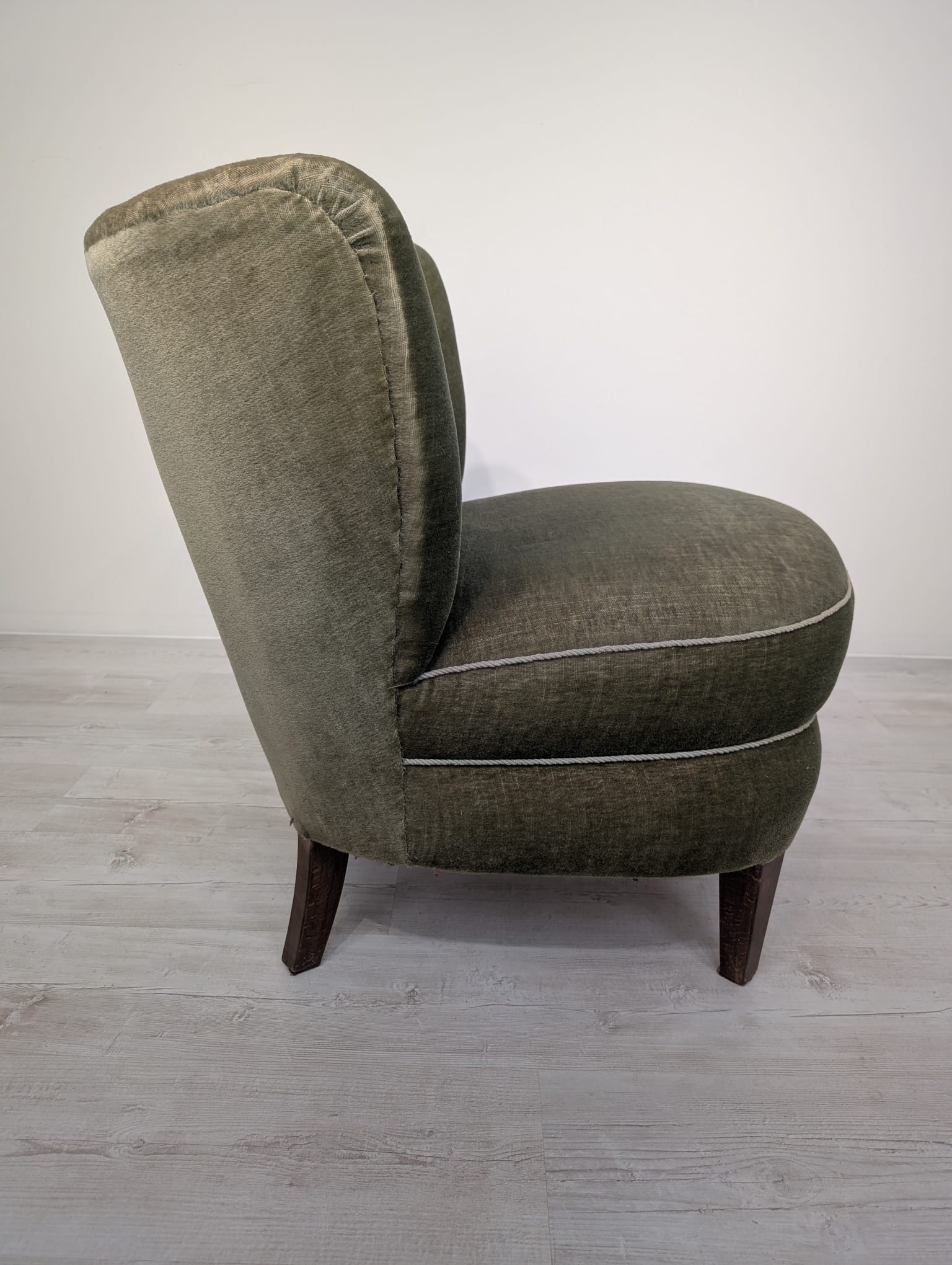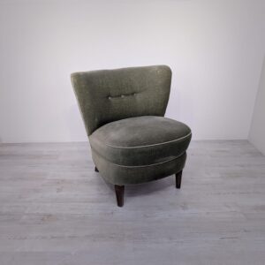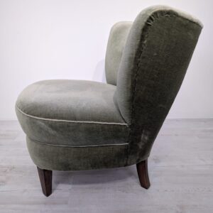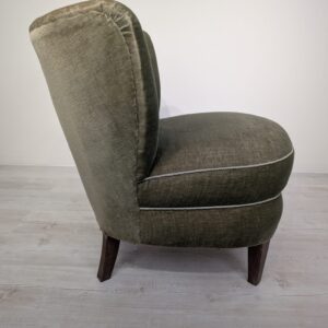 Armchair in bottle green and olive green.