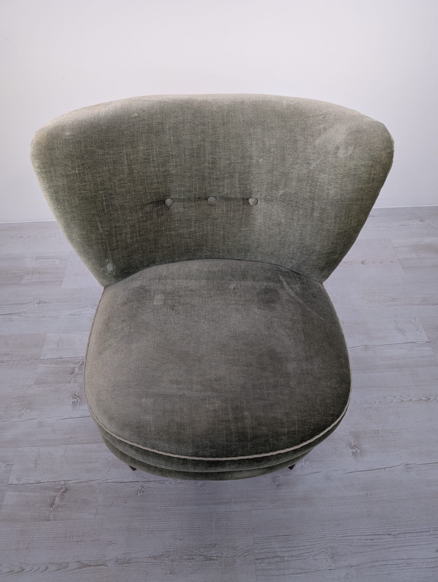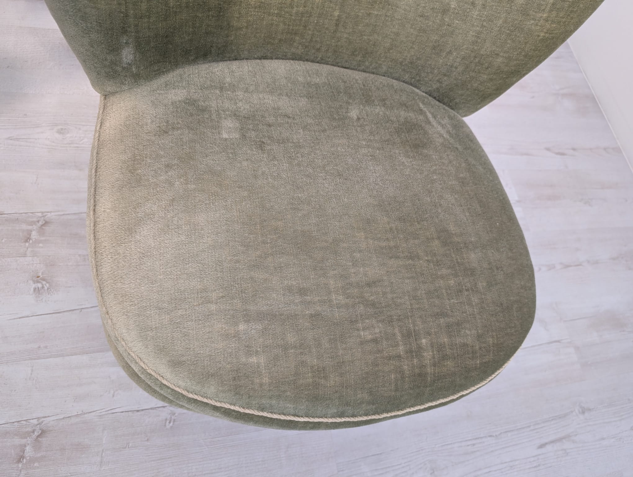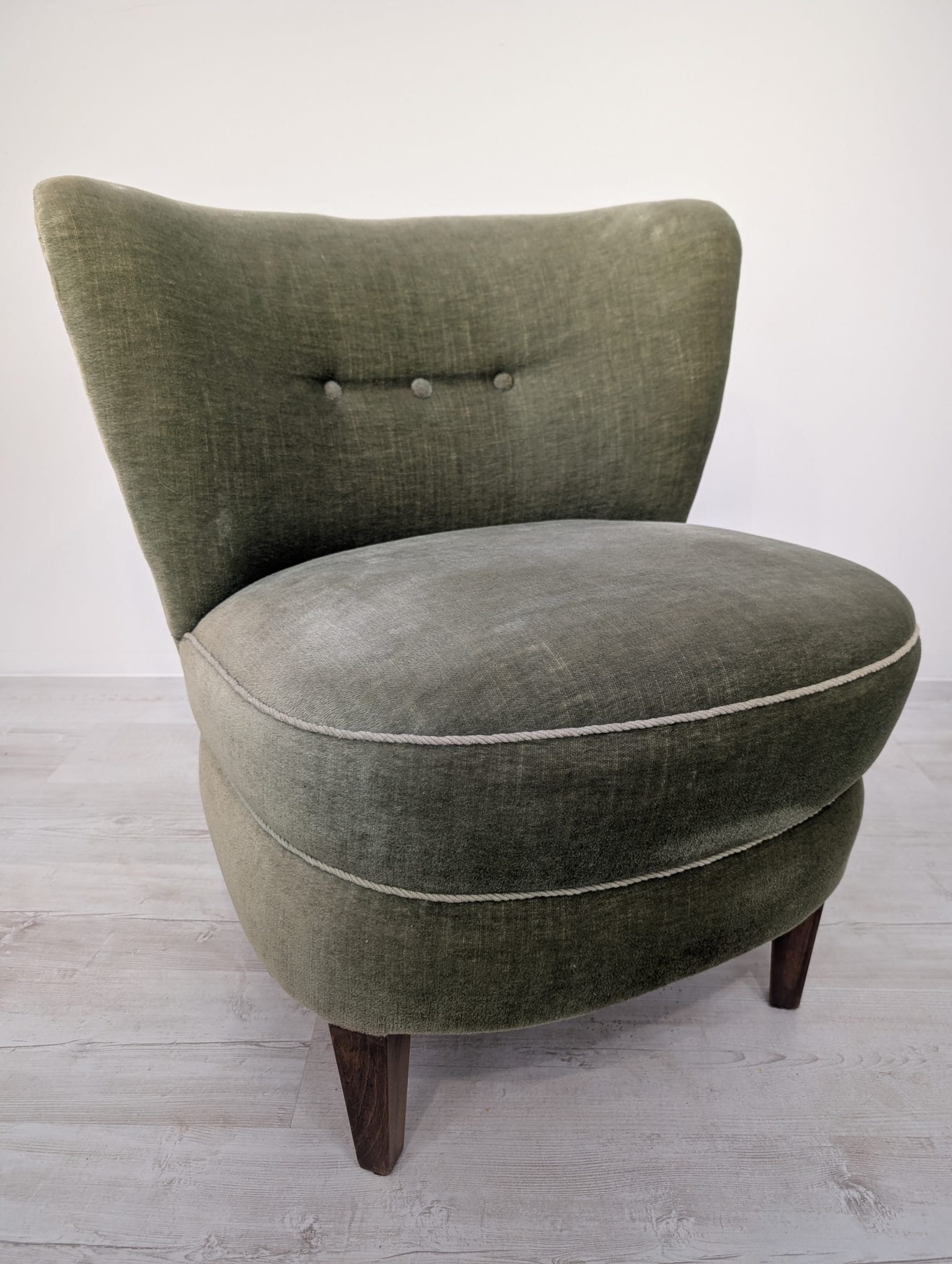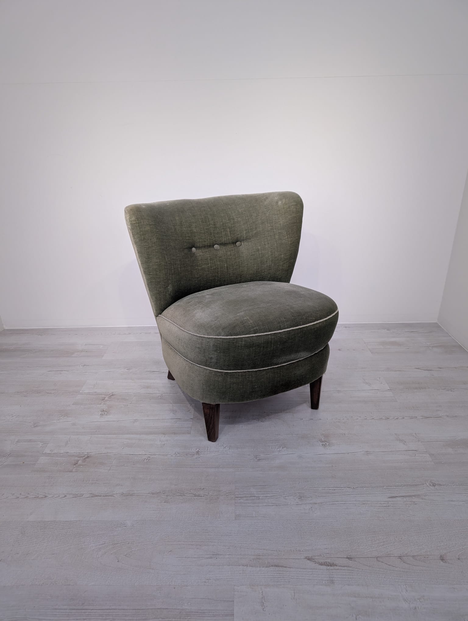 Armchair in bottle green and olive green.